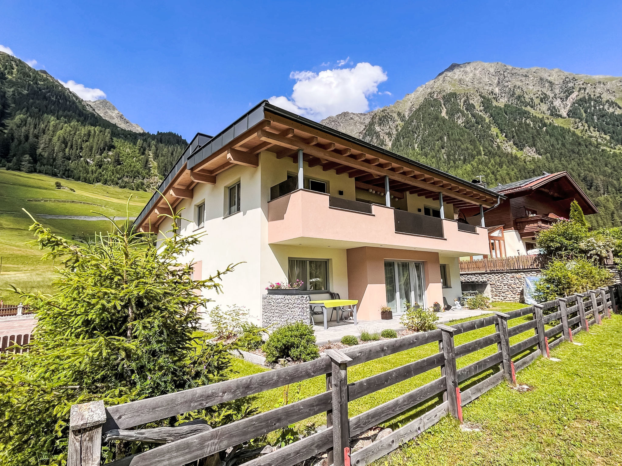Das zur Wintersaison 2013/2014 fertiggestellte Zweifamilienhaus LEONIE steht ca. 100 m von der Ortsmitte Gries entfernt. Supermarkt in Längenfeld (6 km). 1 Parkplatz. Brötchenservice. Die Vermieter bewohnen das Obergeschoss. Zur Wohnung gehört eine teilüberdachte Terrasse mit Mobiliar. Gute Einrichtung. Parkettboden. Sat-TV. Internetzugang (WLAN, inklusive). Fußbodenheizung. Hinweis: Rauchen ist im Haus nicht gestattet. Winter-Infos: Schlepplift gegenüber. Loipeneinstieg am Haus. Skibushaltestelle ca. 100 m. Giggijochbahn (Einstieg ins Skigebiet Sölden) 19 km. Skiabstellmöglichkeit in der Garage, Skischuhabstellmöglichkeit im Heizraum (von der Garage aus zugänglich), jeweils zur gemeinsamen Nutzung mit den Vermietern.