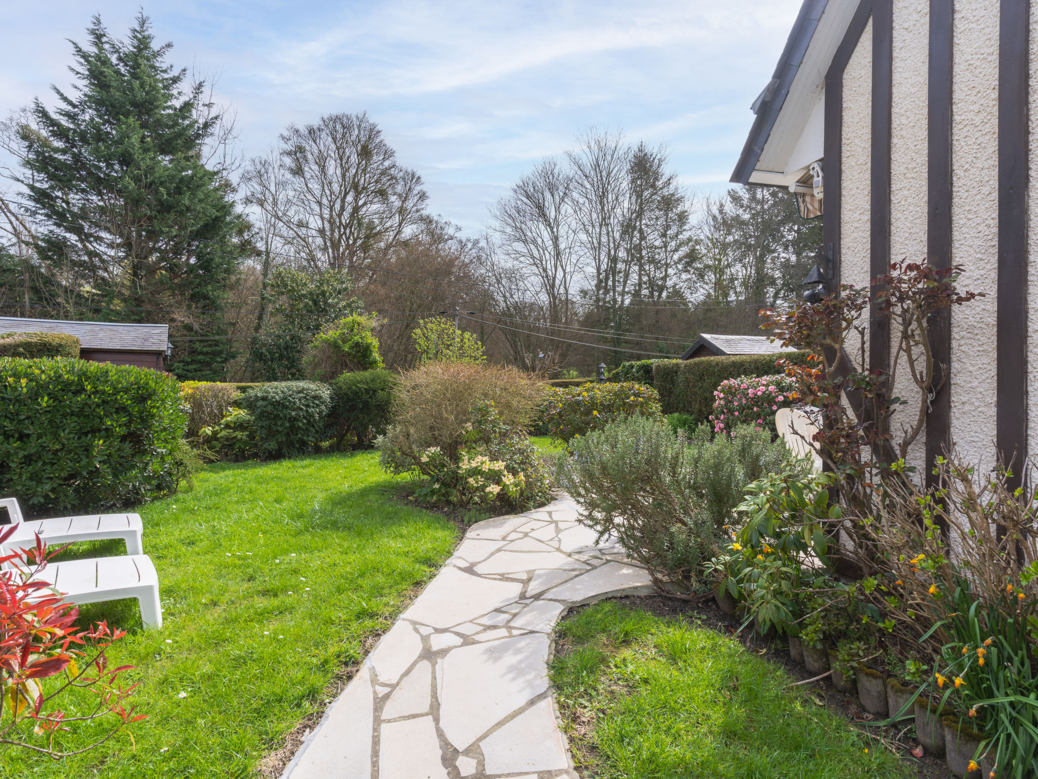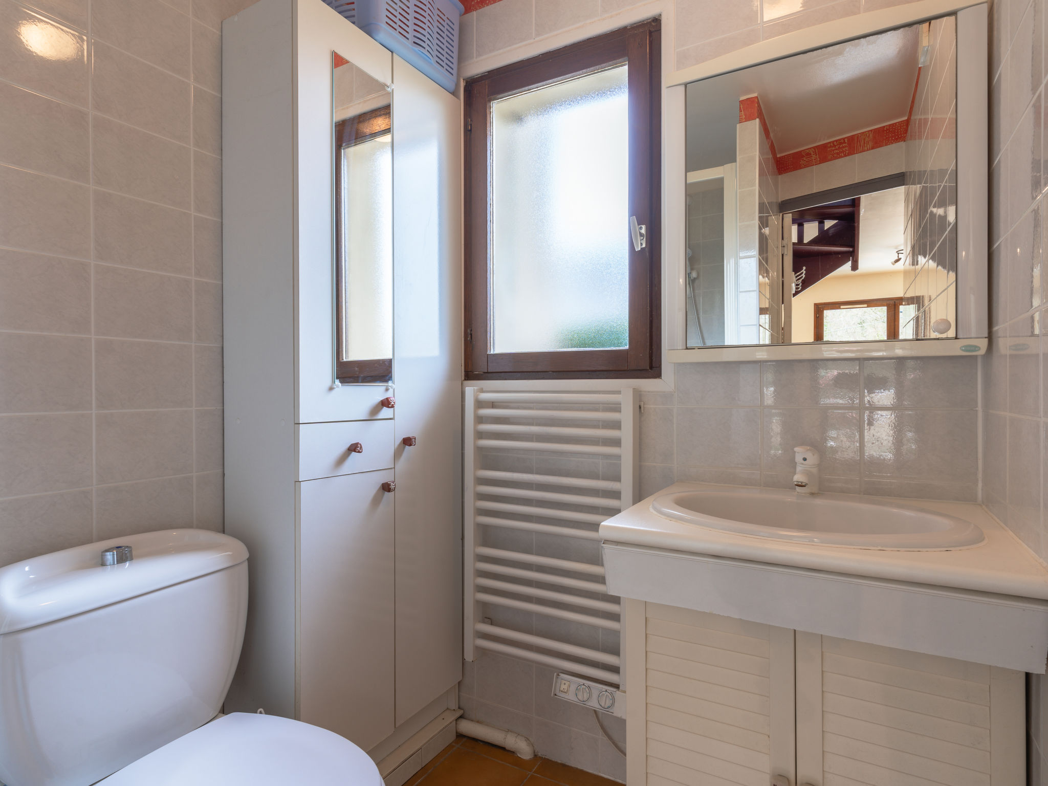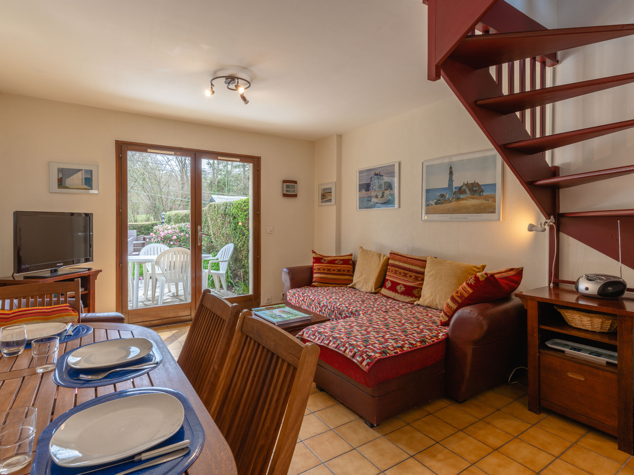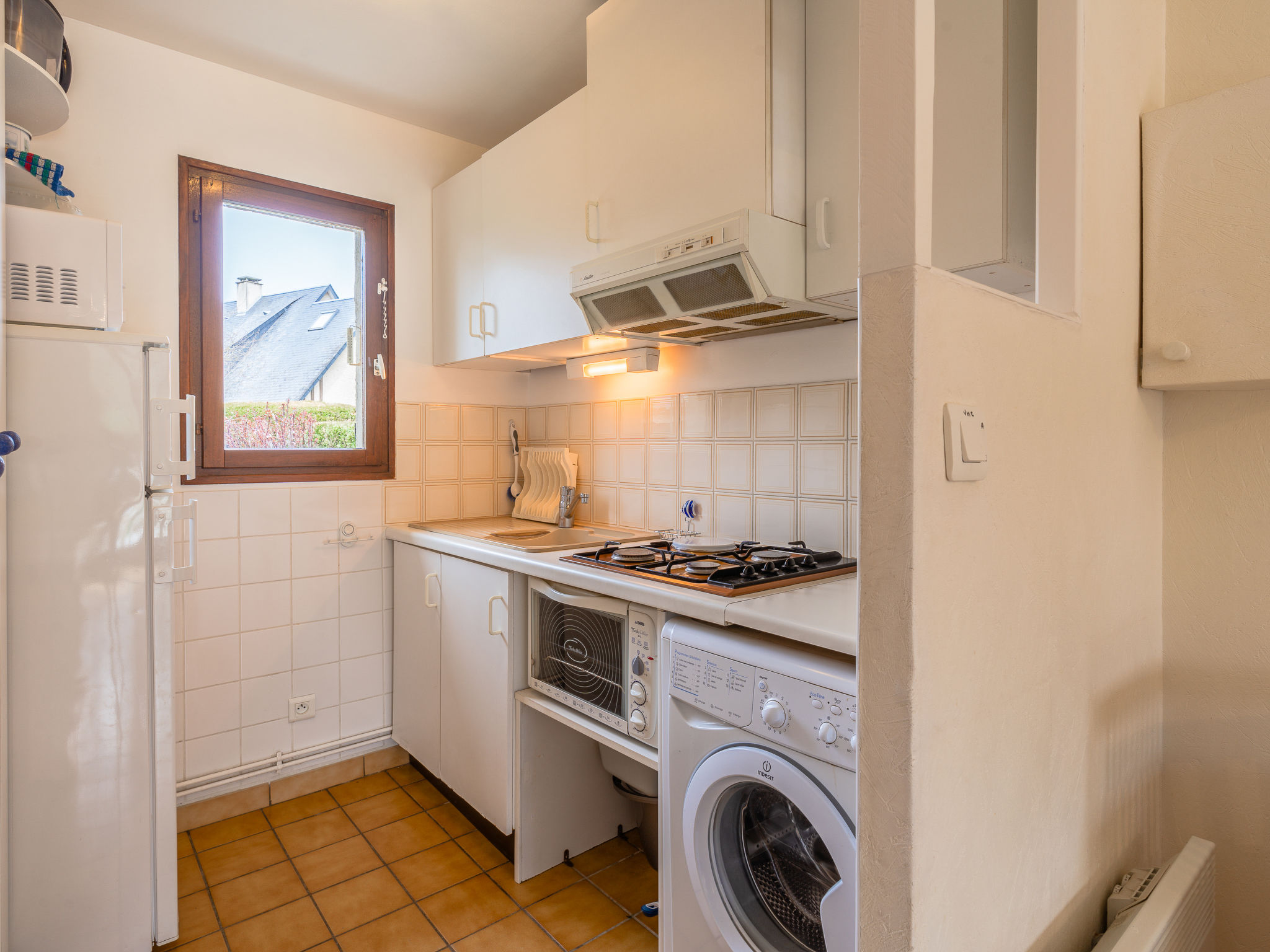 3-Zimmer-Reihenhaus 40 m2 auf 2 Stockwerken. Wohn-/Esszimmer mit 1 Diwanbett (130 cm, Länge 190 cm), TV (Flachbildschirm). Ausgang zum Garten, zur Terrasse. Offene Küche (4 Kochplatten, Mini-Backofen, Mikrowelle, Tiefkühler, elektrische Kaffeemaschine). Dusche/WC. Obergeschoss: 1 Zimmer mit 1 franz. Bett (2 x 90 cm, Länge 190 cm), Digital-TV. 1 Zimmer mit 1 Bett (90 cm, Länge 190 cm). E-Heizung. Garten 300 m2. Terrassenmöbel, Liegestühle (2). Zur Verfügung: Waschmaschine, Bügeleisen. Internet (Wireless LAN, extra). Parkplatz Nr. 37. Bitte beachten: Maximal 1 Haustier/Hund erlaubt. Rauchmelder. BEACHTEN SIE: Bach ohne Schutzvorrichtung in der Nähe des Gartens. Inserat einer Privatperson nach Artikel 155, IV, CGI.