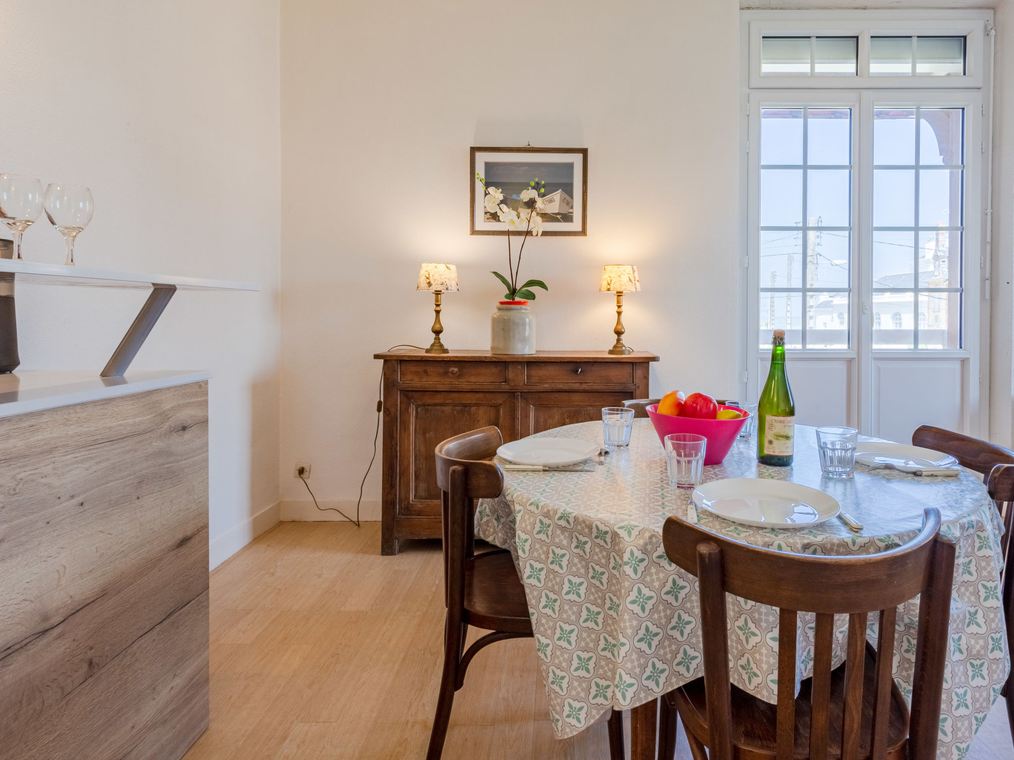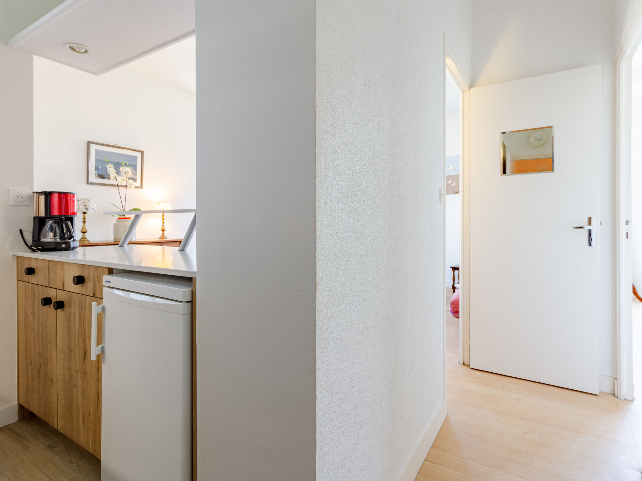 2-Zimmer-Wohnung 50 m2 im 2. Stock, Nordostlage. Eingang mit 1 x 2 Etagenbetten (90 cm, Länge 190 cm). Wohn-/Esszimmer mit 1 Doppeldiwanbett (140 cm, Länge 190 cm), TV und DVD. Ausgang zum Balkon. 1 Zimmer mit 1 franz. Bett (140 cm, Länge 190 cm). Kochnische (2 Kochplatten, Geschirrspüler, elektrische Kaffeemaschine, Kombinationsmikrowelle) mit Bar. Bad, sep. WC. E-Heizung. Parkettböden. 2 Balkone 2 m2. Fernsicht auf das Meer. Zur Verfügung: Waschmaschine, Bügeleisen. Internet (Wireless LAN, extra). Bitte beachten: Nichtraucher-Haus. 1 kleines Haustier/Hund erlaubt. Rauchmelder. Inserat einer Privatperson nach Artikel 155, IV, CGI.