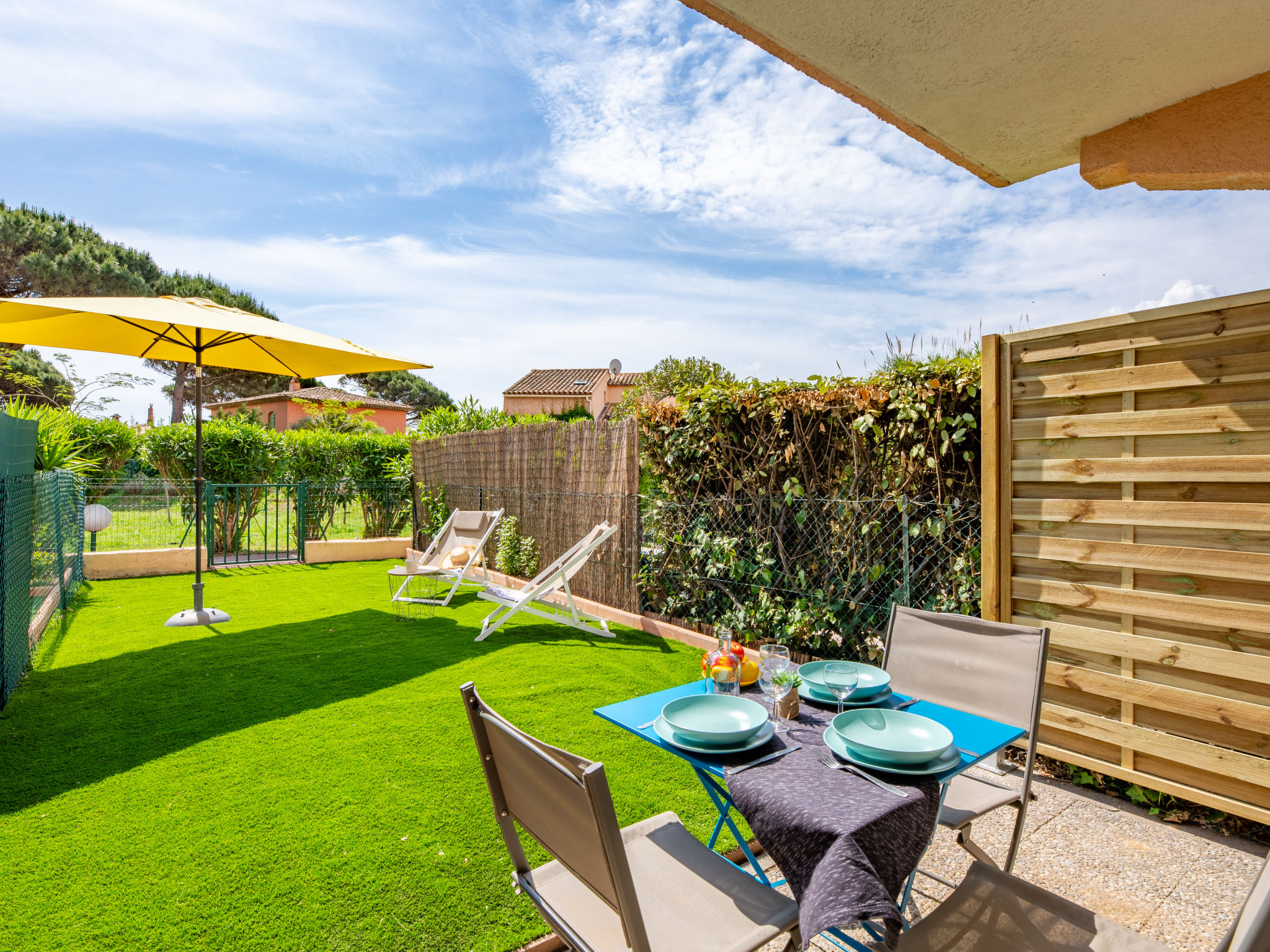 Residenz "Les Jardins de la Nartelle Plage". Ausserhalb des Ortes, 4 km vom Zentrum von Ste Maxime, 250 m vom Meer. Einkaufsgeschäft 4 km, Lebensmittelgeschäft 500 m, Supermarkt 2 km, Einkaufszentrum 3 km, Restaurant 250 m, Bahnstation "Saint-Raphael TGV", Sandstrand "de la Nartelle" 250 m, Thermalbad "Thalasso Les Issambres" 7 km. Sporthafen 3 km, Golfplatz (18 Loch) 3 km, Tennis 1.5 km. Nahe gelegene Sehenswürdigkeiten: Aqualand waterpark 5 km, Azur Park attractions 16 km, Saint-Tropez/Ramatuelle 18 km, Port-Grimaud 13 km, Gorges du Verdon 95 km. Wandergebiete: Massif des Maures 5 km, Massif de l'Esterel 38 km. Bitte beachten: Fahrzeug empfohlen. Die Residenz wird durch elektrische Tore geschlossen. Die Schlüsselübergabe findet bei der Agentur Interhome in Sainte-Maxime statt. Flugplatz 70 km vom Haus.