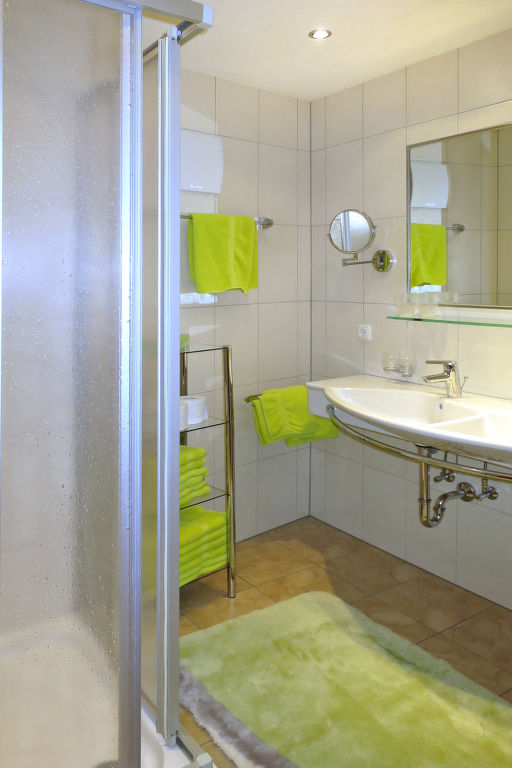 "Am Schönbach (STA153)", 3-Zimmer-Wohnung 70 m2 im 2. Stock. Gemütlich eingerichtet: abgeschrägtes Wohn-/Schlafzimmer mit 1 Doppeldiwanbett, Essecke und Kabel-TV (Flachbildschirm), Radio. 2 abgeschrägte Doppelzimmer. Küche (Backofen, Geschirrspüler, 4 Glaskeramikherd Platten, Mikrowelle, elektrische Kaffeemaschine). Dusche, sep. WC, Doppelwaschbecken. Heizung. Teppichboden. Balkon. Zur Verfügung: Kinderhochstuhl, Babybett (extra). Internet (Wireless LAN, gratis). Bitte beachten: Nichtraucher-Unterkunft. Maximal 1 Haustier/Hund erlaubt.