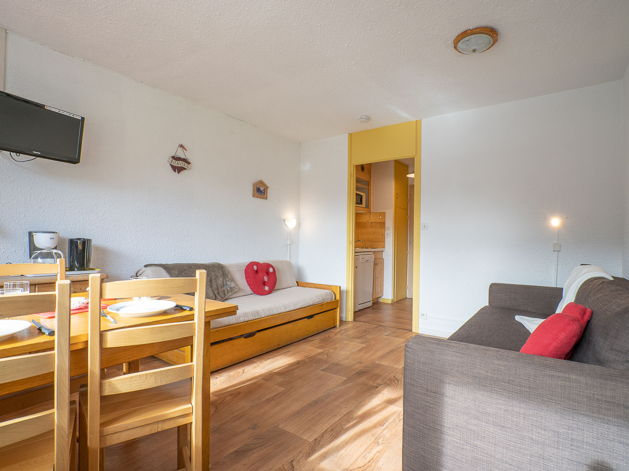 "Pelvoux 102", 1-Zimmer-Wohnung 22 m2 im 10. Stock. Schön eingerichtet: Wohn-/Esszimmer mit 1 Diwanbett (80 cm, Länge 190 cm), 1 Doppeldiwanbett (140 cm, Länge 190 cm), TV (Flachbildschirm). Ausgang zum Balkon. Kochnische im Eingang (2 Kochplatten, Geschirrspüler, Wasserkocher, Mikrowelle, elektrische Kaffeemaschine). Bad/WC. Balkon, Südlage. Sehr schöne Sicht auf die Berge und die Skipiste. Zur Verfügung: Internet (Wireless LAN, extra). Bitte beachten: Maximal 1 Haustier/Hund erlaubt. Rauchmelder. Inserat einer Privatperson nach Artikel 155, IV, CGI.