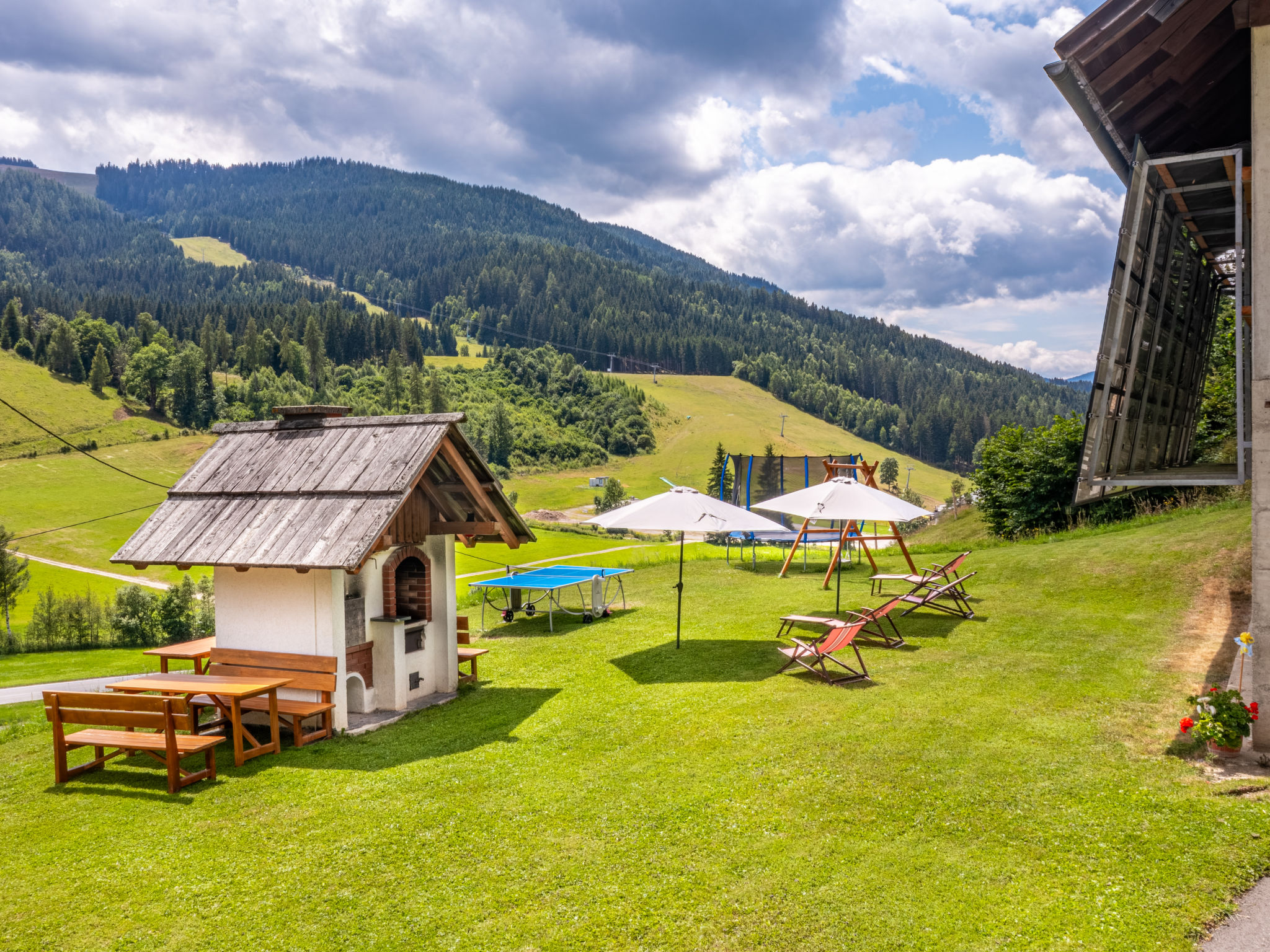 Haus VIDMAR mit 2 Ferienwohnungen steht auf einem ca. 5000 m² großen Gartengrundstück im Ortsteil Innerteuchen, 6,5 km östlich von Arriach. Wanderwege beginnen direkt beim Haus. Afritzer See 14 km. Ossiacher See 18 km. Gasthöfe und Geschäfte in Arriach. Parkplätze beim Haus. Große Liegewiese mit Freisitz und Gartenmöbeln und Grill. Schaukel, Rutsche, Trampolin und Tischtennisplatte. Kleiner Balkon mit Mobiliar. Freundliche, rustikale Einrichtung und gute Ausstattung. Parkettboden. Sat-TV. Internetzugang (WLAN, Inklusive). Heizung.