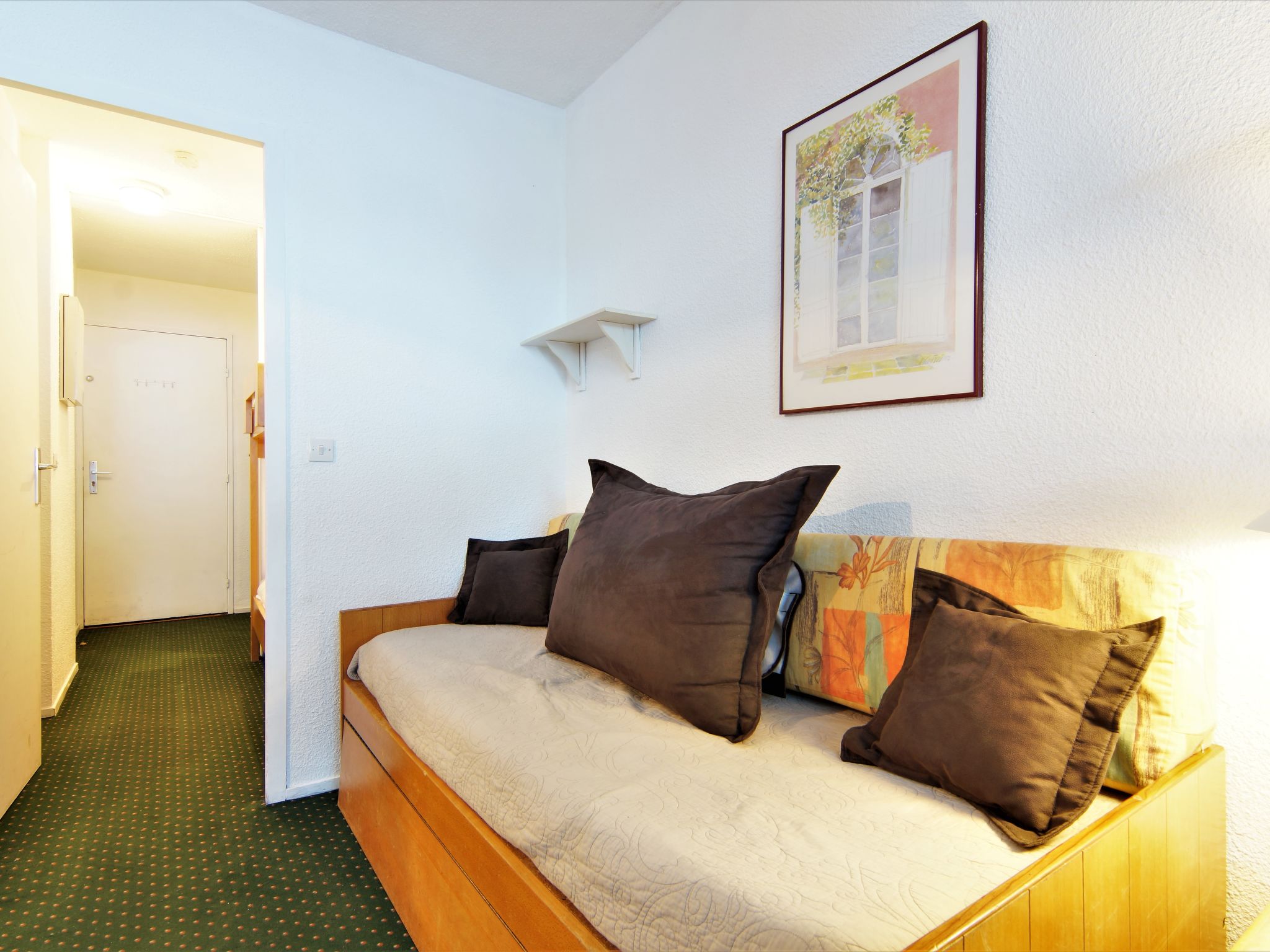 1-Zimmer-Wohnung 23 m2 im 4. Stock. Einfach eingerichtet: Wohn-/Esszimmer mit 2 Betten (80 cm, Länge 190 cm), TV. Ausgang zum Balkon. Eingang mit 1 x 2 Etagenbetten (80 cm, Länge 190 cm). Kochnische (2 Kochplatten, Mini-Backofen, Geschirrspüler, Wasserkocher, elektrische Kaffeemaschine). Bad, sep. WC. E-Heizung. Balkon, Südlage. Sicht auf die Berge. Zur Verfügung: Internet (Wireless LAN, extra). Bitte beachten: kein Parkplatz. Maximal 1 Haustier/Hund erlaubt. TV nur FR. Rauchmelder. Inserat einer Privatperson nach Artikel 155, IV, CGI.