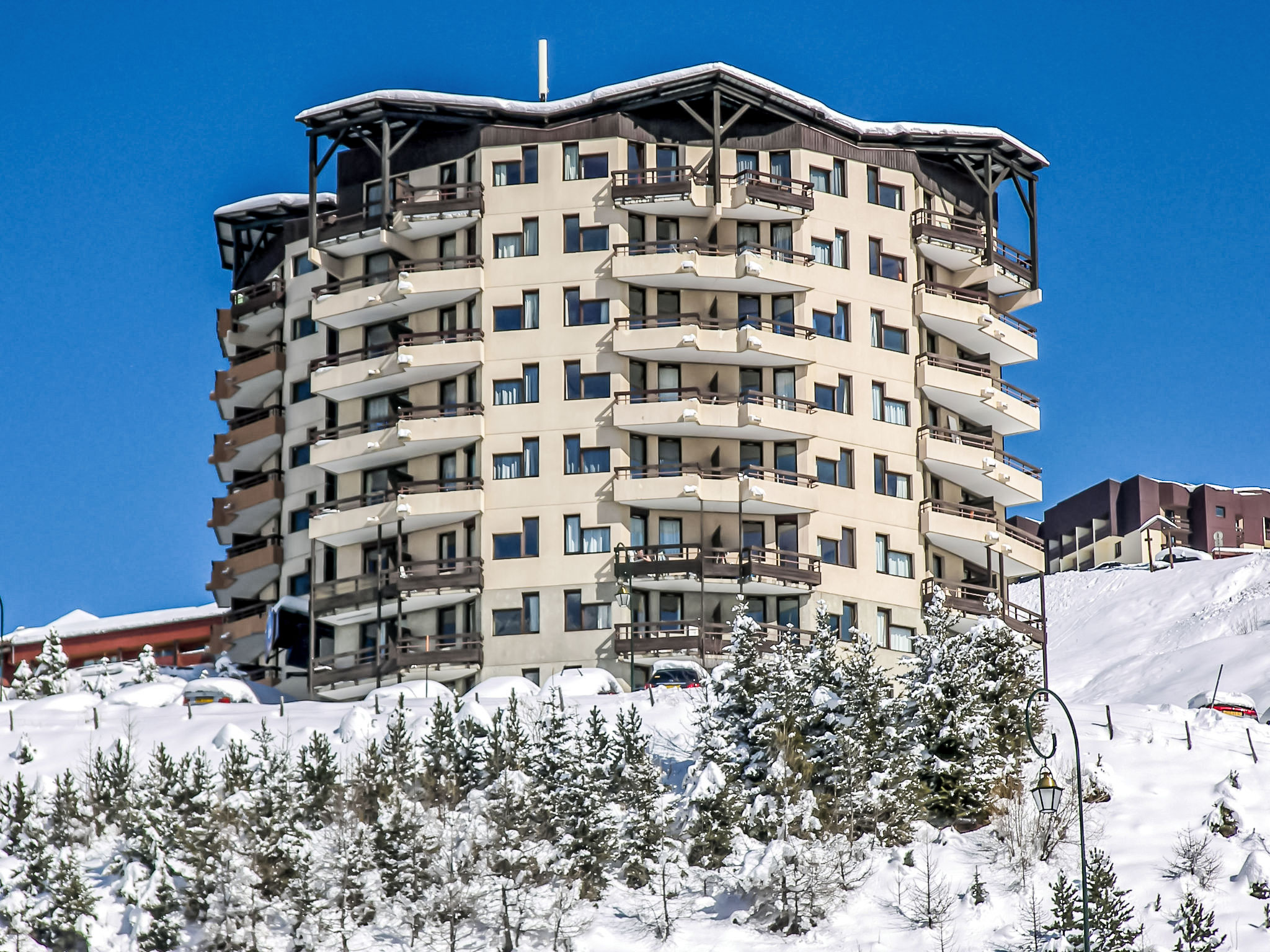 Residenz "Le Médian". Oberhalb von Reberty 1850, 1 km vom Zentrum von La Croisette, direkt am Skigebiet. Im Hause: Fahrstuhl, Skiraum. Öffentliche Parkplätze. Supermarkt, Restaurant 200 m. Skipisten 50 m. Bitte beachten: Das Foto ist nur ein Hausbeispiel. In diesem Haus sind weitere Ferienwohnungen mietbar.