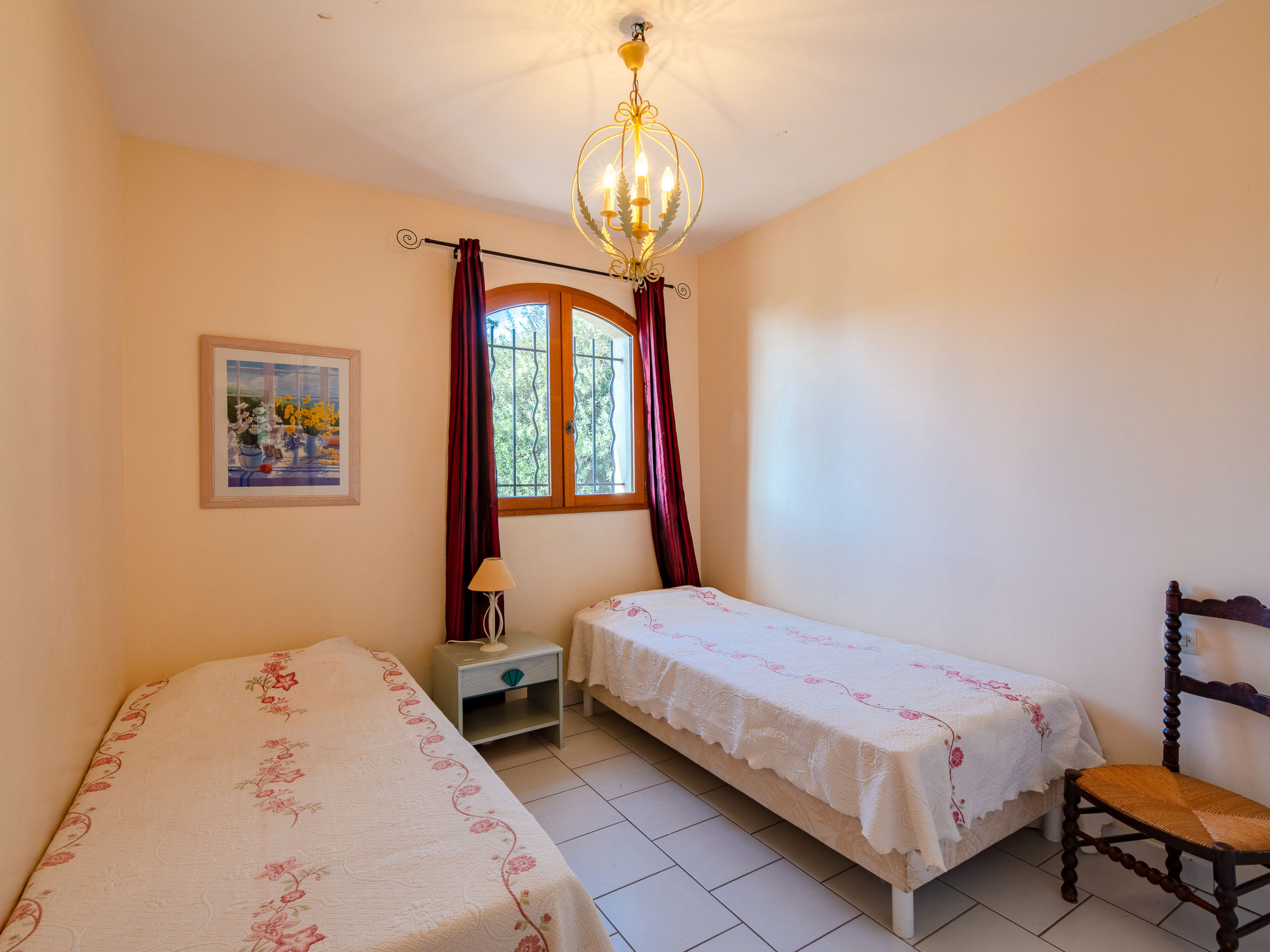 5-Zimmer-Haus, 2 Etagen, ca. 140 m². Erdgeschoss: Diele (offen zum Wohnraum). Wohnraum mit Sitzgruppe, Terrassenausgang, offener Durchgang zum Essbereich, Terrassenausgang, zum Esszimmer offene Küche (4 Platten, Backofen, Mikrowelle, Geschirrspüler, Kühl-/Gefrierkombination, Kaffeemaschine), Terrassenausgang. Schlafzimmer mit franz. Bett (1,60 m breit) und direktem Zugang zum Bad (keine Tür), Terrassenausgang. Sep.WC. Obergeschoss: Schlafzimmer mit franz. Bett. Schlafzimmer mit franz. Bett (1,60 m breit). Zweibettzimmer. Bad. Sep.WC.Hinweis: Bei Buchung zum Preis für 4 Personen stehen 2 Schlafzimmer nicht zur Verfügung. Inserat einer Privatperson nach Artikel 155, IV, CGI. 83107000099EE