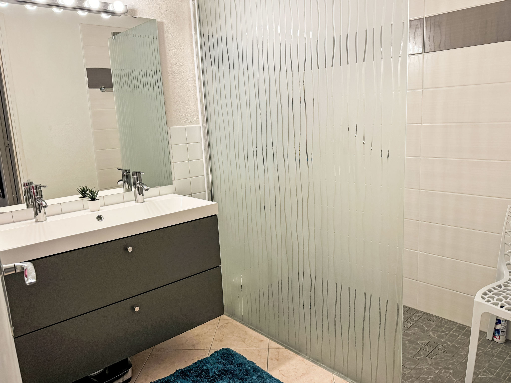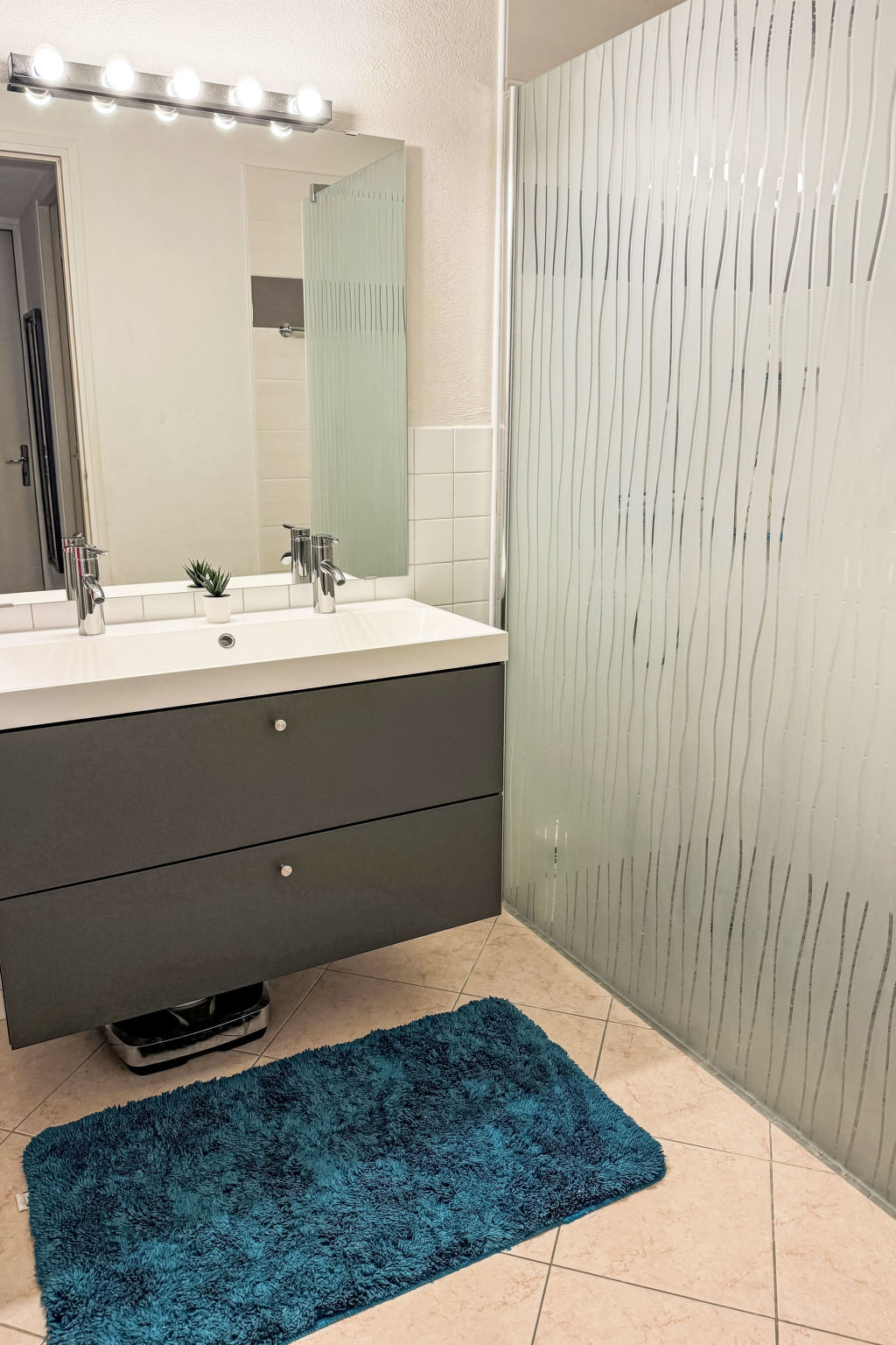 3-Zimmer-Wohnung 60 m2, im erhöhten Erdgeschoss, Südlage. Komfortabel und schön eingerichtet: Wohn-/Esszimmer mit TV (Flachbildschirm), Stereoanlage und Klimaanlage. Ausgang zur Terrasse. 1 offenes Zimmer mit Vorhang mit 2 Betten (90 cm, Länge 200 cm). Ausgang zur Terrasse. 1 Zimmer mit 1 Bett (140 cm, Länge 200 cm). Ausgang zur Terrasse. Küche (Backofen, Geschirrspüler, 4 Glaskeramikherd Platten, Toaster, Wasserkocher, Mikrowelle, Tiefkühler, elektrische Kaffeemaschine). Bad, sep. WC. E-Heizung. Terrasse 15 m2, Südlage. Terrassenmöbel, Liegestühle. Sehr schöne Sicht auf das Meer. Zur Verfügung: Waschmaschine, Bügeleisen, Babybett. Internet (Wireless LAN, extra). Parkplatz Nr. 4. Bitte beachten: TV nur FR. Rauchmelder. Vom Parkplatz aus 23 Stufen hinunter bis zur Wohnung. Terrassierter, über Treppen erreichbarer Garten, 200 m2. Inserat einer Privatperson nach Artikel 155, IV, CGI. 83070000077IZ