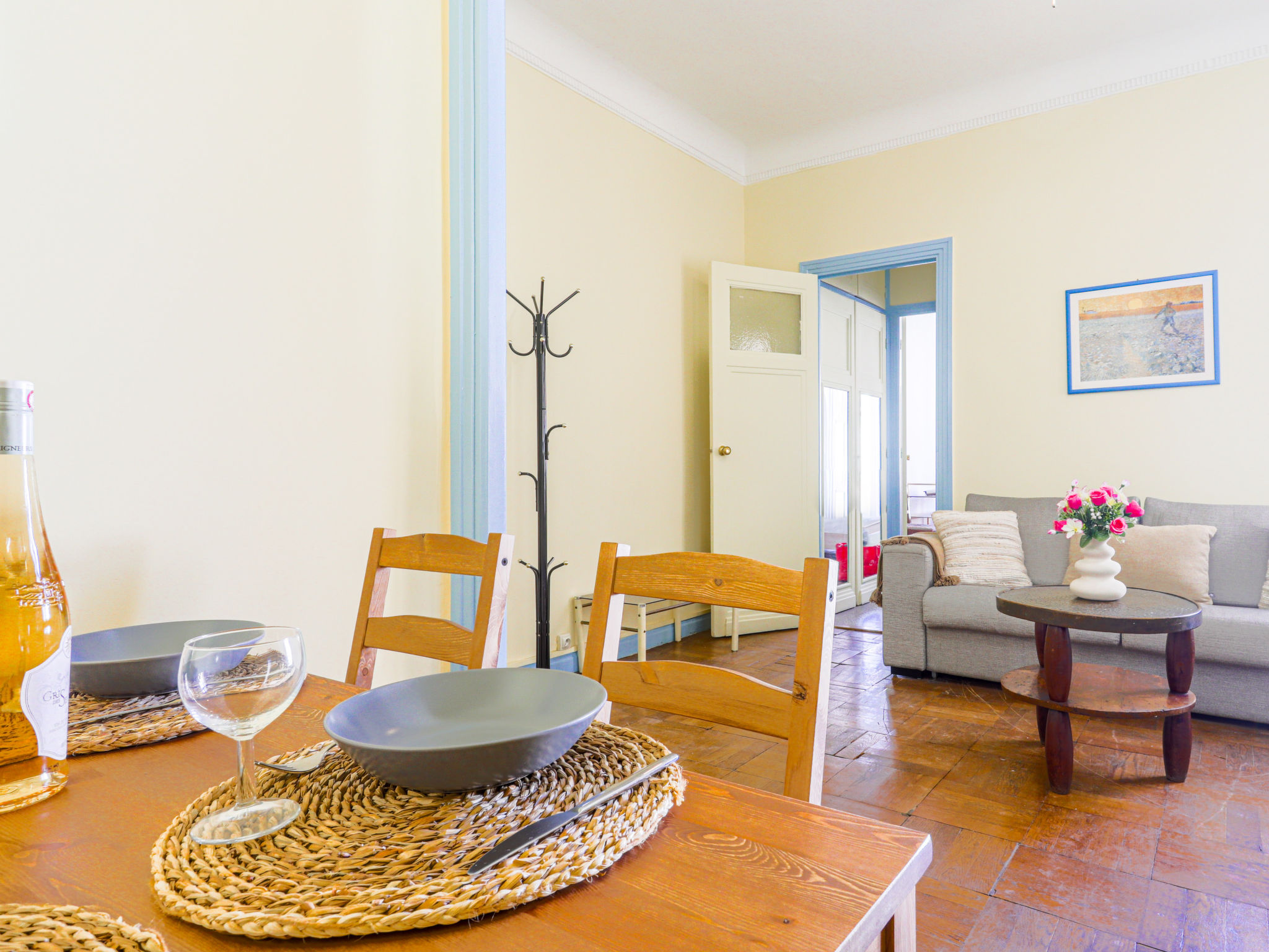 2-Zimmer-Wohnung 48 m2 im 5. Stock. Zweckmässig eingerichtet: Wohn-/Esszimmer mit 1 Doppeldiwanbett (140 cm, Länge 190 cm), TV (Flachbildschirm). 1 Zimmer mit 1 franz. Bett (140 cm, Länge 190 cm). Kochnische (2 Kochplatten, Backofen, Toaster, Wasserkocher, elektrische Kaffeemaschine). Dusche/WC. Heizung. Parkettböden. Zur Verfügung: Waschmaschine, Haartrockner. Internet (Wireless LAN, extra). Bitte beachten: Nichtraucher-Unterkunft. Rauchmelder. Inserat einer Privatperson nach Artikel 155, IV, CGI. 06088000820JQ