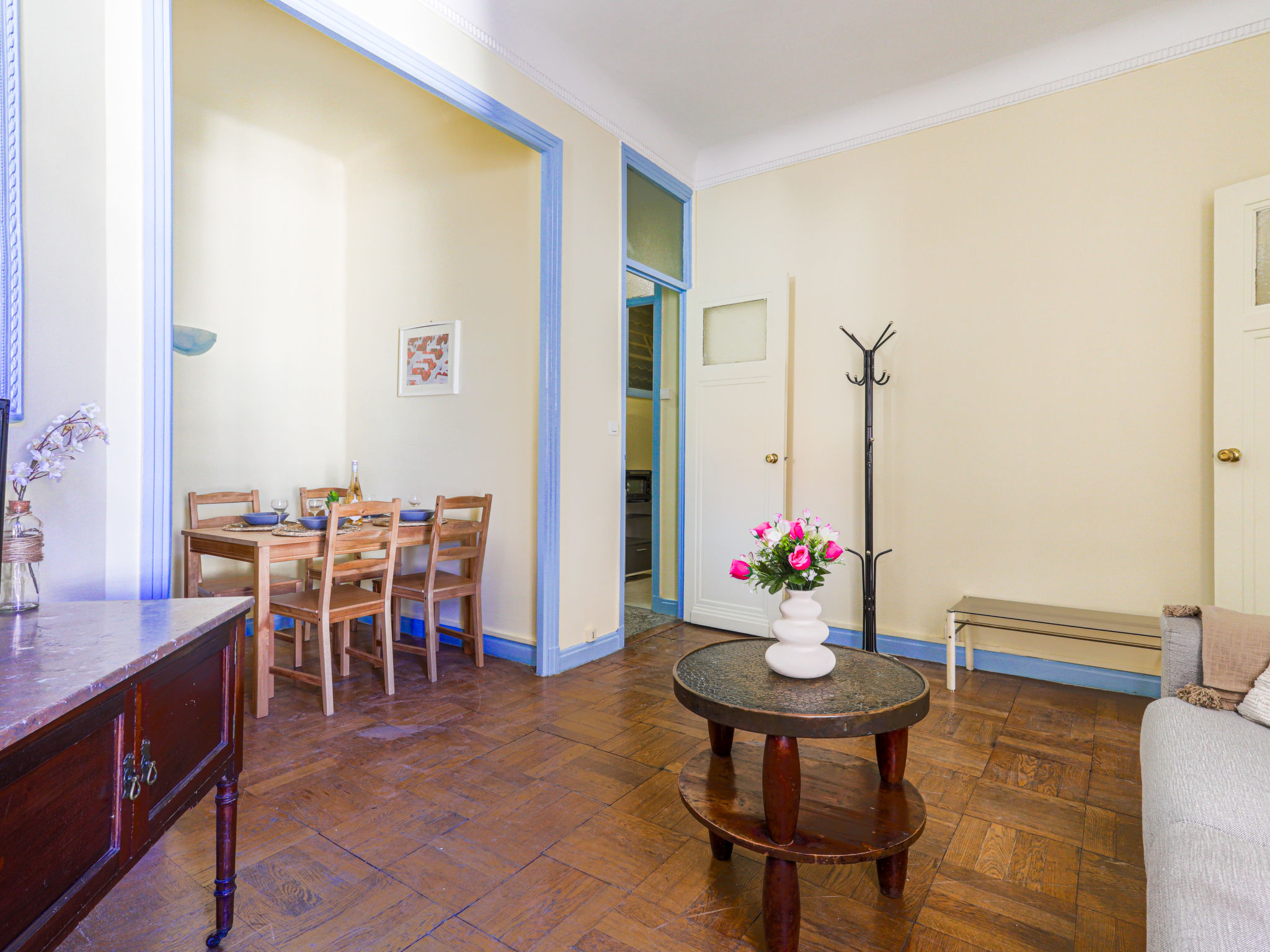 Mehrfamilienhaus "Les Colisées", auf 7 Stockwerken. Im Ortsteil Musiciens, zentrale, belebte Lage, 650 m vom Meer, 650 m vom Strand. Im Hause: Fahrstuhl. Lebensmittelgeschäft, Supermarkt 130 m, Einkaufszentrum 750 m, Restaurant 30 m, Bäckerei 50 m, Fußgängerzone 500 m, Fahrradverleih 50 m, Zentrum zu Fuss in 12 Minuten erreichbar, Straßenbahn 500 m, Bushaltestelle 260 m, Bahnstation 550 m, Steinstrand "publique" 650 m. Golfplatz (18 Loch) 21 km. Nahe gelegene Sehenswürdigkeiten: Place Masséna 1 km, Cours Saleya/Vieux Nice 1.5 km, Musée Art Moderne et Art Contemporain 1.7 km, Chateau de Nice 2 km, Arènes de Cimiez 3.6 km, Mont Boron 4 km. Bekannte Seen in der Umgebung sind gut erreichbar: Saint Cassien 60 km. Wandergebiete: Col de Vence 30 km, Parc National du Mercantour 56 km.
