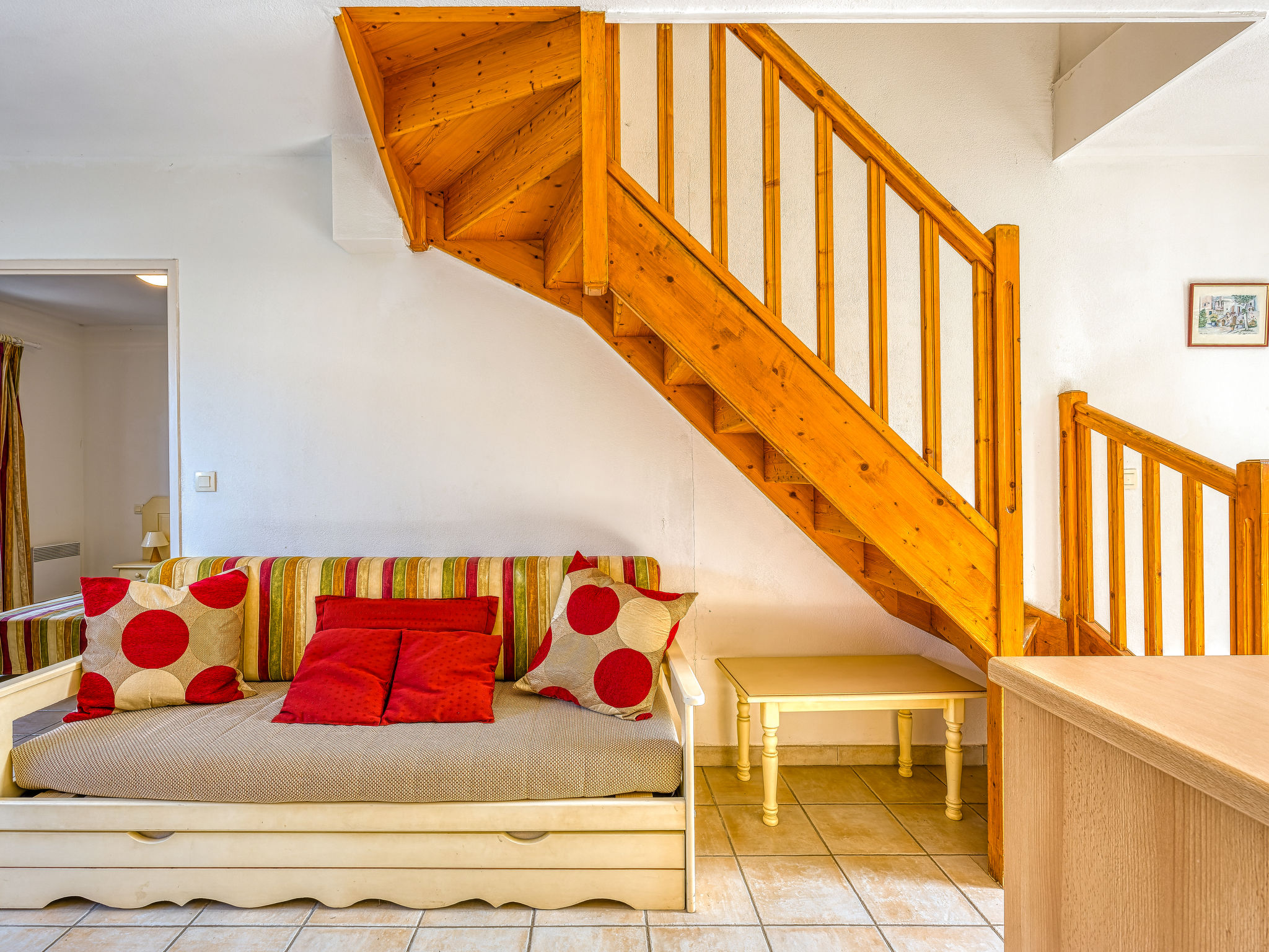 4-Zimmer-Reihenhaus 60 m2 auf 2 Stockwerken. Schön eingerichtet: Wohn-/Esszimmer mit TV (Flachbildschirm). Ausgang zur Terrasse. 1 Zimmer mit 1 franz. Bett (140 cm), Dusche/WC. Ausgang zur Terrasse. Offene Küche (Backofen, Geschirrspüler, 4 Glaskeramikherd Platten, Mikrowelle, Tiefkühler) mit Bar. Obergeschoss: 1 Zimmer mit 2 Betten (90 cm). 1 Zimmer mit 1 franz. Bett (140 cm). Bad, sep. WC. E-Heizung. Terrasse 18 m2, Westlage. Terrassenmöbel. Zur Verfügung: Waschmaschine. Internet (Wireless LAN, extra). Parkplatz (eingezäunt). Bitte beachten: 1 Haustier/Hund erlaubt. Rauchmelder. Inserat einer Privatperson nach Artikel 155, IV, CGI.