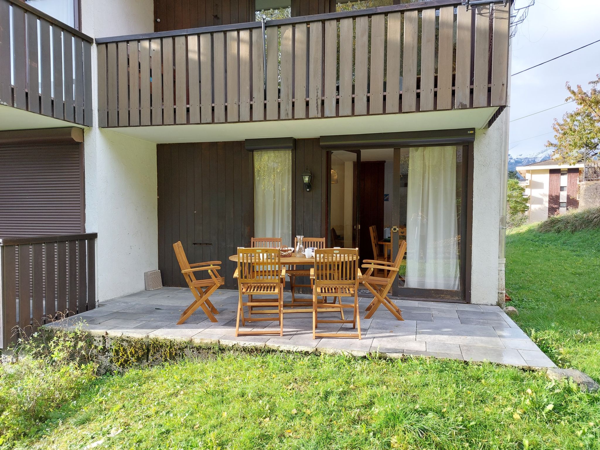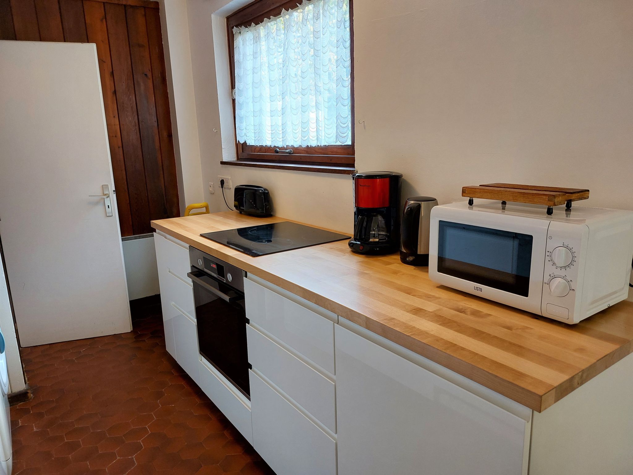 "Le Sporting", 4-Zimmer-Wohnung 70 m2 im 1. Stock. Wohn-/Esszimmer mit TV. Ausgang zur Terrasse, Richtung Südwesten. 2 Zimmer, jedes Zimmer mit 1 franz. Bett. 1 Zimmer mit 1 x 2 Etagenbetten. Offene Küche (4 Kochplatten, Backofen, Geschirrspüler, Toaster, Wasserkocher, Mikrowelle, elektrische Kaffeemaschine). Bad, sep. WC. Ölheizung. Terrassenmöbel. Schöne Sicht auf die Berge. Zur Verfügung: Waschmaschine. Internet (Wireless LAN, extra). Bitte beachten: TV nur FR. Rauchmelder. Inserat einer Privatperson nach Artikel 155, IV, CGI.