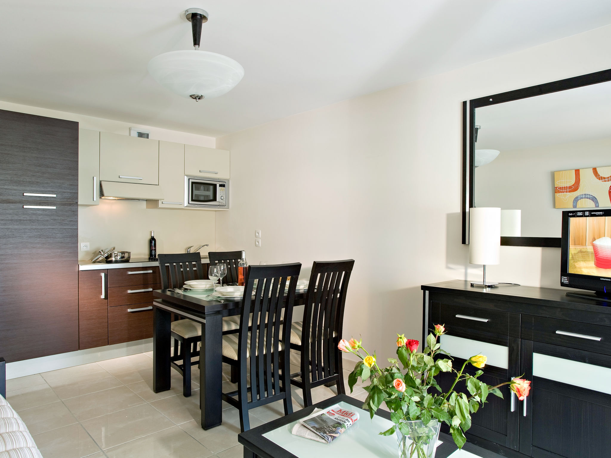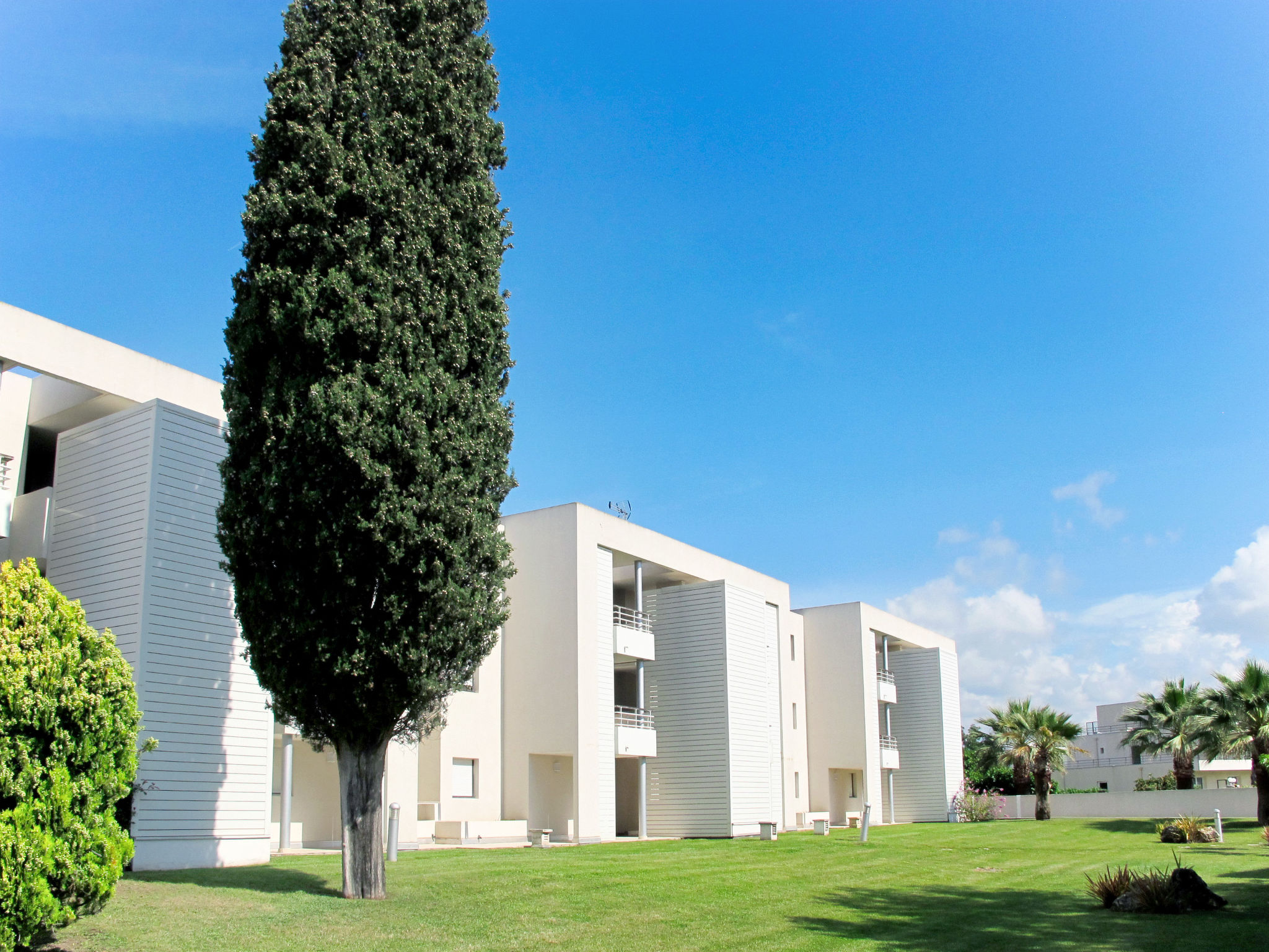Residenz "Carré Marine", auf 3 Stockwerken. 3 Häuser in der Residenz. 40 Wohnungen in der Residenz. 2 km vom Zentrum von Mandelieu, 7.5 km vom Zentrum von Cannes, 40 km vom Zentrum von Nice, 1.5 km vom Meer, 20 m vom Fluss. Zur Mitbenutzung: Grundstück 12'000 m2 (eingezäunt) mit Rasen und Bäumen, Schwimmbad eingezäunt (15 x 8 m, 120 - 210 cm tief, saisonale Verfügbarkeit: 04.Apr.-31.Okt. Öffnungszeiten Schwimmbad: 09:00-20:00). WC im Poolbereich, Kinderbecken, Aussendusche, Tischtennis, Boccia, Kinderspielplatz. Im Hause: Empfang, Wireless LAN, Fahrstuhl, Waschmaschine, Wäschetrockner (zur Mitbenutzung, extra). Supermarkt 2.4 km, Sandstrand 1.5 km. Golfplatz (18 Loch) 2.6 km. Bitte beachten: private Bootsanlegestelle (extra) auf Anfrage. Das Foto ist nur ein Wohnungsbeispiel. Die Mietobjekte können sich in Wohnfläche, Raumaufteilung, Ausstattung und Einrichtung unterscheiden.