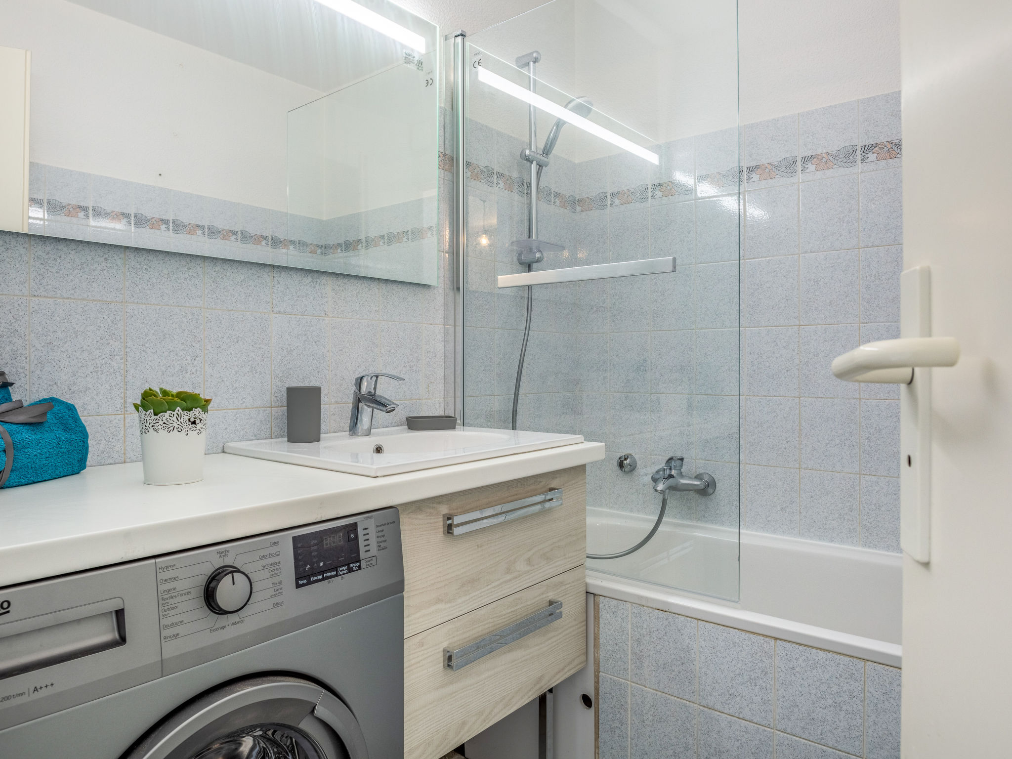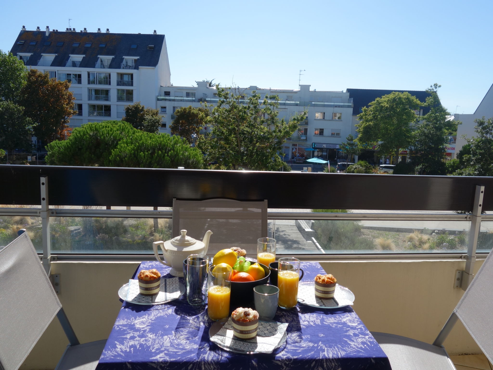 "Résidence Le Grand Bleu", 2-Zimmer-Wohnung 34 m2 im 1. Stock. Wohn-/Esszimmer mit 1 Doppeldiwanbett (1 x 140 cm, Länge 190 cm), TV (Flachbildschirm). Ausgang zur Terrasse. 1 Zimmer mit 1 franz. Bett (1 x 140 cm, Länge 190 cm). Ausgang zur Terrasse. Küche (Geschirrspüler, 2 Glaskeramikherd Platten, elektrische Kaffeemaschine, Kapseln für die Kaffeemaschine (Nespresso), Kombinationsmikrowelle). Bad, sep. WC. E-Heizung. Sicht auf das Meer. Zur Verfügung: Waschmaschine. Inserat einer Privatperson nach Artikel 155, IV, CGI.