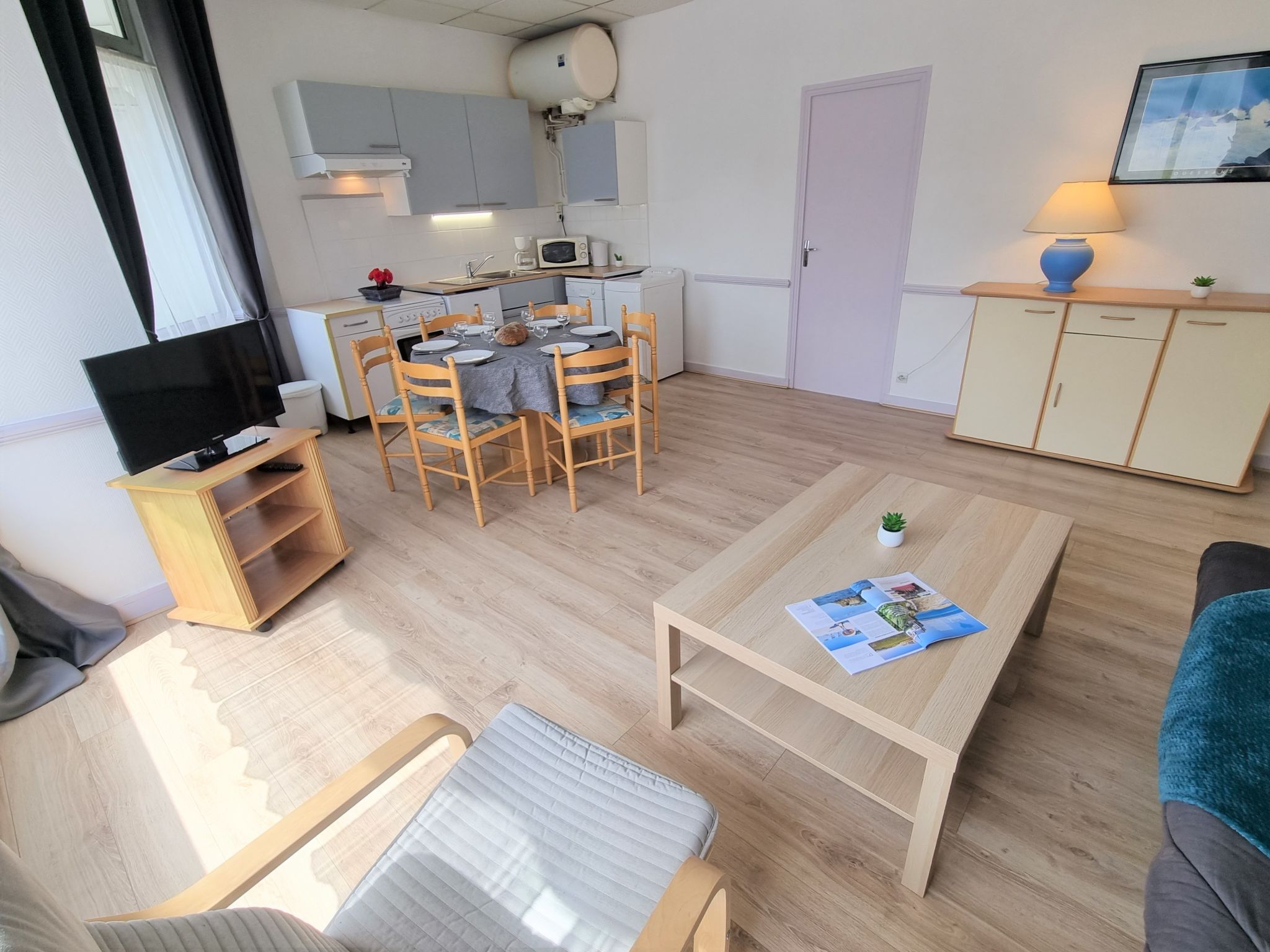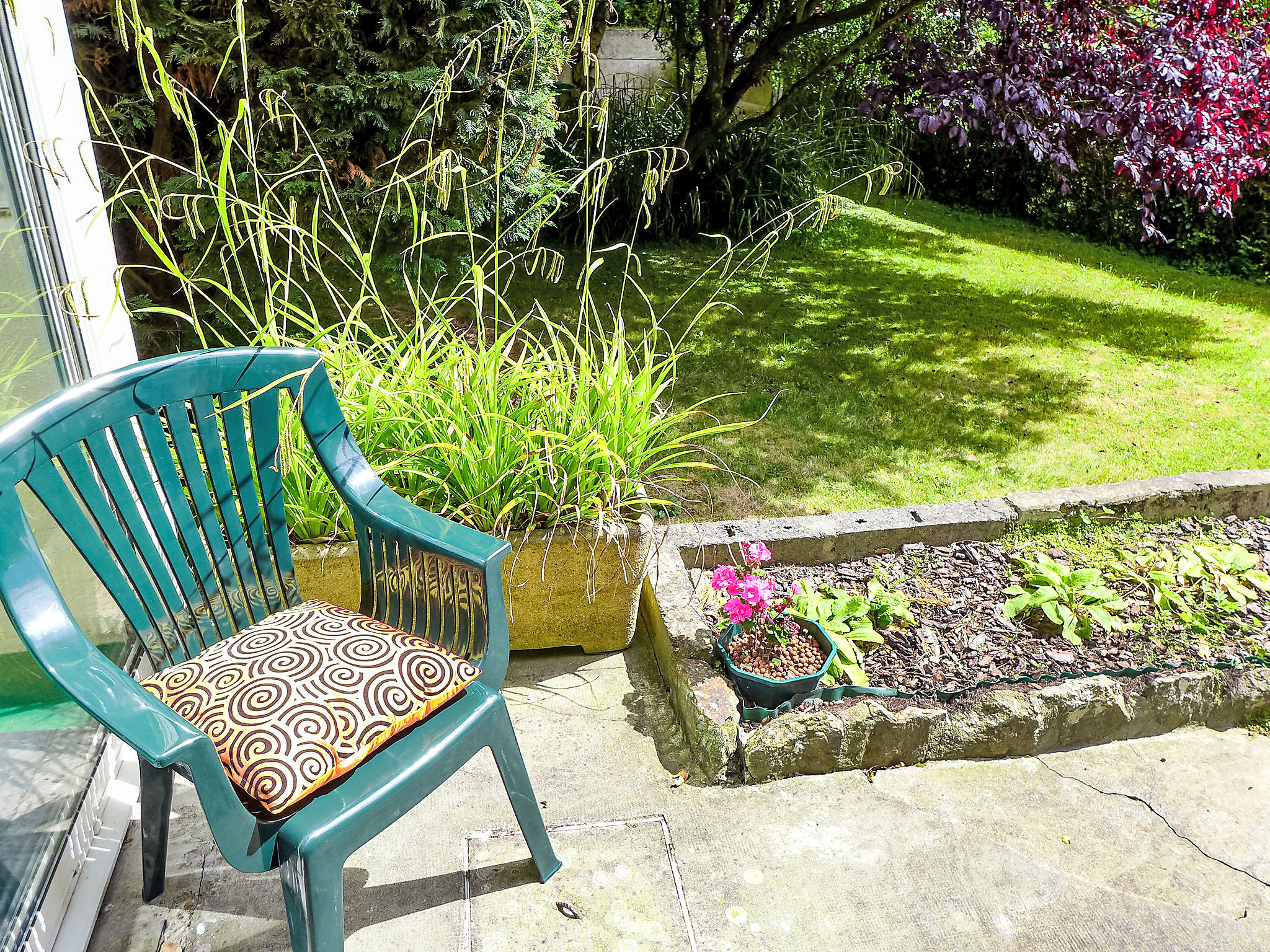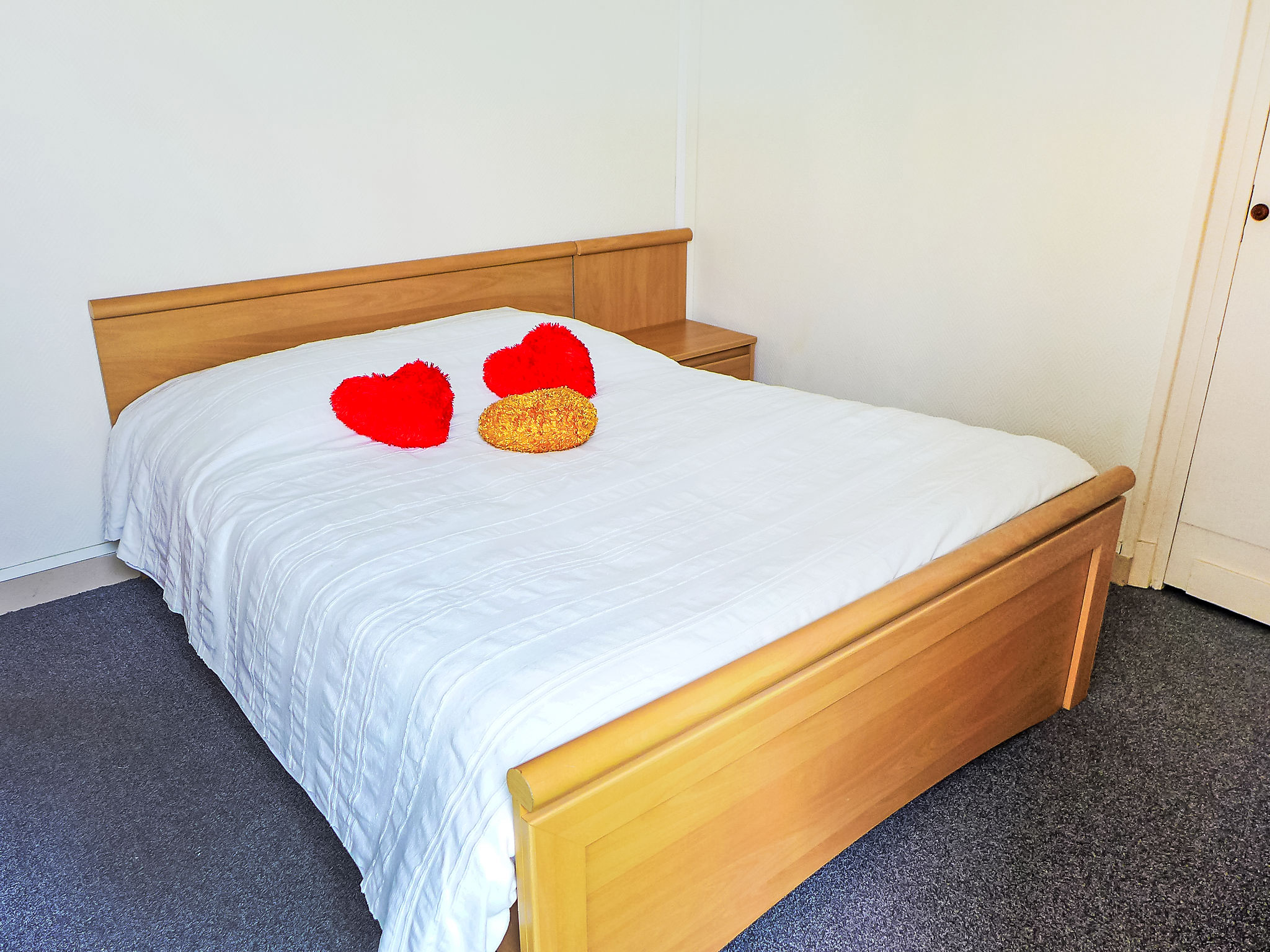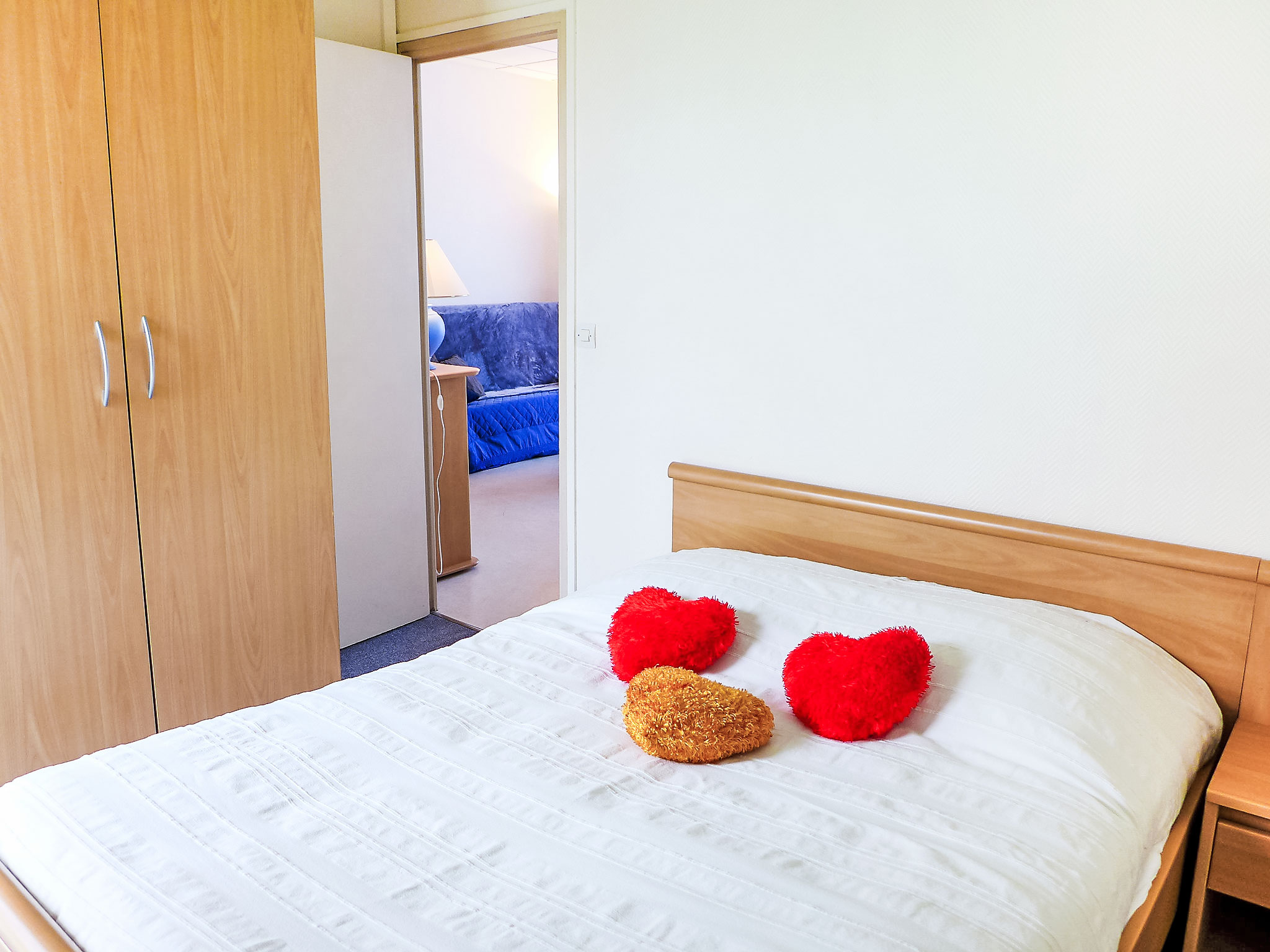 3-Zimmer-Wohnung 57 m2, im Erdgeschoss. Hell, einfach und zweckmässig eingerichtet: Wohn-/Esszimmer mit 1 Doppeldiwanbett (1 x 140 cm, Länge 190 cm), TV. 1 Zimmer mit 2 Betten (90 cm, Länge 190 cm). Ausgang zum Garten. 1 Zimmer mit 1 franz. Bett (1 x 140 cm, Länge 190 cm). Ausgang zur Veranda. Kochnische (2 Kochplatten, Backofen, Geschirrspüler, Toaster, Wasserkocher, Mikrowelle, elektrische Kaffeemaschine). 2 Duschen, sep. WC. E-Heizung. Terrassenmöbel. Zur Verfügung: Waschmaschine, Bügeleisen. Bitte beachten: Nichtraucher-Unterkunft. 1 kleines Haustier/Hund erlaubt. Rauchmelder. WIFI nicht möglich. Inserat einer Privatperson nach Artikel 155, IV, CGI.