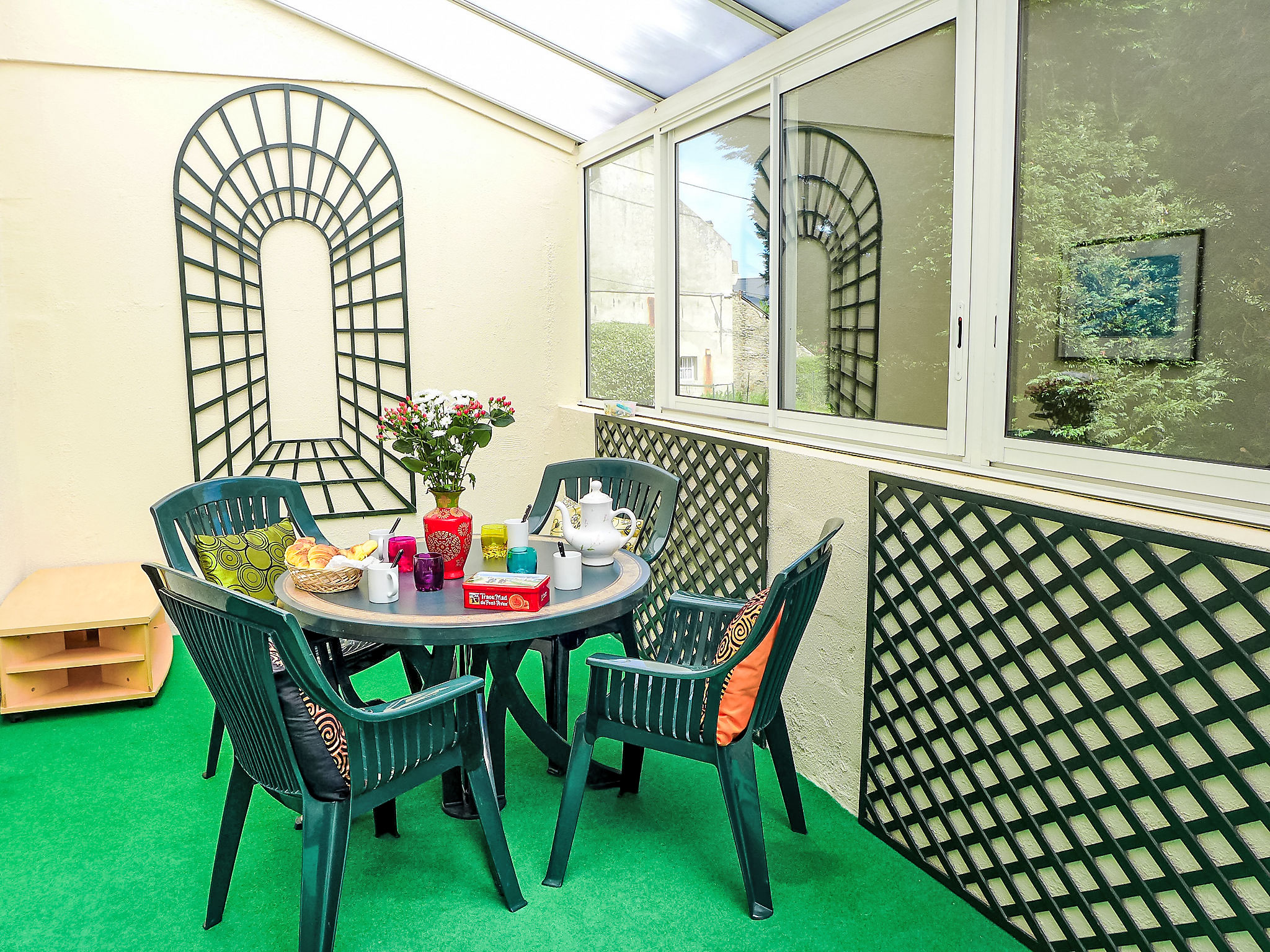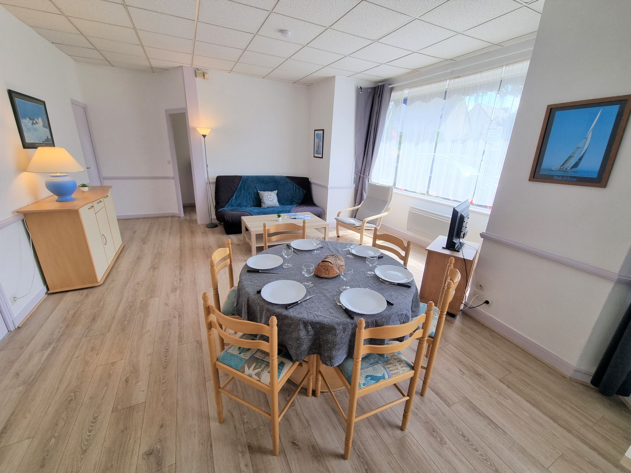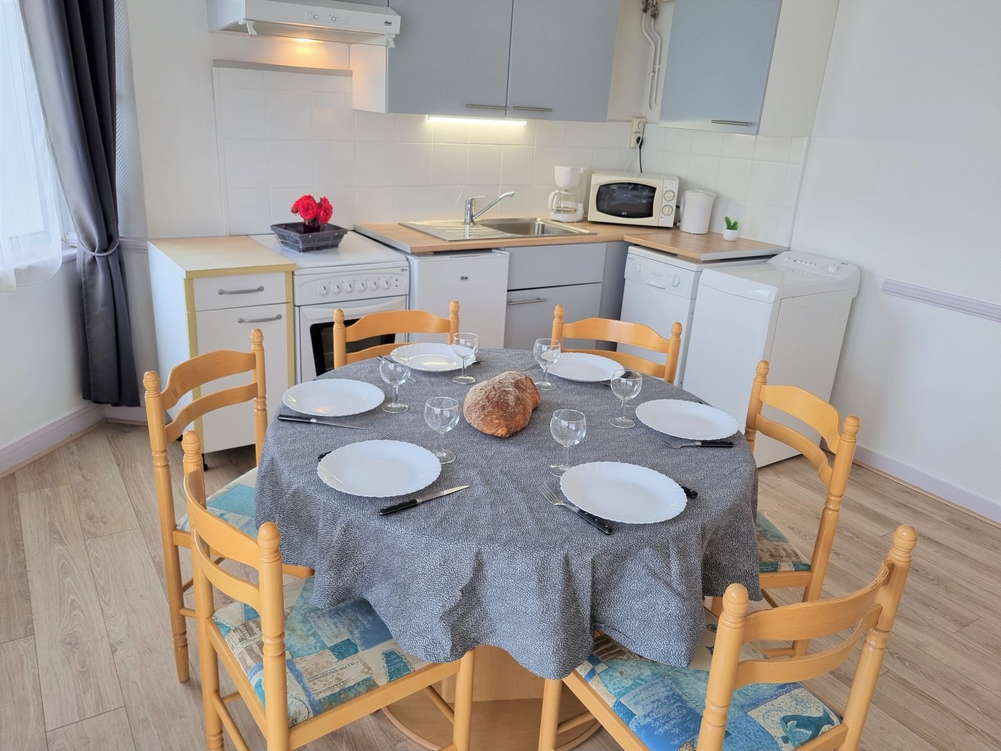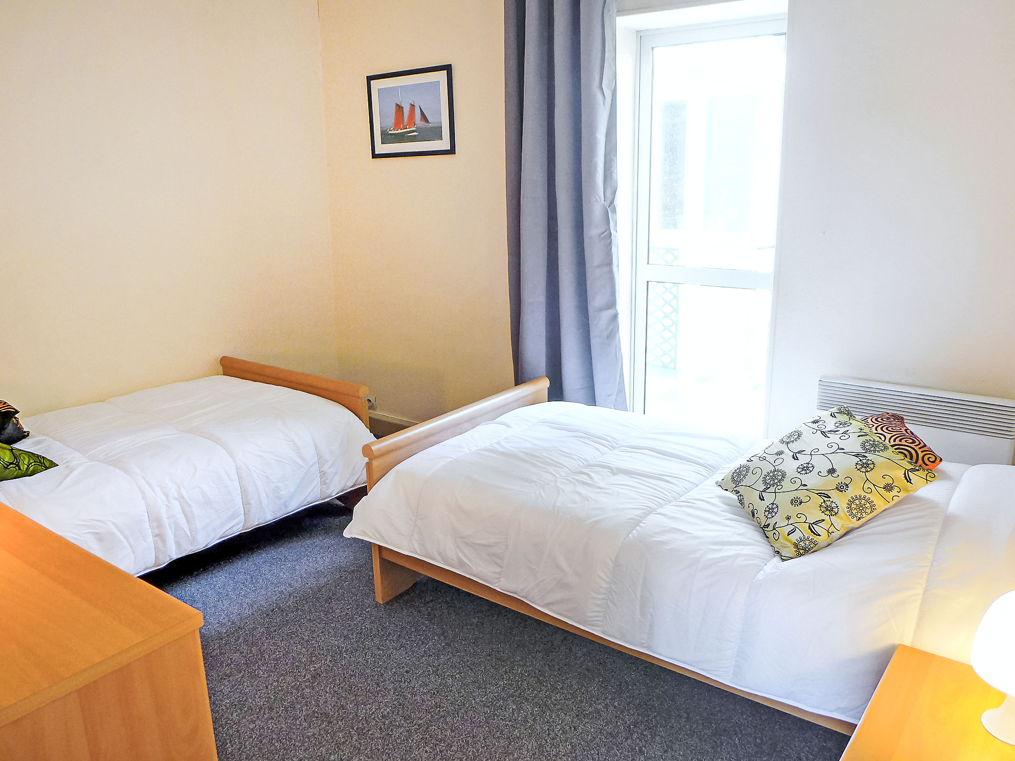 3-Zimmer-Wohnung 57 m2, im Erdgeschoss. Hell, einfach und zweckmässig eingerichtet: Wohn-/Esszimmer mit 1 Doppeldiwanbett (1 x 140 cm, Länge 190 cm), TV. 1 Zimmer mit 2 Betten (90 cm, Länge 190 cm). Ausgang zum Garten. 1 Zimmer mit 1 franz. Bett (1 x 140 cm, Länge 190 cm). Ausgang zur Veranda. Kochnische (2 Kochplatten, Backofen, Geschirrspüler, Toaster, Wasserkocher, Mikrowelle, elektrische Kaffeemaschine). 2 Duschen, sep. WC. E-Heizung. Terrassenmöbel. Zur Verfügung: Waschmaschine, Bügeleisen. Bitte beachten: Nichtraucher-Unterkunft. 1 kleines Haustier/Hund erlaubt. Rauchmelder. WIFI nicht möglich. Inserat einer Privatperson nach Artikel 155, IV, CGI.