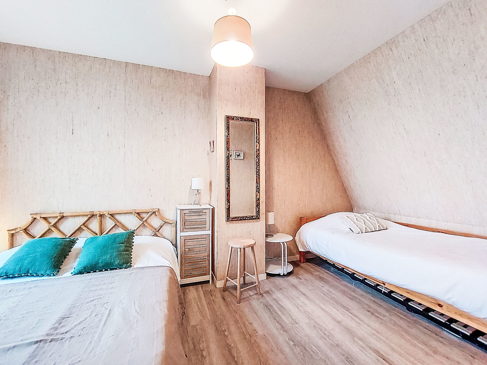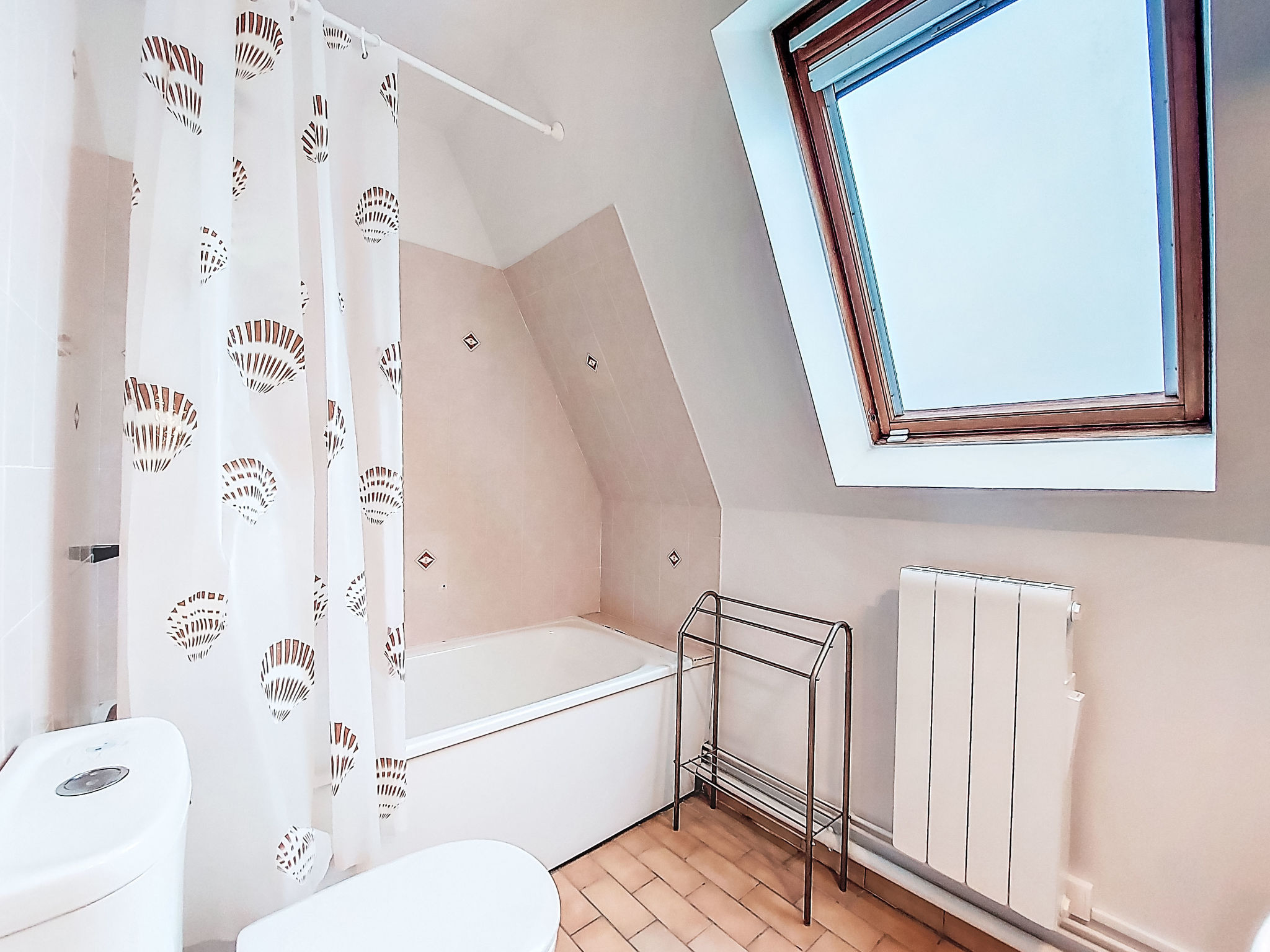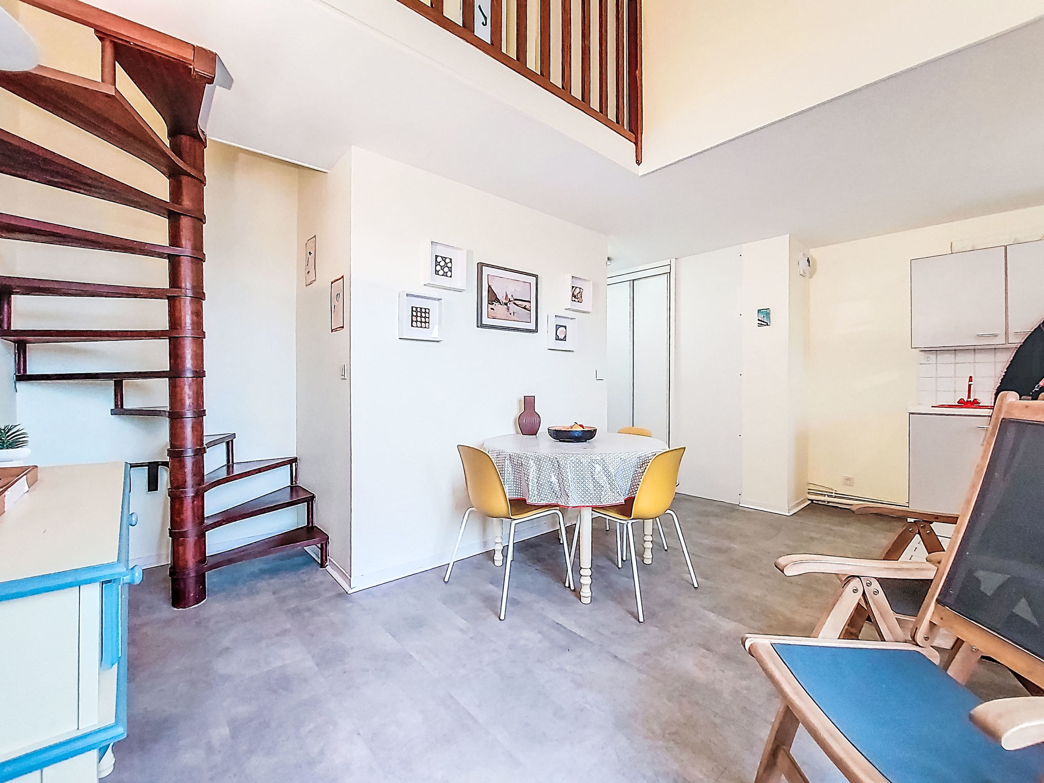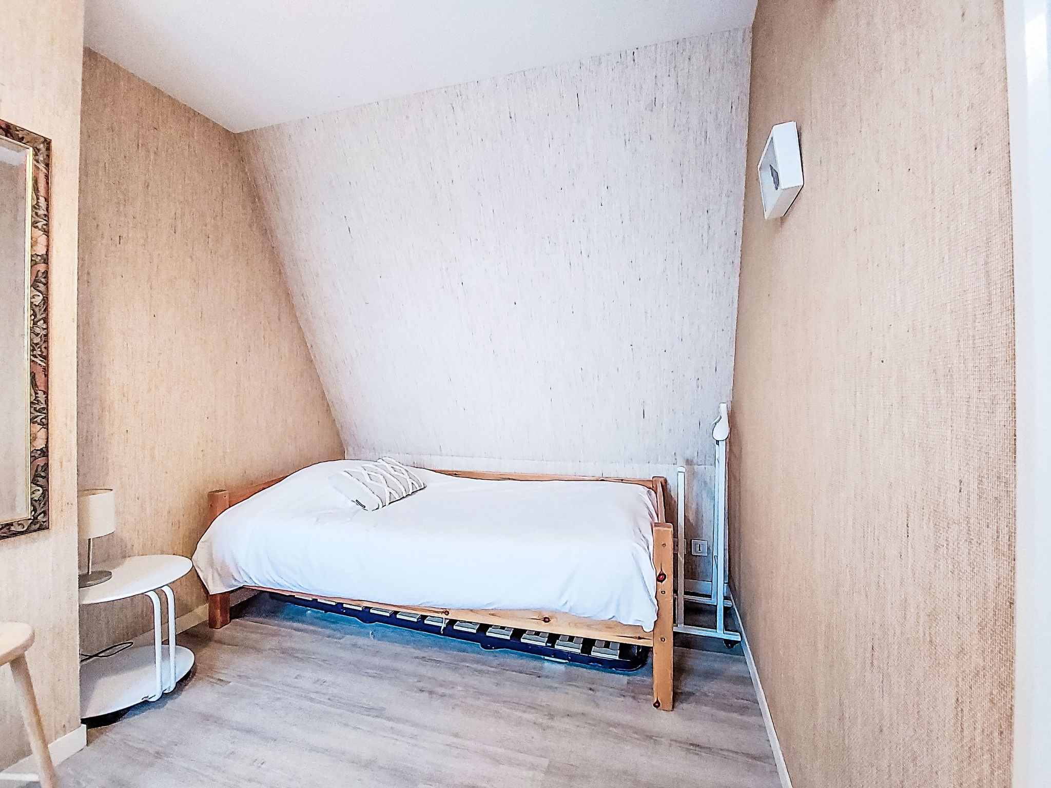 2-Zimmer-Maisonette-Wohnung 36 m2 im 4. Stock. Teilweise abgeschrägt: Eingang. Wohn-/Esszimmer mit TV (Flachbildschirm). Ausgang zum Balkon. Kochnische (2 Kochplatten, Backofen, Geschirrspüler, Toaster, Wasserkocher, Mikrowelle, elektrische Kaffeemaschine). Dusche/WC. Obergeschoss: (Wendeltreppe) 1 Zimmer mit 1 Bett (90 cm, Länge 190 cm), 1 franz. Bett (140 cm, Länge 190 cm). Ausgang zum Balkon. Bad/WC. Kleiner Balkon 3 m2, Ostlage, kleiner Balkon 2 m2, Westlage. Schöne Sicht auf die Ortschaft. Zur Verfügung: Internet (Wireless LAN, extra). Bitte beachten: Nichtraucher-Unterkunft, kein Parkplatz. Rauchmelder. Inserat einer Privatperson nach Artikel 155, IV, CGI. 14220 000112 RV