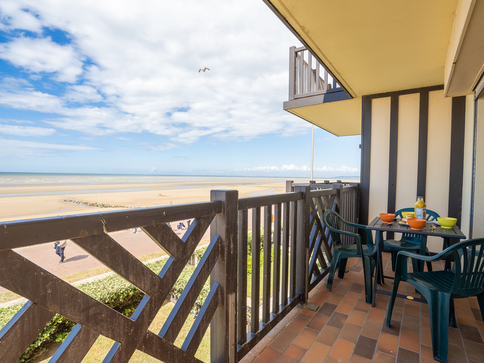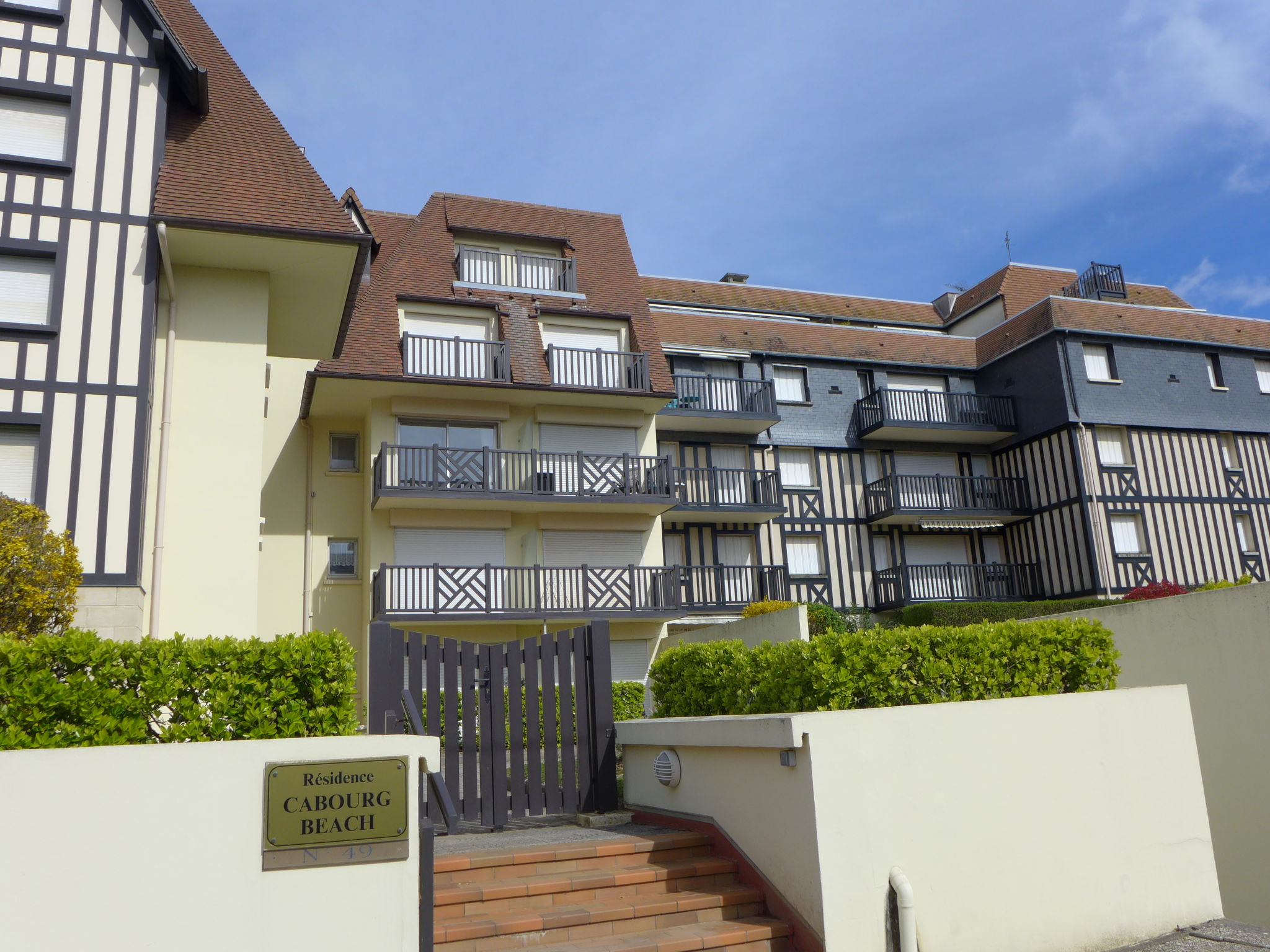 Residenz "Cabourg Beach", auf 4 Stockwerken. Im Ort, 600 m vom Zentrum von Cabourg, 300 m vom Zentrum von port de plaisance, 50 m vom Meer, 50 m vom Strand. In der Anlage: Fahrstuhl. Öffentliche Parkplätze auf der Strasse. Einkaufsgeschäft, Restaurant 600 m, Sandstrand 50 m, Thermalbad"Thalassothérapie" 2.5 km. Golfplatz (9 Loch) 2 km. Zur Information: Die Residenz ist über einige Stufen erreichbar.