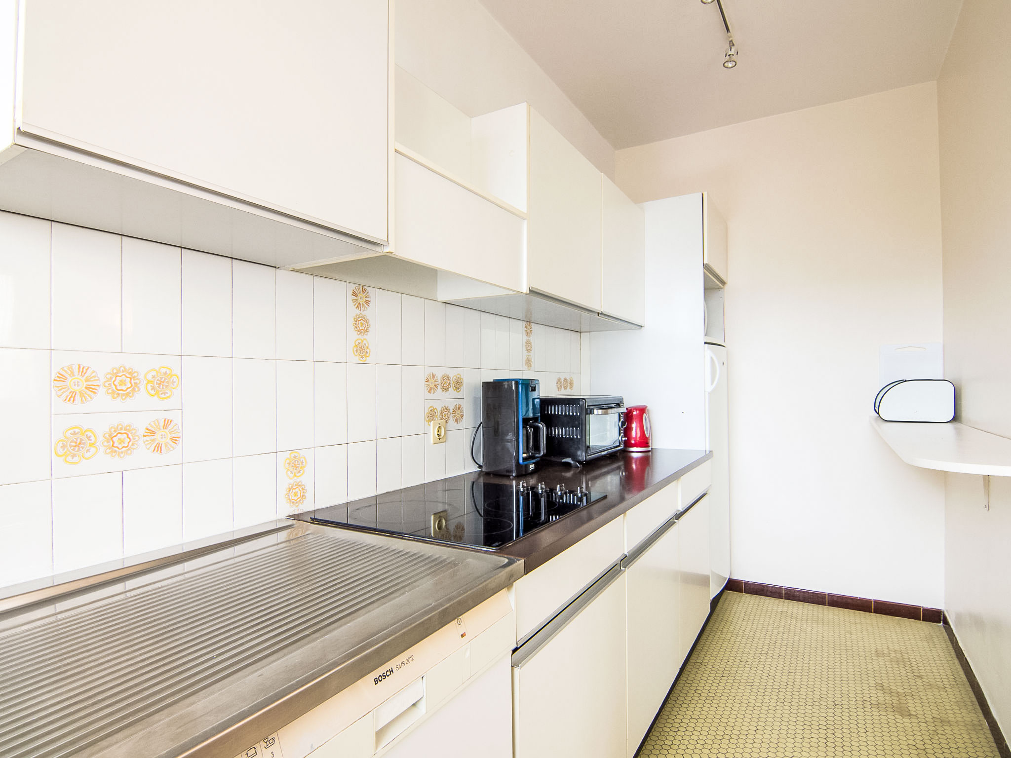 2-Zimmer-Wohnung 45 m2 im 2. Stock. Eingang. Wohn-/Esszimmer mit 1 Diwanbett (120 cm), TV (Flachbildschirm). Ausgang zum Balkon. 1 Zimmer mit 1 franz. Bett (140 cm). Küche (4 Kochplatten, Mini-Backofen, Geschirrspüler, Toaster, Wasserkocher, Mikrowelle, elektrische Kaffeemaschine). Bad/WC. Balkon 6 m2, Westlage und Nordlage. Balkonmöbel. Eingeschränkte Sicht auf den Hafen. Zur Verfügung: Waschmaschine. Internet (Wireless LAN, gratis). Bitte beachten: Nichtraucher-Unterkunft, kein Parkplatz. Rauchmelder. Inserat einer Privatperson nach Artikel 155, IV, CGI.