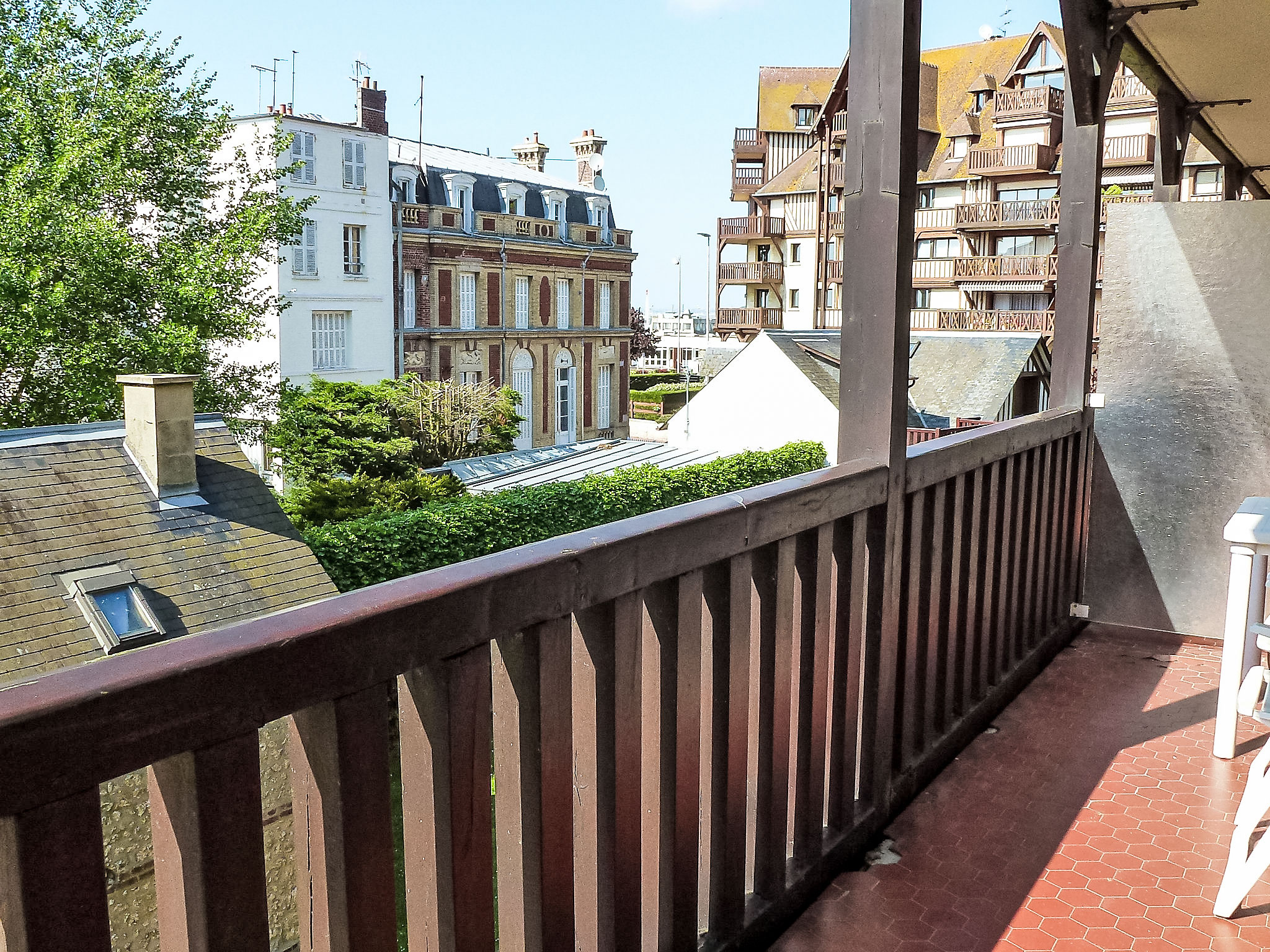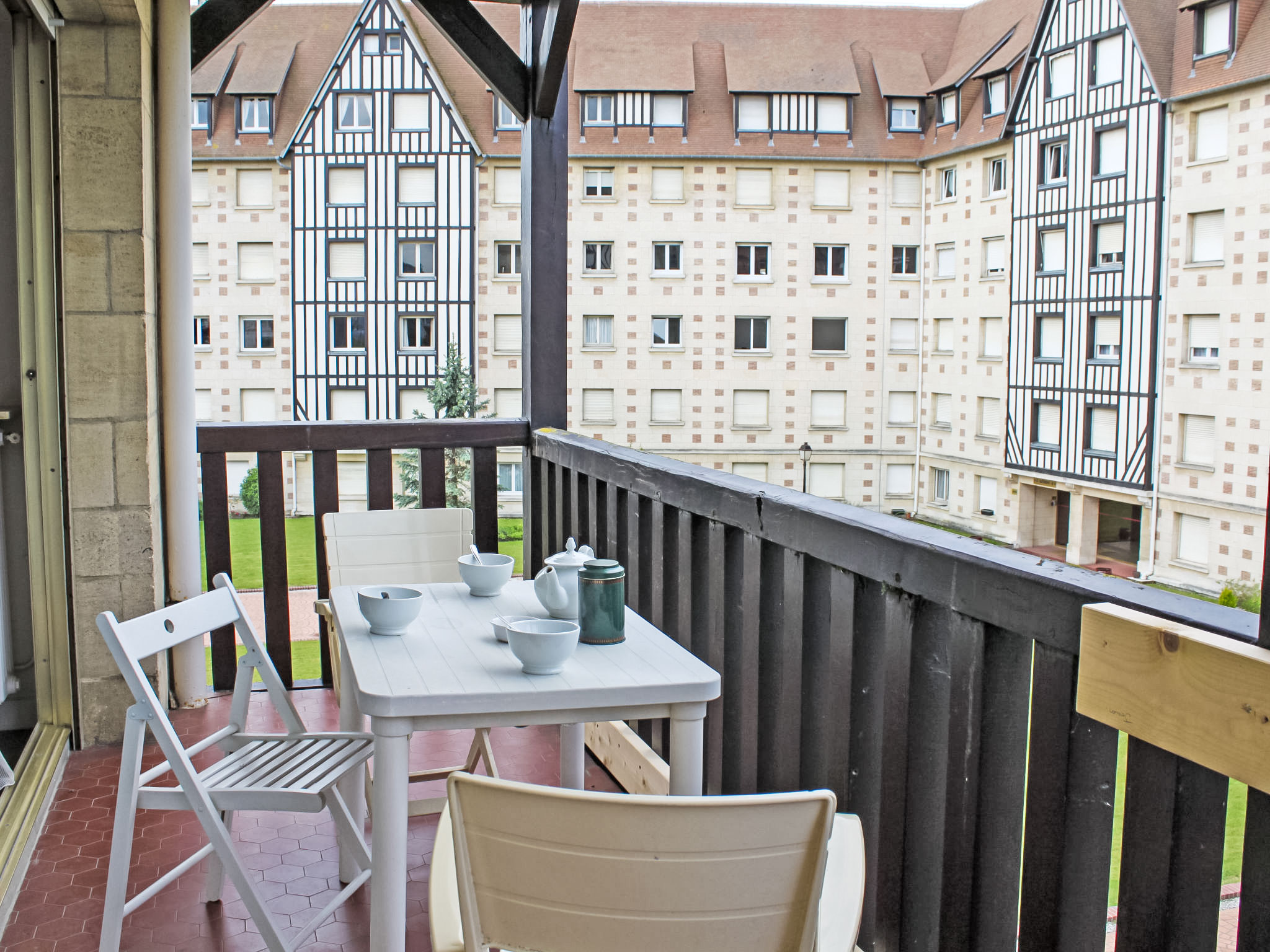 Deauville: Residenz "Castel Guermante", auf 4 Stockwerken. Zentrale Lage, 400 m vom Meer, 400 m vom Strand. In der Anlage: Fahrstuhl. Einkaufsgeschäft, Lebensmittelgeschäft 350 m, Supermarkt 550 m, Restaurant, Bushaltestelle 350 m, Bahnstation "Deauville-Trouville" 850 m, Hallenbad 800 m, Thermalbad "Thalasso Deauville" 800 m. Golfplatz 4.3 km, Tennis, Reitstall 450 m. Nahe gelegene Sehenswürdigkeiten: Centre International Deauville - CID 600 m, Hippodrome Deauville-La Touques 900 m, Mémorial de Caen 49 km, Plage du débarquement d'Arromanches 85 km. Die Schlüsselübergabe findet bei der Agentur Interhome in Deauville statt.