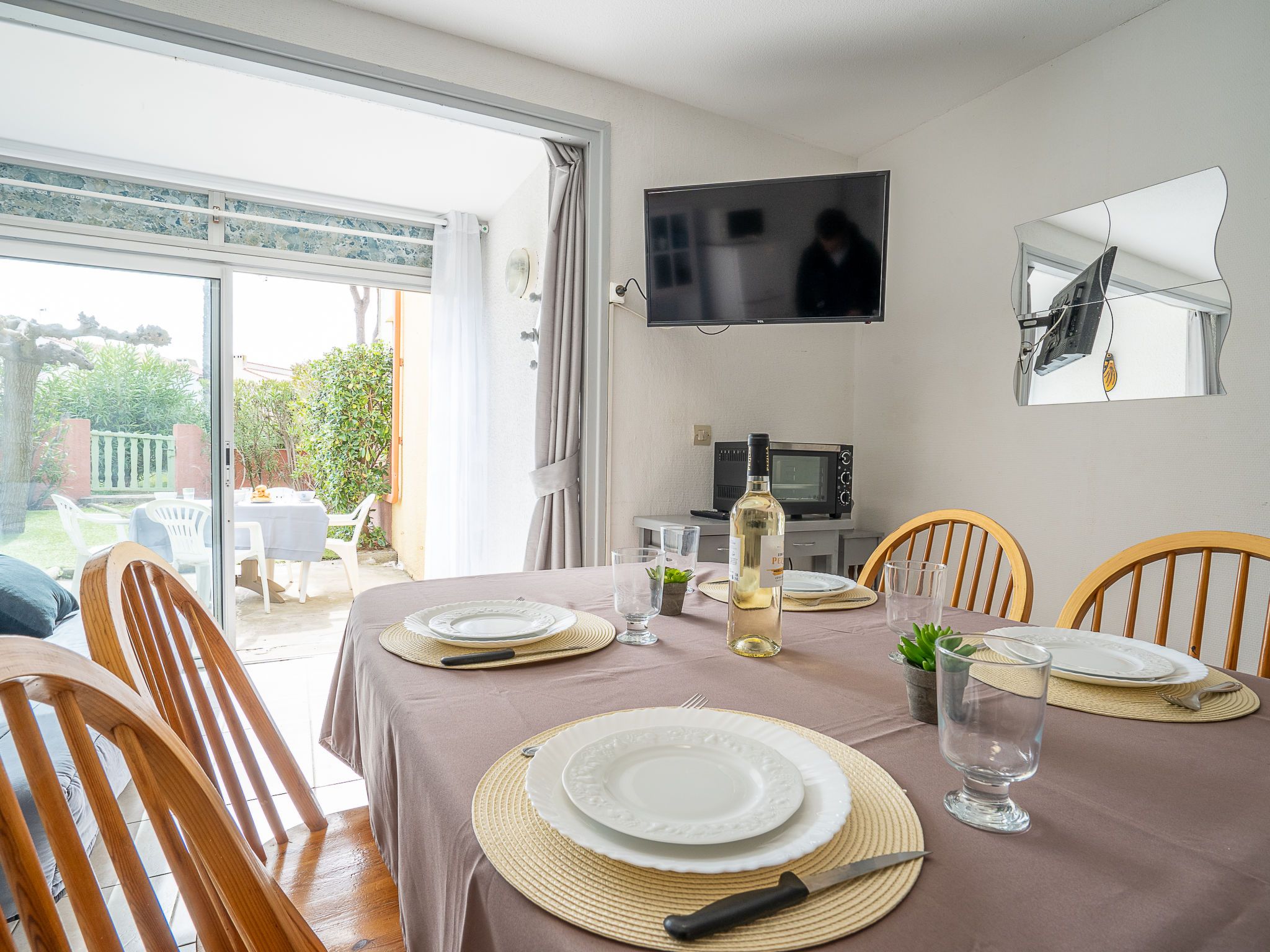 Residenz "Les Mas de La Mer", auf 2 Stockwerken. 400 m vom Meer, 400 m vom Strand, an einer Hauptstrasse. Parkplatz. Einkaufsgeschäft 700 m, Supermarkt 200 m, Restaurant, Bäckerei 700 m, Bahnstation "Elne" 8.6 km, Sandstrand "Plage Nord" 400 m. Sporthafen 2 km, Golfplatz (27 Loch) 2 km, Segelschule 3.5 km, Minigolf 500 m, Reitstall 3 km, Sportzentrum 4 km. Nahe gelegene Sehenswürdigkeiten: Aqualand 6 km. Bitte beachten: In diesem Haus sind weitere Ferienwohnungen mietbar.