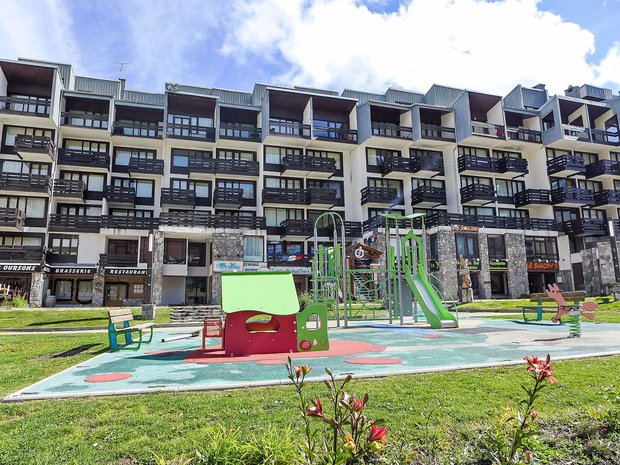 Val Claret: Residenz "Neige d'or", auf 4 Stockwerken. Sonnige Lage in einem Wohnquartier, 20 m vom Skigebiet. In der Anlage: Fahrstuhl, Skiraum, Zentralheizung. Einkaufsgeschäft 50 m, Supermarkt 100 m, Restaurant 10 m, Bäckerei 50 m, Hallenbad 2 km. Sportzentrum 2 km, Wanderwege ab Haus 20 m, Bergbahn 300 m, Skisportanlagen, Skipisten, Skiverleih 20 m, Skibushaltestelle 300 m, Skischule 10 m, Schlittelbahn 20 m. Nahe gelegene Sehenswürdigkeiten: Centre aquatique Le Lagon 2 km, Centre sportif Tignespace 2 km. Bekannte Skigebiete sind gut erreichbar: Tignes & Val d'Isère 20 m. Wandergebiete: Parc Naturel Régional de la Vanoise 250 m. Bitte beachten: Gratis Skibus. Die Residenz wird durch elektrische Tore geschlossen.