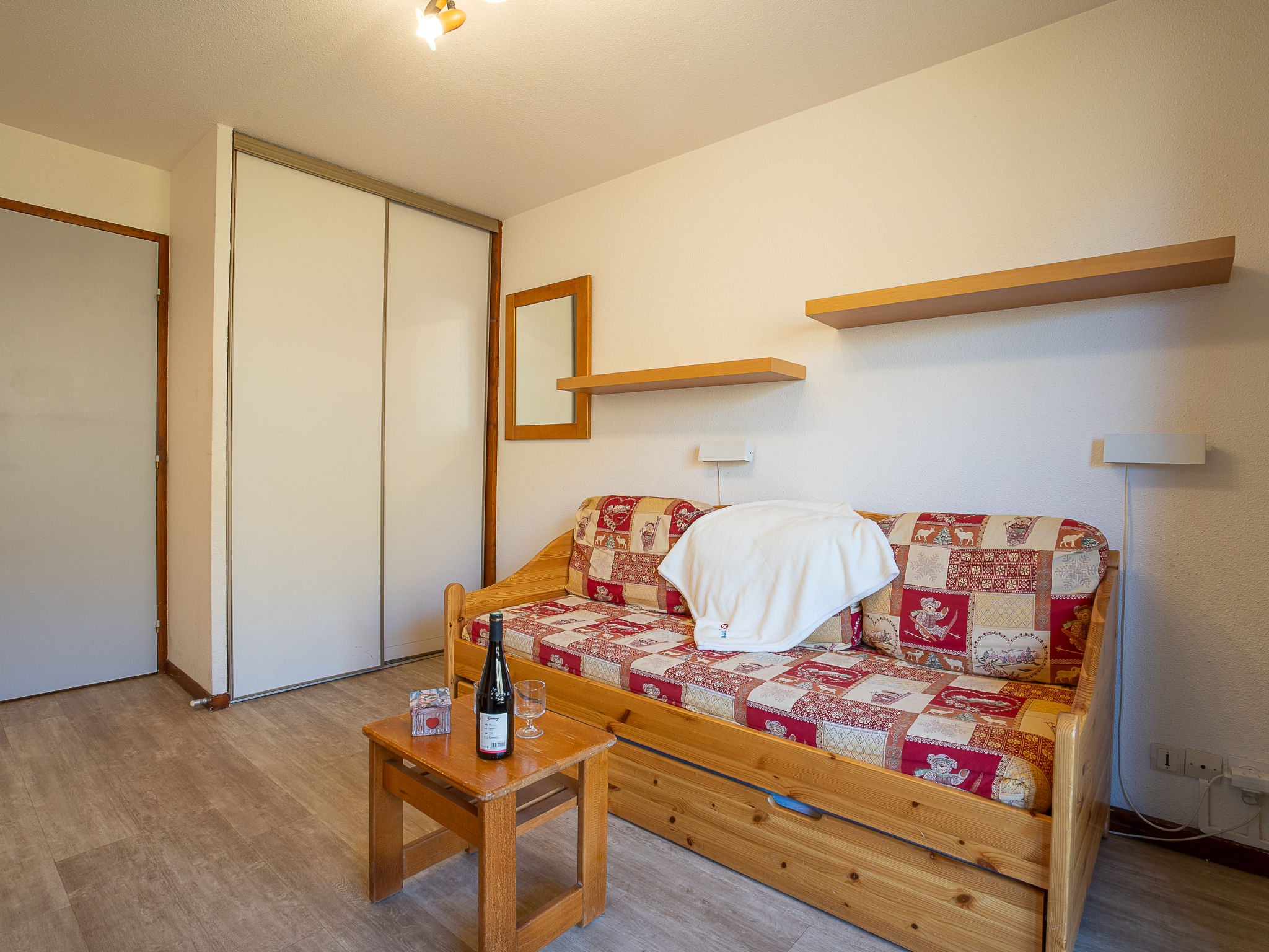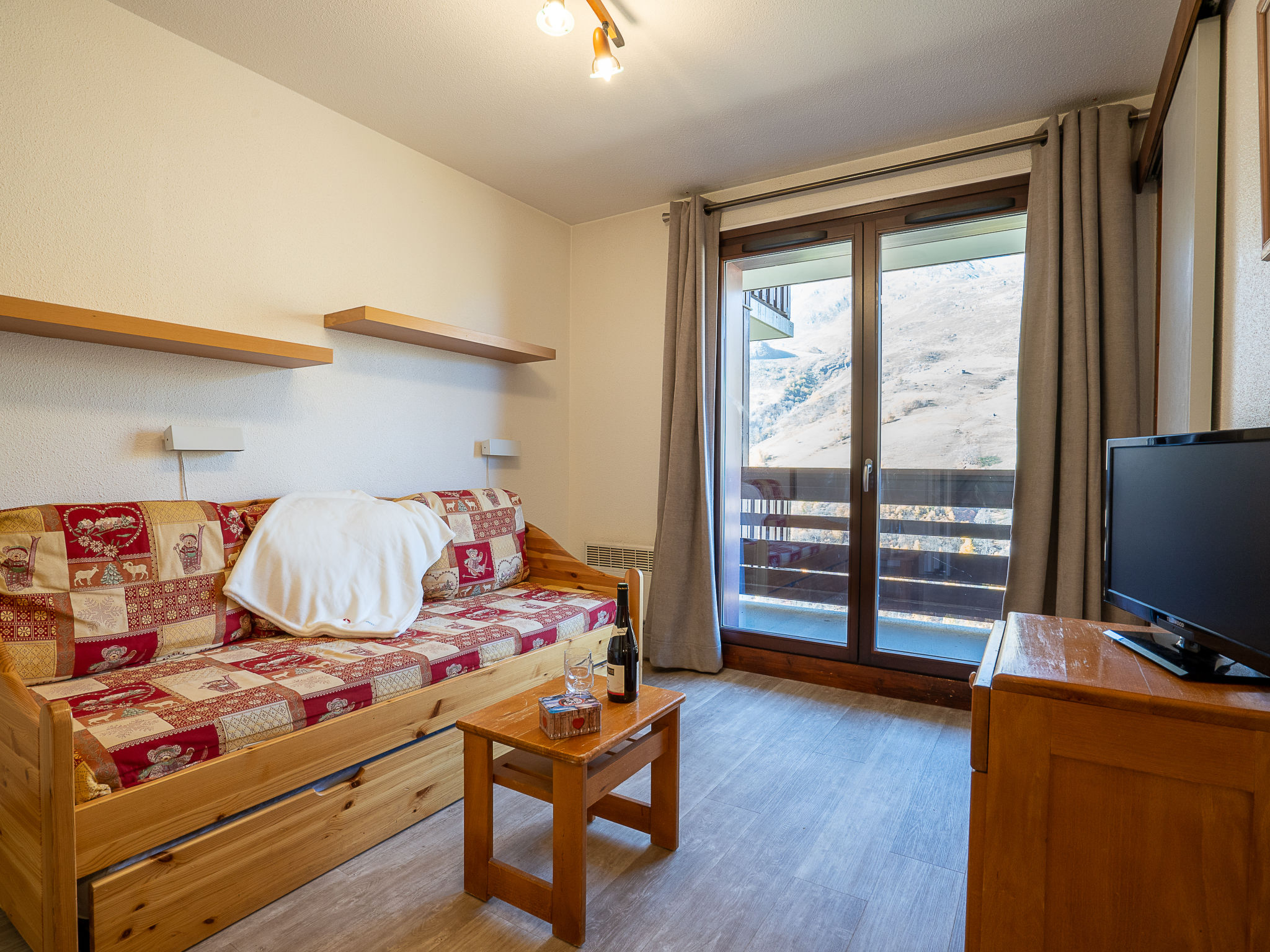 "Balcons D'olympie 305 entrée A", 2-Zimmer-Wohnung 30 m2 im 3. Stock. Komfortabel eingerichtet: Wohn-/Esszimmer mit 1 Ausziehbett (2 Pers. 2 x 80 cm, Länge 190 cm), TV (Flachbildschirm). Ausgang zum Balkon. Kabine mit 1 x 2 Etagenbetten (80 cm, Länge 190 cm). 1 Zimmer mit 2 Betten (80 cm, Länge 190 cm). Kochnische (Geschirrspüler, 2 Glaskeramikherd Platten, Mikrowelle, elektrische Kaffeemaschine). Bad, sep. WC. E-Heizung. Grosser Balkon, Westlage. Schöne Sicht auf die Berge. Zur Verfügung: Internet (Wireless LAN, extra). Bitte beachten: Rauchmelder. Inserat einer Privatperson nach Artikel 155, IV, CGI.
