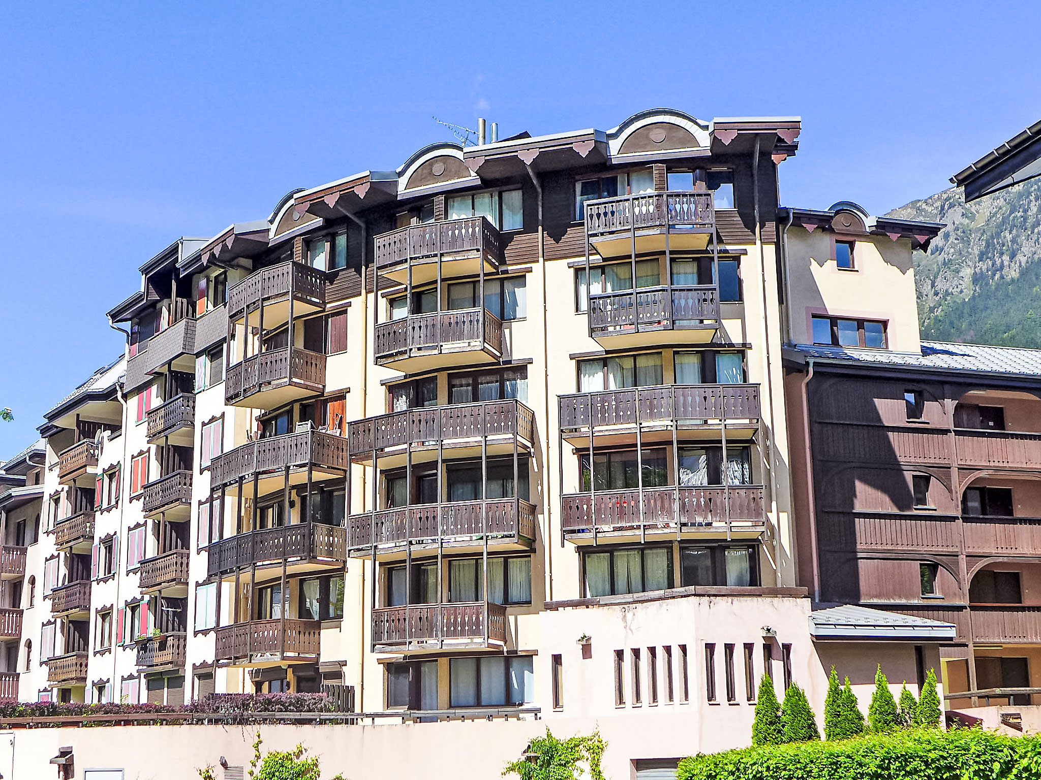 Residenz "Jonquilles", auf 5 Stockwerken. Im Ortsteil Chamonix Sud, 500 m vom Zentrum, belebte Lage. In der Anlage: Fahrstuhl. Einkaufsgeschäft, Supermarkt 50 m, Einkaufszentrum 600 m, Restaurant, Bar 50 m, Bushaltestelle 150 m, Bahnstation "Chamonix Mont-Blanc" 800 m. Golfplatz (18 Loch) 4.1 km, Sportzentrum 1 km, Skisportanlagen 1 km, Langlaufloipe 1 km. Nahe gelegene Sehenswürdigkeiten: Téléphérique de l'Aiguille du Midi 200 m, Train du Montenvers Mer de Glace 900 m. Bitte beachten: Gratis Skibus. Nacht Club/Disco in der Nähe. In diesem Haus sind weitere Ferienwohnungen mietbar.