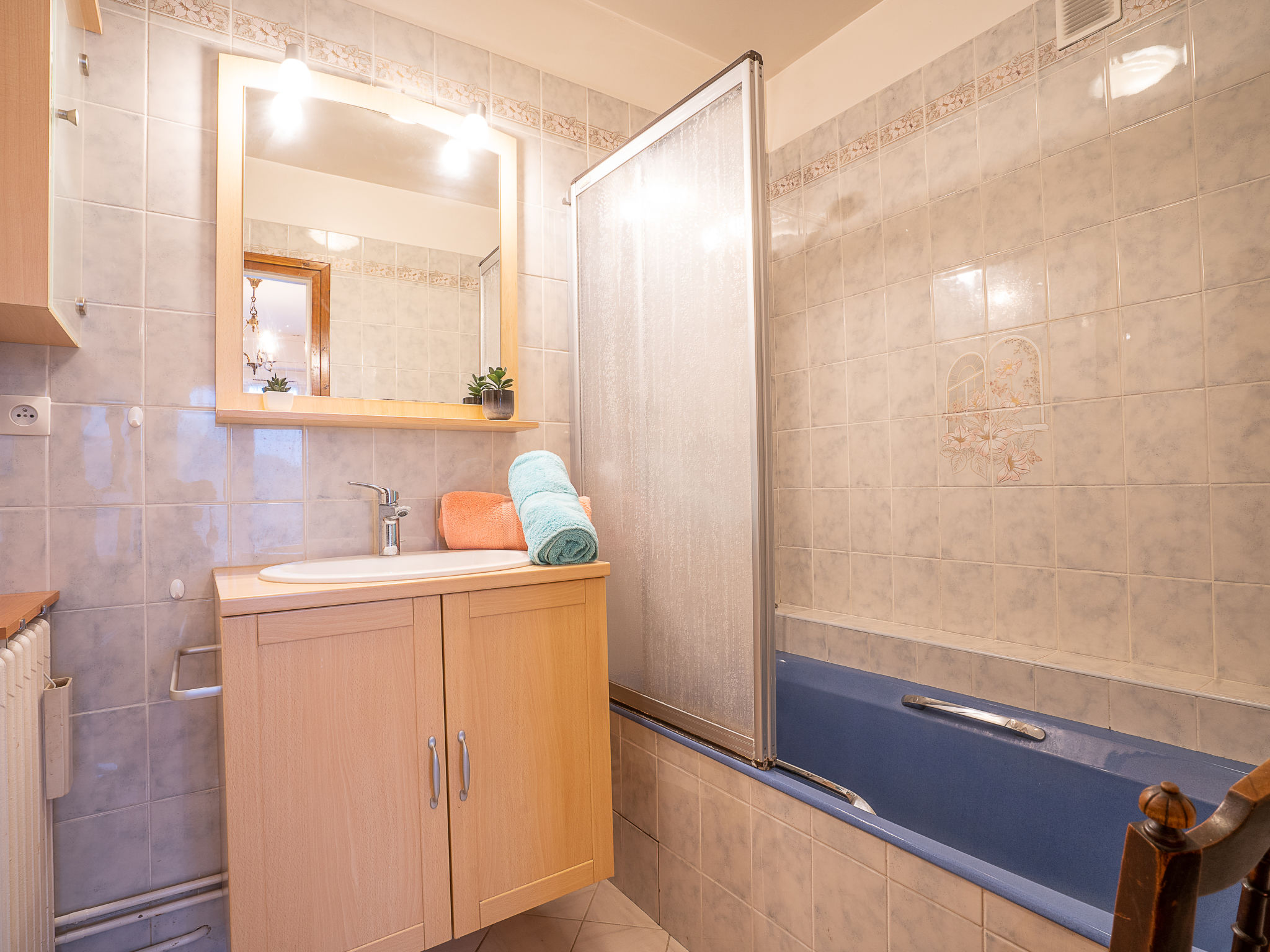 2-Zimmer-Wohnung 48 m2 im 3. Stock. Wohn-/Esszimmer mit 1 Doppeldiwanbett (1 x 140 cm, Länge 190 cm), TV (Flachbildschirm). Ausgang zum Balkon. 1 Zimmer mit 1 franz. Bett (1 x 140 cm, Länge 190 cm). Ausgang zum Balkon. Küche (4 Kochplatten, Backofen, Geschirrspüler, Mikrowelle, elektrische Kaffeemaschine). Bad, sep. WC. G-Heizung. Kleiner Balkon 15 m2. Balkonmöbel. Zur Verfügung: Waschmaschine. Internet (Wireless LAN, extra). Bitte beachten: Wohnung auf Strassenseite. Nichtraucher-Unterkunft. 1 Haustier/Hund erlaubt. Rauchmelder, kein Fahrstuhl. Die Balkonmöbel bestehen aus einem kleinen Tisch und 2 Stühlen. Inserat einer Privatperson nach Artikel 155, IV, CGI. 35288001496FC