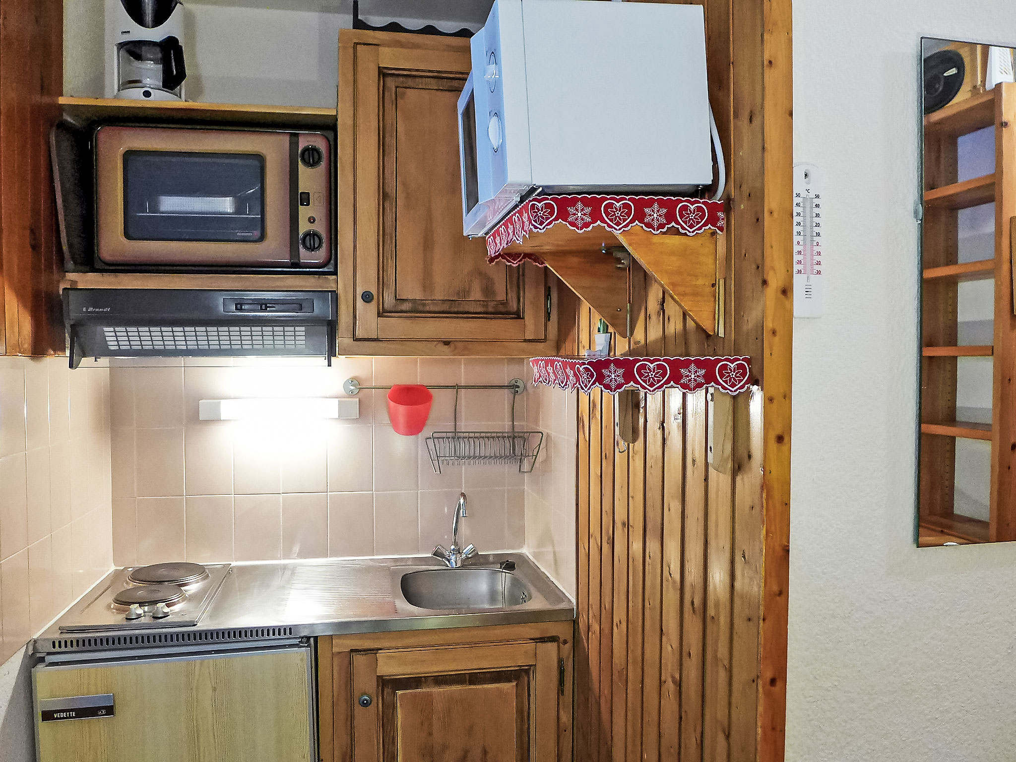 1-Zimmer-Wohnung 21 m2, im Erdgeschoss. Einfach eingerichtet: Wohn-/Esszimmer mit 1 Diwanbett und 1 x 2 Etagenbetten, TV. Ausgang zum Balkon. Kochnische (2 Kochplatten, Backofen, Wasserkocher, Mikrowelle, elektrische Kaffeemaschine). Bad/WC. E-Heizung. Balkon 4 m2, Südlage. Schöne Sicht auf die Berge. Zur Verfügung: Internet (Wireless LAN, extra). Höhe 185 cm. Bitte beachten: TV nur FR. Rauchmelder. Inserat einer Privatperson nach Artikel 155, IV, CGI.