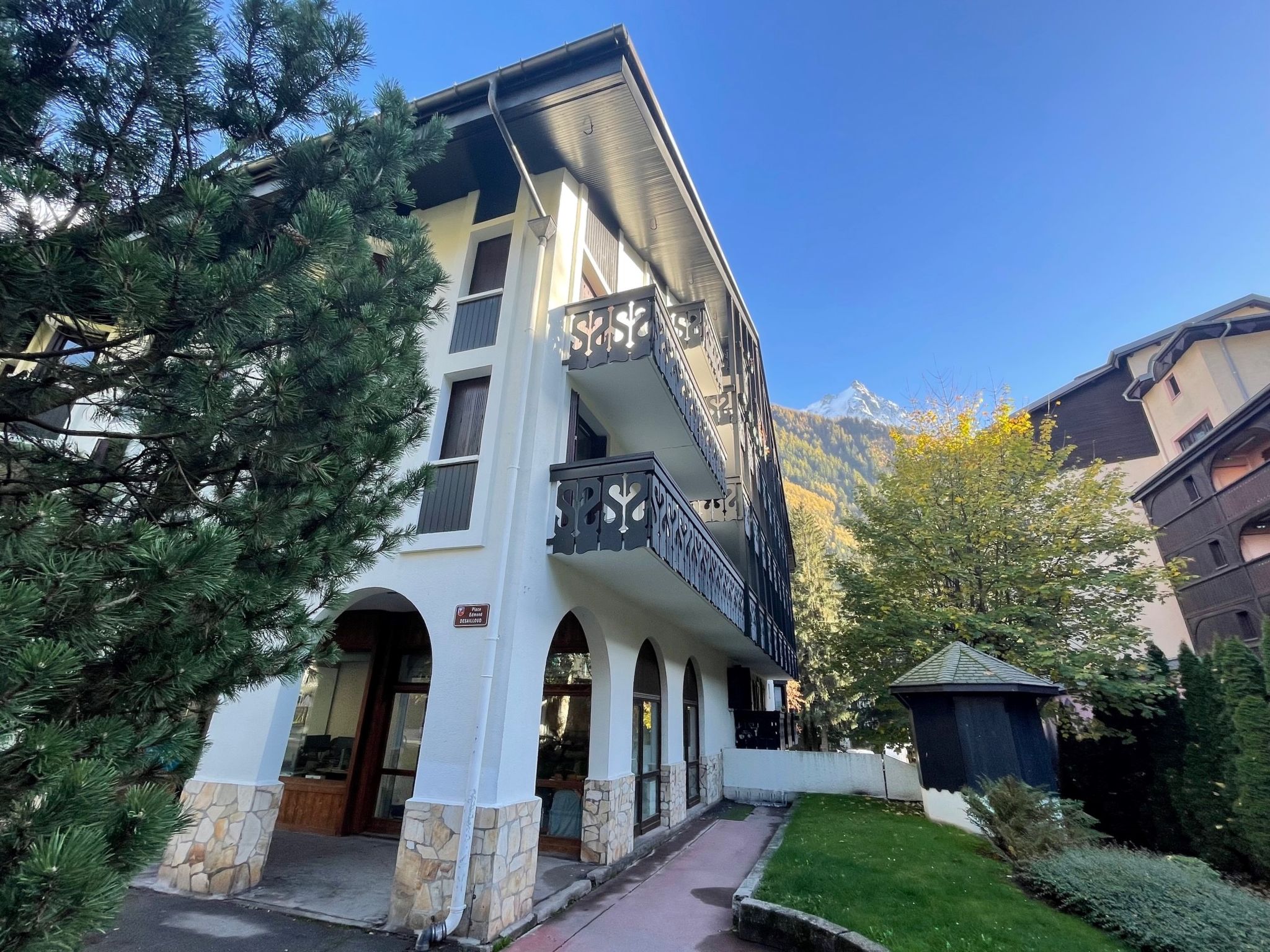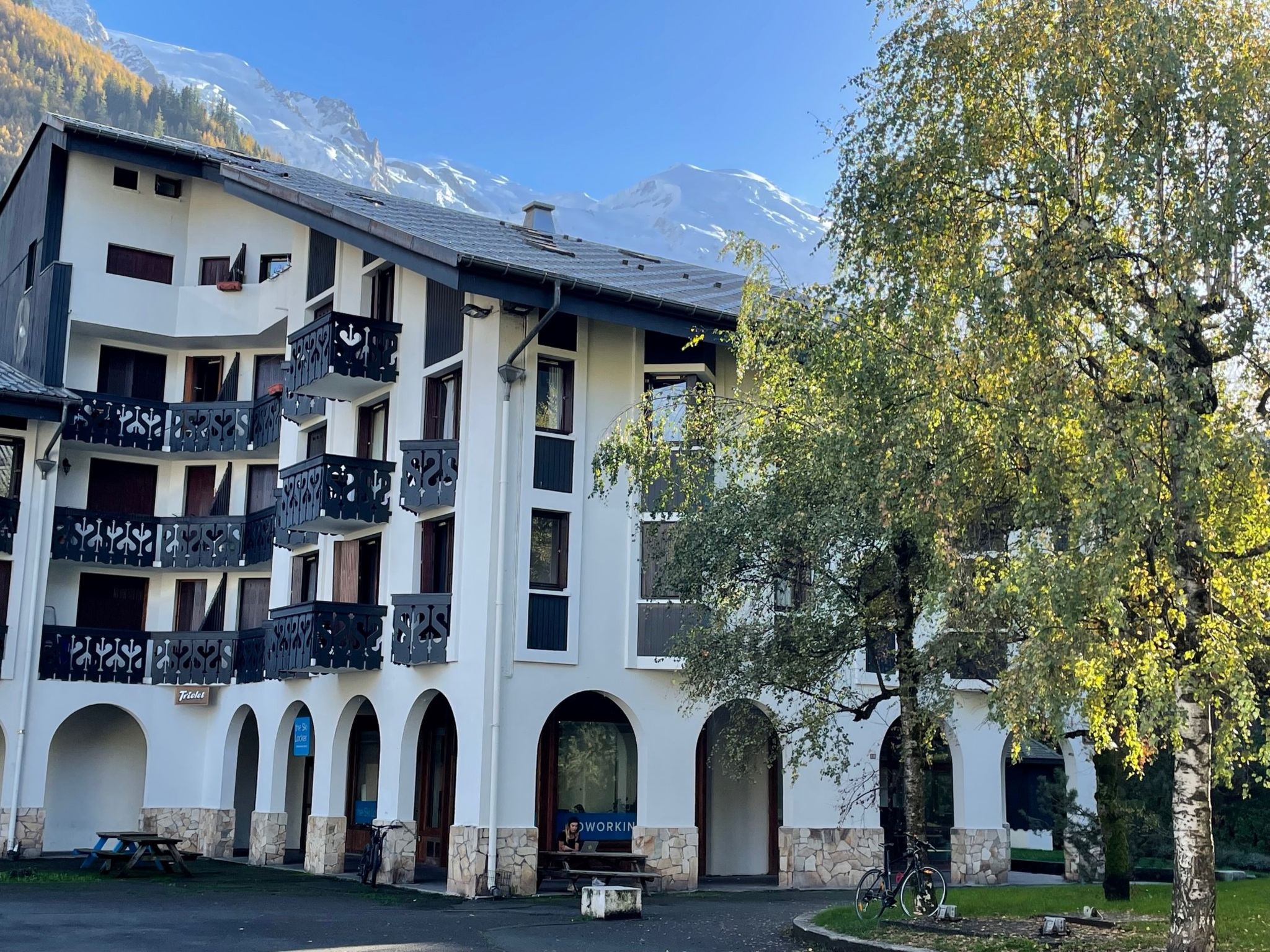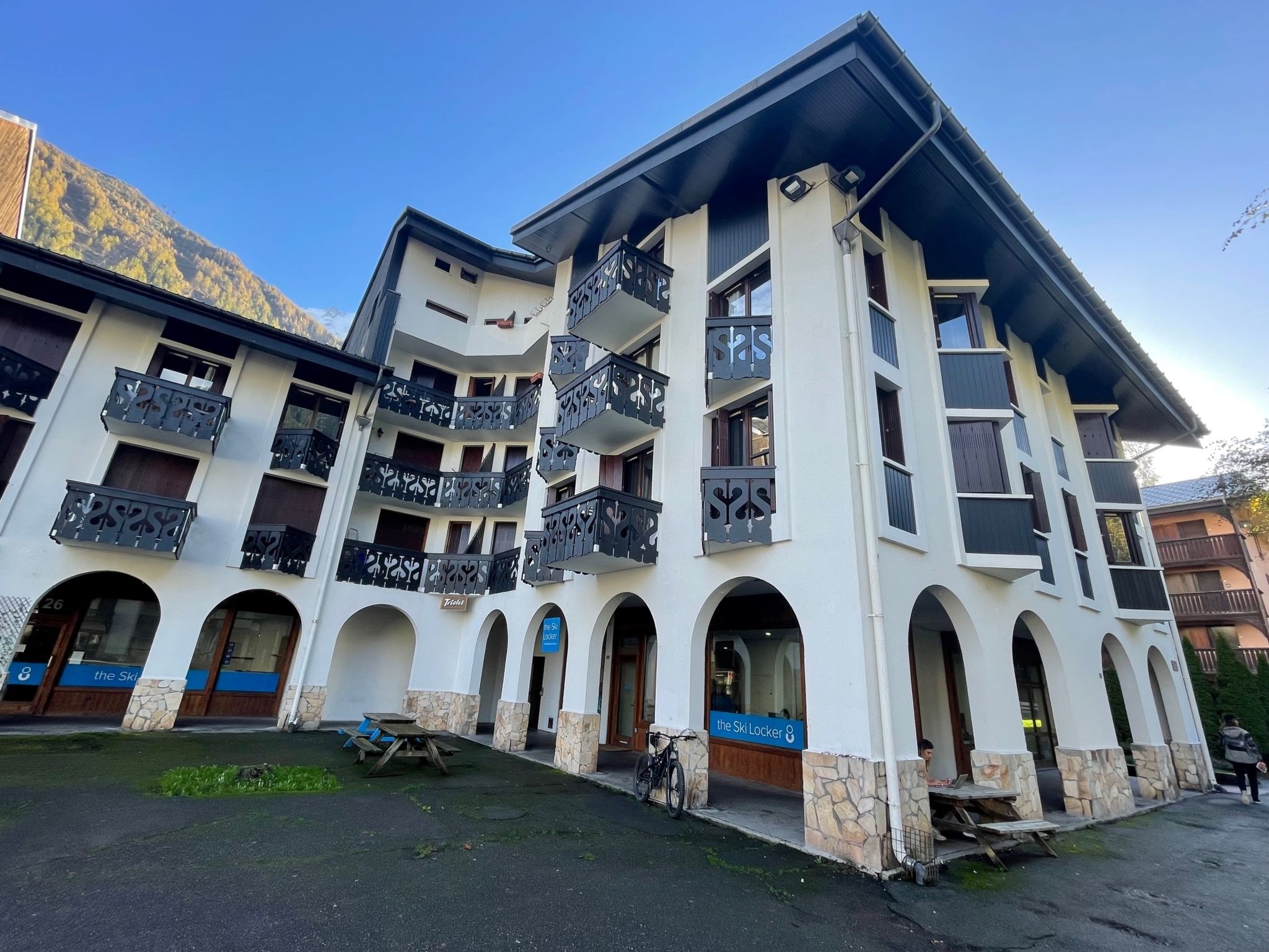 Residenz "Le Triolet", auf 4 Stockwerken. Im Ortsteil Chamonix Sud, 500 m vom Zentrum, belebte Lage. In der Anlage: Fahrstuhl. Einkaufsgeschäft, Supermarkt 50 m, Einkaufszentrum 600 m, Restaurant, Bar 50 m, Bushaltestelle 150 m, Bahnstation 800 m. Golfplatz (18 Loch) 4.4 km, Sportzentrum 1 km, Skisportanlagen 1 km, Langlaufloipe 1 km. Bitte beachten: Gratis Skibus. Nacht Club/Disco in der Nähe.