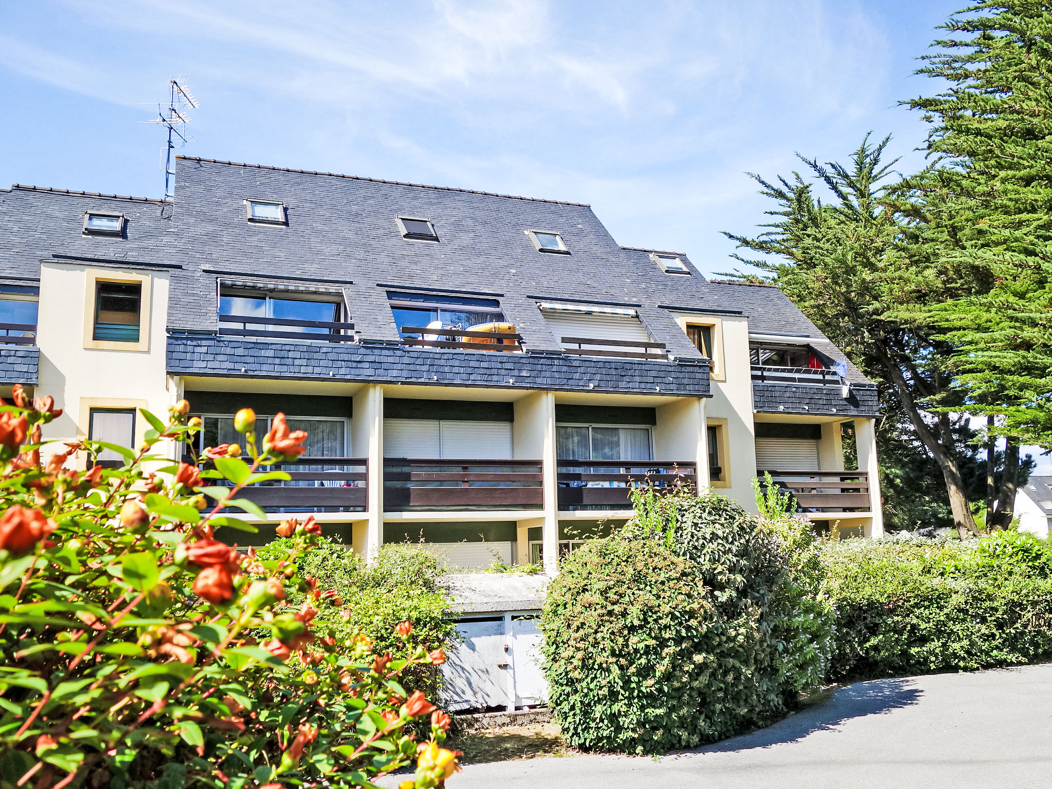 Residenz "Plein Soleil". Im Ort, 1.9 km vom Zentrum von Carnac, 250 m vom Meer, 250 m vom Strand. Einkaufsgeschäft 1.9 km, Lebensmittelgeschäft 1.9 km, Supermarkt 500 m, Bahnstation "Vannes" 30 km, Sandstrand 250 m. Nahe gelegene Sehenswürdigkeiten: Alignements de Carnac 13 km, Auray 13 km, Presqu'île de Quiberon 25 km, Vannes 30 km, Lorient 50 km. Objekt geeignet für 2 Erwachsene + 1 Kind.