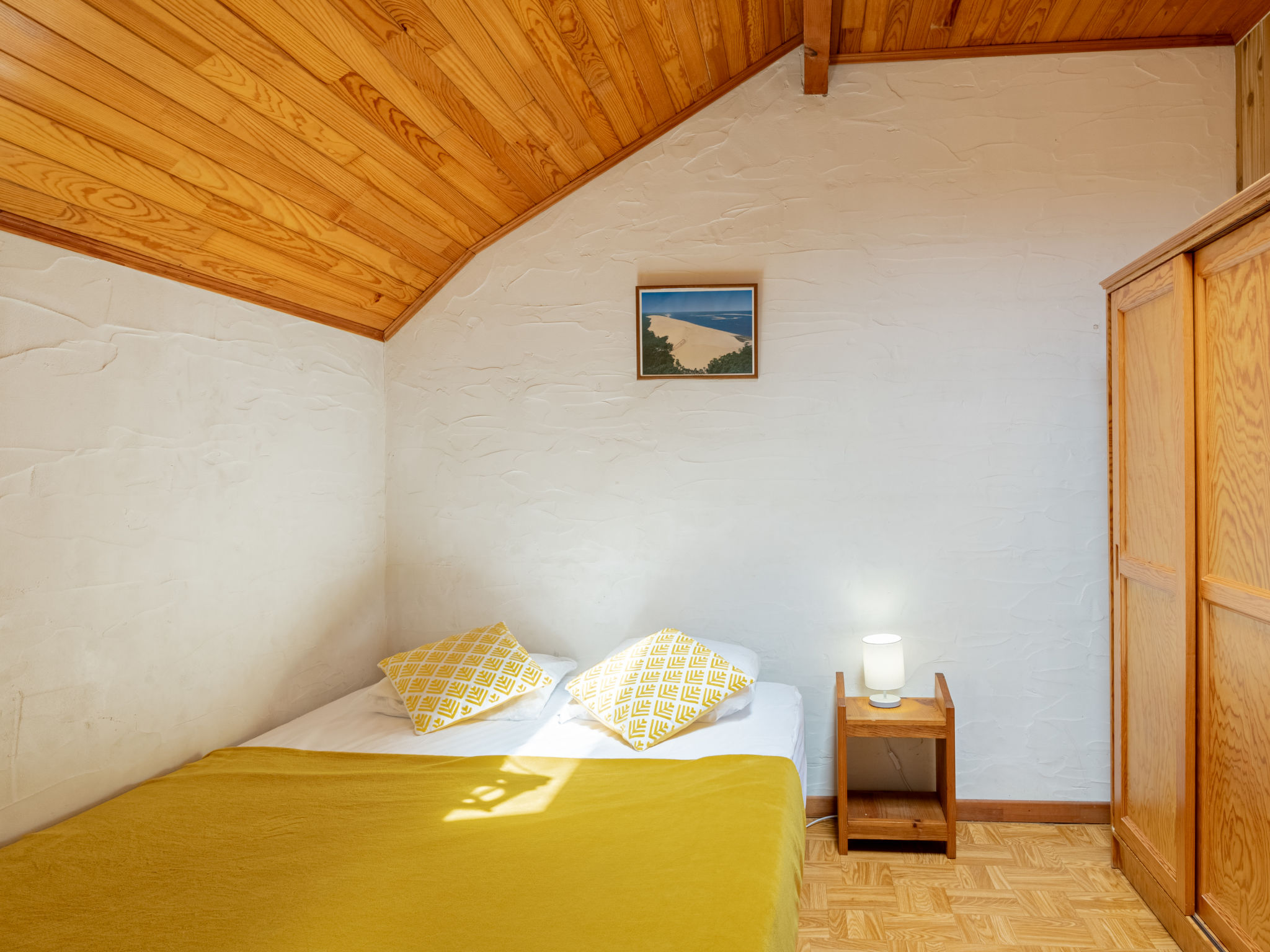 3-Zimmer-Reihenhaus 50 m2 auf 2 Stockwerken. Wohn-/Esszimmer mit 1 Bett (90 cm, Länge 190 cm), 2 franz. Betten (2 x 140 cm, Länge 190 cm), TV und Internationale TV-Sender (Flachbildschirm). Ausgang zur Terrasse. Kochnische (4 Kochplatten, Mini-Backofen, Mikrowelle). Dusche, sep. WC. Obergeschoss: 1 abgeschrägtes Zimmer mit 1 franz. Bett. 1 abgeschrägtes Zimmer mit 1 Bett und 1 franz. Bett. Terrasse. Terrassenmöbel, Liegestühle (1). Zur Verfügung: Internet (Wireless LAN, gratis). Bitte beachten: Maximal 1 Haustier/Hund erlaubt. Rauchmelder. Inserat einer Privatperson nach Artikel 155, IV, CGI.
