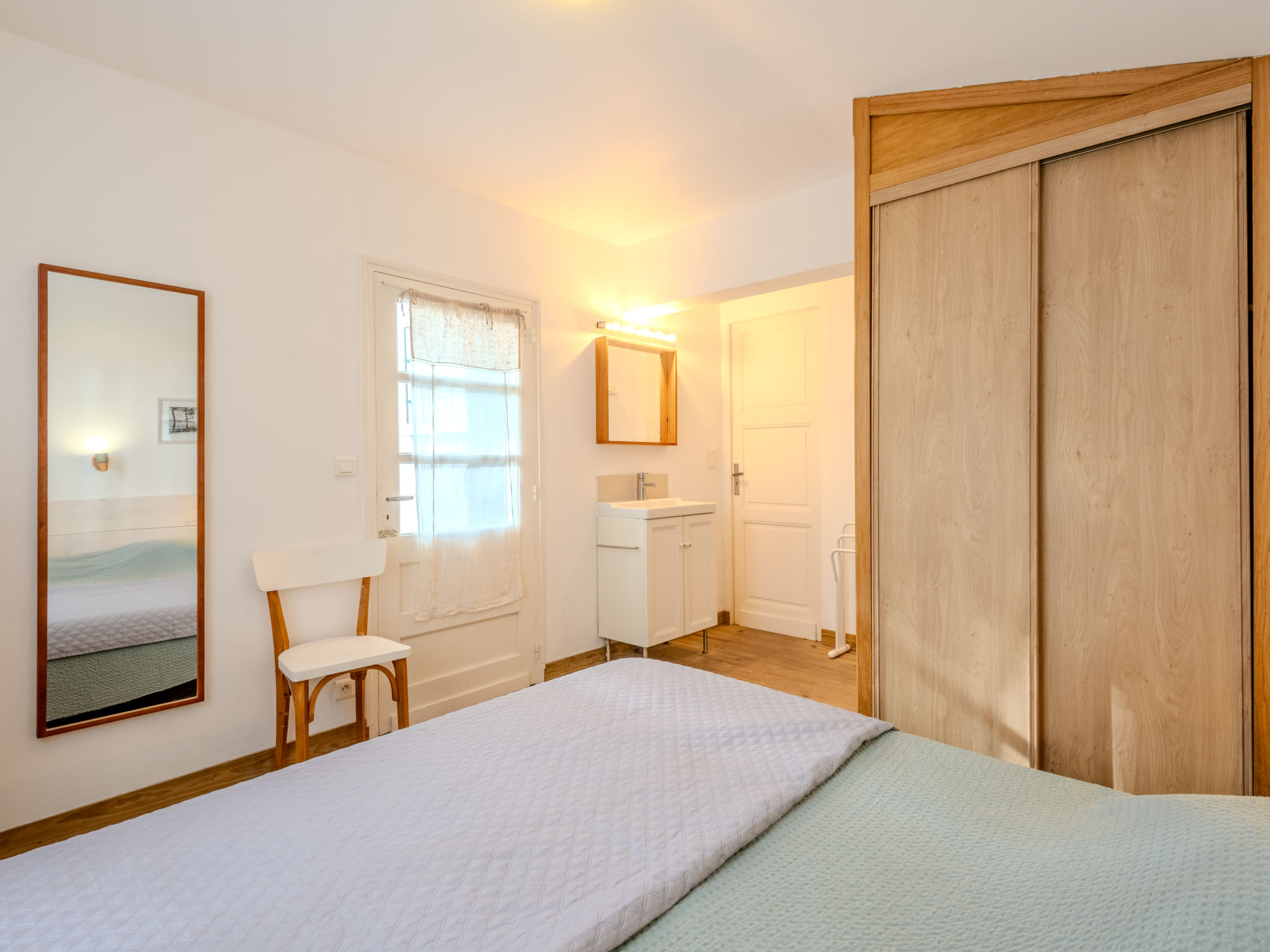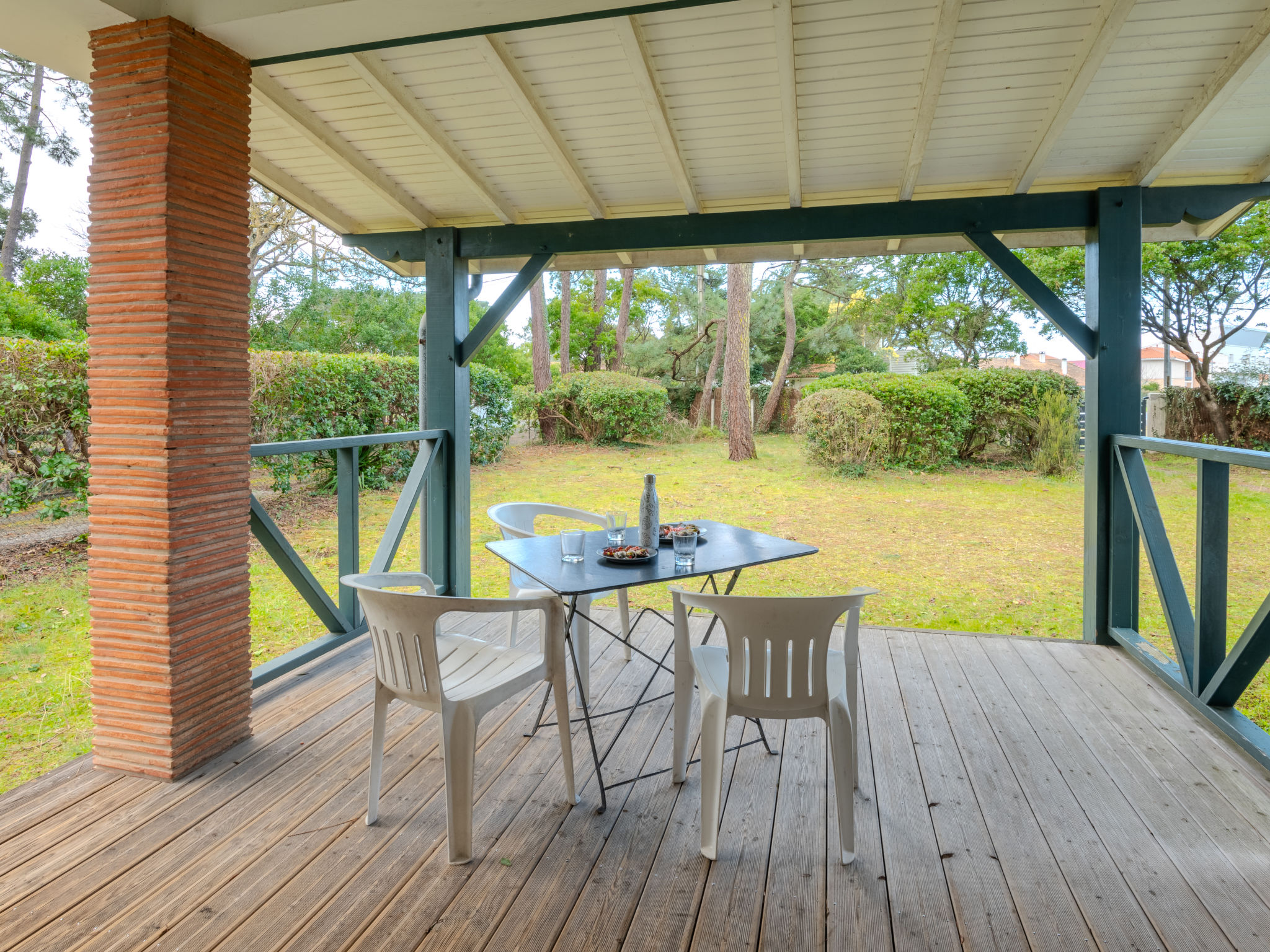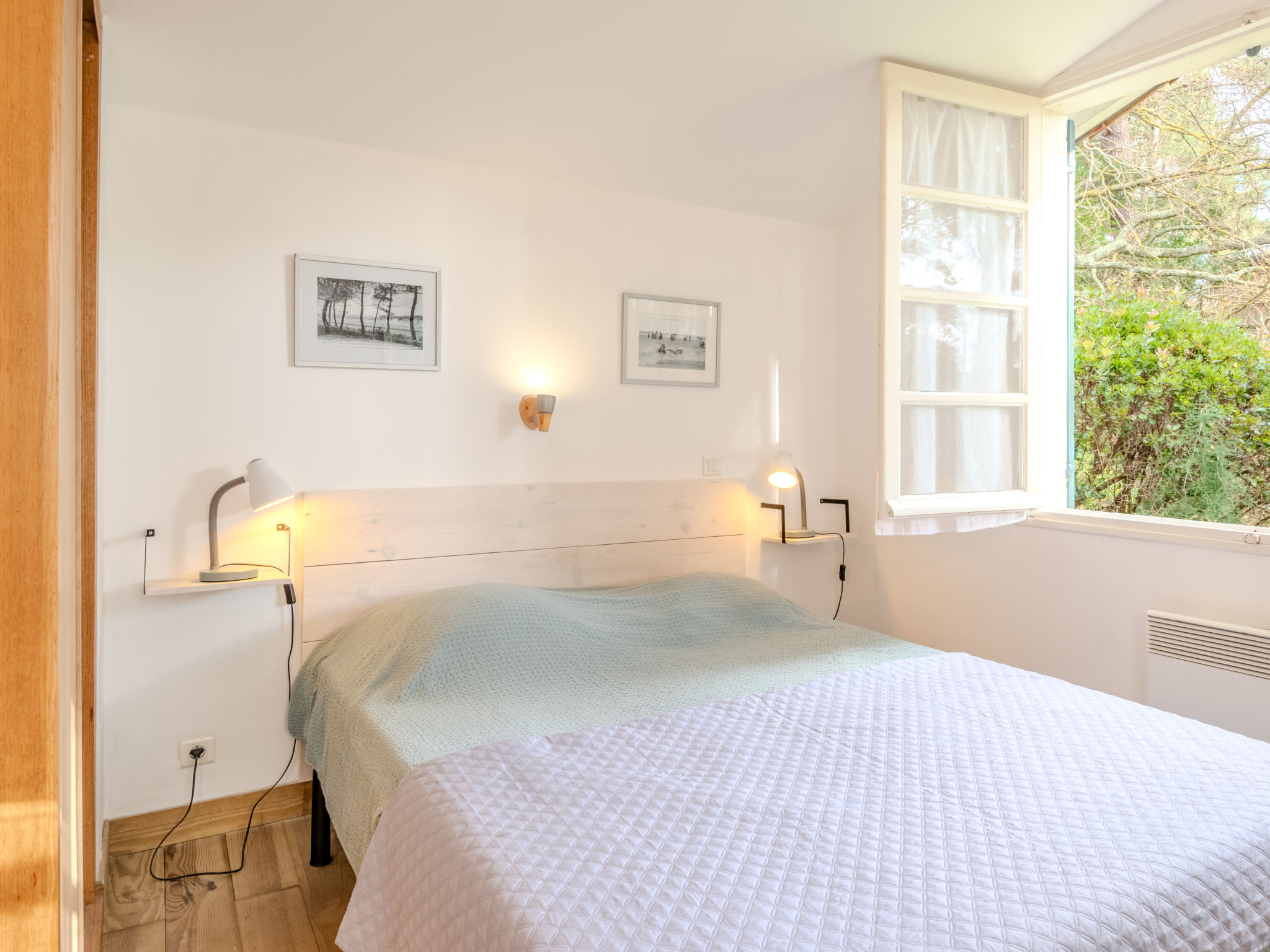 Einfamilienhaus "Les Bruyères". Im Ort, 1.2 km vom Zentrum von Mimizan-Plage, 1.1 km vom Meer, 1.1 km vom Strand, 100 m vom Fluss. Zur Alleinbenutzung: naturbelassenes Grundstück 1'300 m2 (eingezäunt) mit Bäumen, Parkplatz auf dem Grundstück. Supermarkt 1.2 km, Bahnstation "Labouheyre" 30 km, Sandstrand 1.1 km, Park "Landes Aventure" 6 km, Hallenbad 6 km, Badesee "Aureilhan" 10 km. Golfplatz (9 Loch) 6 km, Surfschule 1.1 km. Nahe gelegene Sehenswürdigkeiten: Arcachon 70 km, Bordeaux 120 km, Biscarosse 40 km, Centre Nautique 7 km, Casino Mimizan Plage. Wandergebiete: Parc naturel régional des Landes.