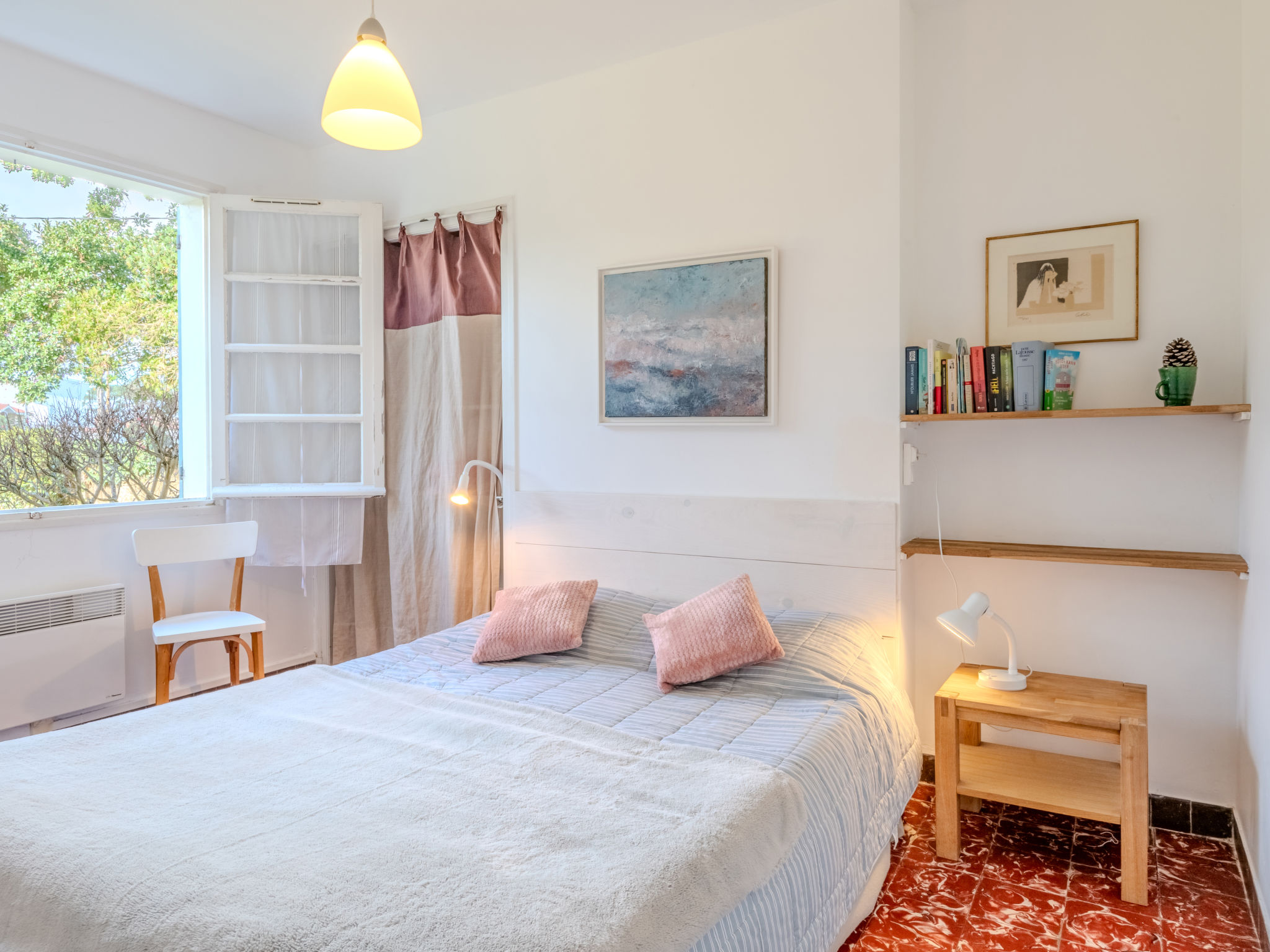 5-Zimmer-Haus 100 m2. Schön eingerichtet: Wohnzimmer mit Sat-TV und Internationale TV-Sender (Flachbildschirm), Stereoanlage und DVD. Ausgang zur Terrasse. Esszimmer. Ausgang zur Terrasse. 1 Zimmer mit 1 franz. Bett (160 cm). 1 Zimmer mit 1 franz. Bett (160 cm), Dusche. Ausgang zur Terrasse. 1 Zimmer mit 2 Betten (90 cm, Länge 190 cm). Küche (4 Kochplatten, Backofen, Geschirrspüler, Mikrowelle). Ausgang zur Terrasse. Dusche/WC, sep. WC. E-Heizung. Terrasse überdacht Terrasse. Terrassenmöbel, Liegestühle (4). Zur Verfügung: Waschmaschine. Internet (Wireless LAN, extra). Bitte beachten: Maximal 1 Haustier/Hund erlaubt. Rauchmelder. Inserat einer Privatperson nach Artikel 155, IV, CGI.