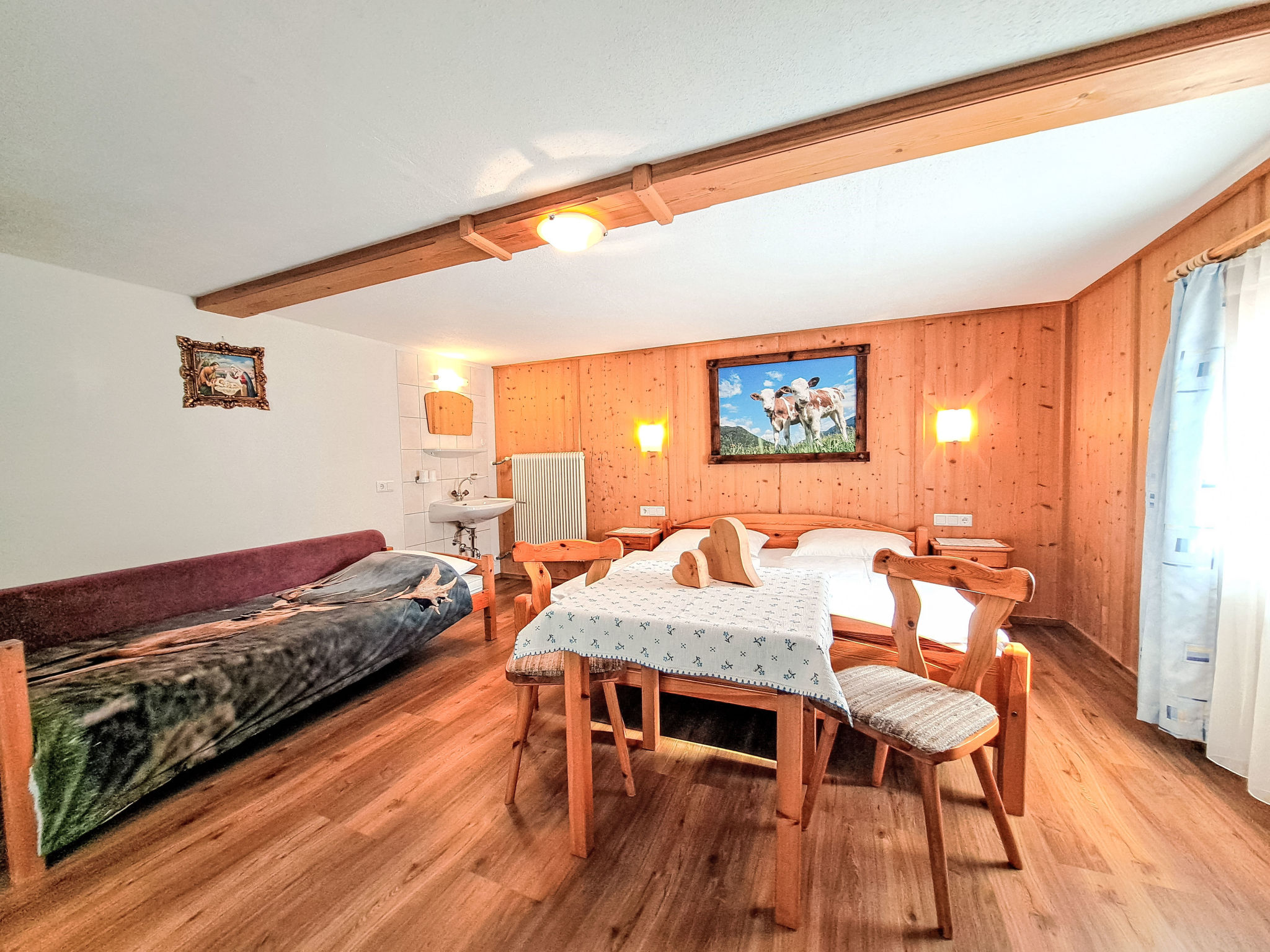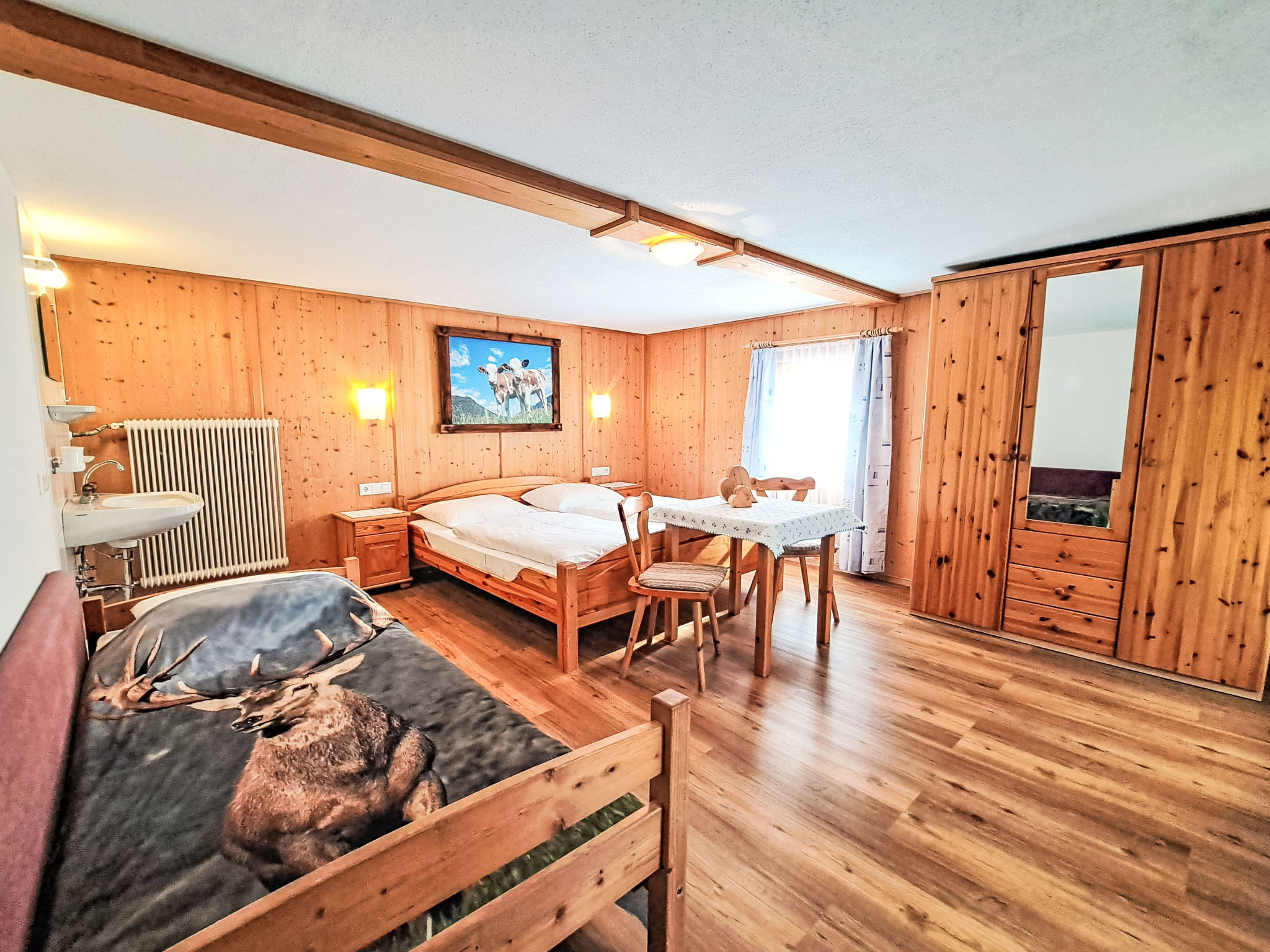 Der KIRMERHOF, ein ca. 200 Jahre alter Bauernhof, steht auf ca. 900 m Höhe im Ortsteil Hainzenberg. Herrliche Aussichtslage mit Blick ins Zillertal und auf die Berge. Wanderwege ab Haus, Restaurant, Gerlossteinbahn, öffentlicher Kinderspielplatz, Fußballplatz, Kneippanlage ca. 200 m. Zell 4 km. Schönes Grundstück mit Bäumen und Wiesen. 4 Parkplätze auf dem Grundstück. Der Besitzer wohnt im Haus. Zur Wohnung gehört ein eigener Gartenanteil mit Rasenfläche (ca. 100 m²), Freisitz, Grillplatz und 6 Liegestühlen. Überdachter Balkon. Die zum Treppenaufgang offene Wohnung ist gemütlich und feriengerecht eingerichtet. In den Schlafzimmern holzvertäfelte Wände. Die Küche wurde 2015 renoviert. Fliesen-, Laminat-, Holzdielen- und Teppichböden. Sat-TV, DVD, CD. Internetzugang (WLAN, inklusive). Heizung. Hinweise: Der Vermieter akzeptiert keine Jugendgruppen. Rauchen ist in der Wohnung nicht gestattet. Winter-Infos: Talstation der Gerlossteinbahn, Rodelbahn und Kinderlift ca. 200 m. Skibushaltestelle nach Zell ca. 200 m. Skischule mit Übungswiese am Hausberg. Im Haus Skiraum mit Skischuhtrockner.