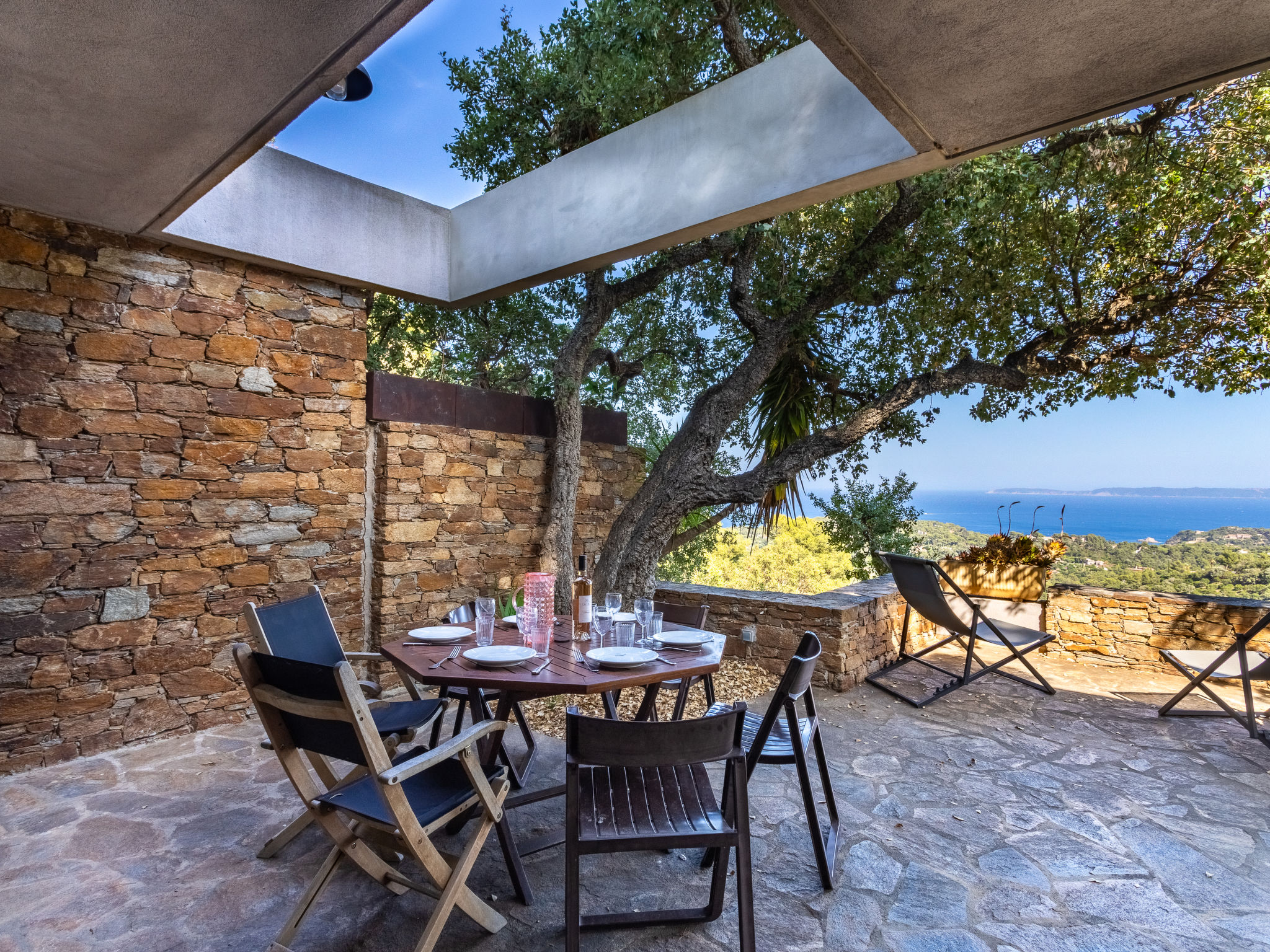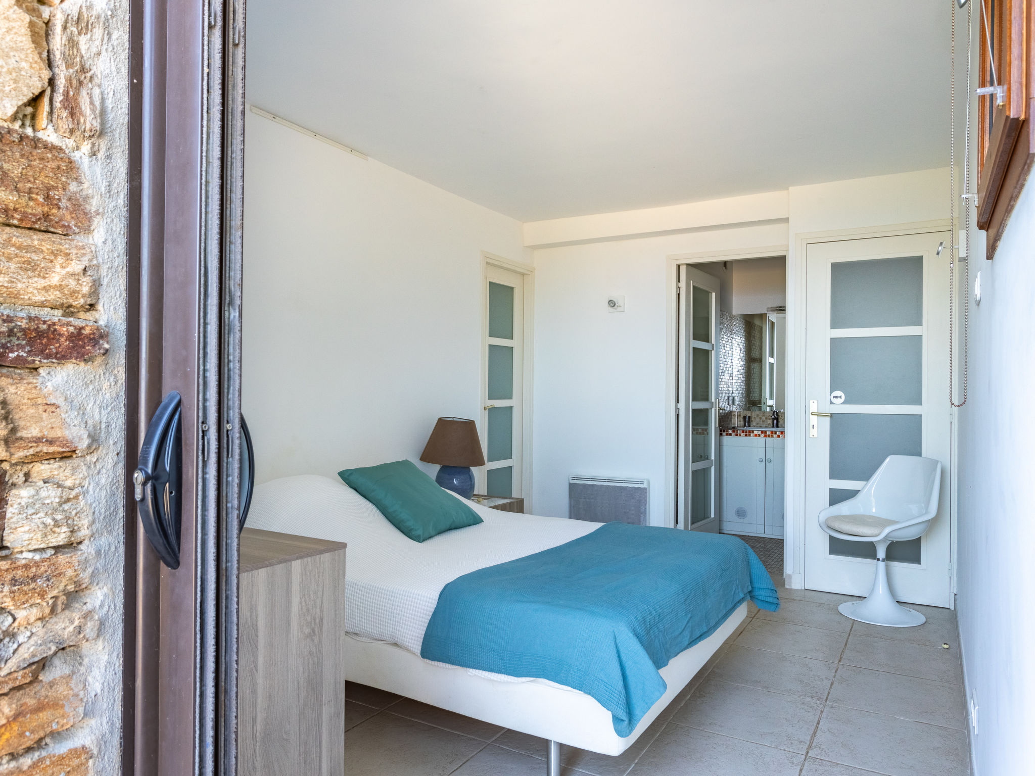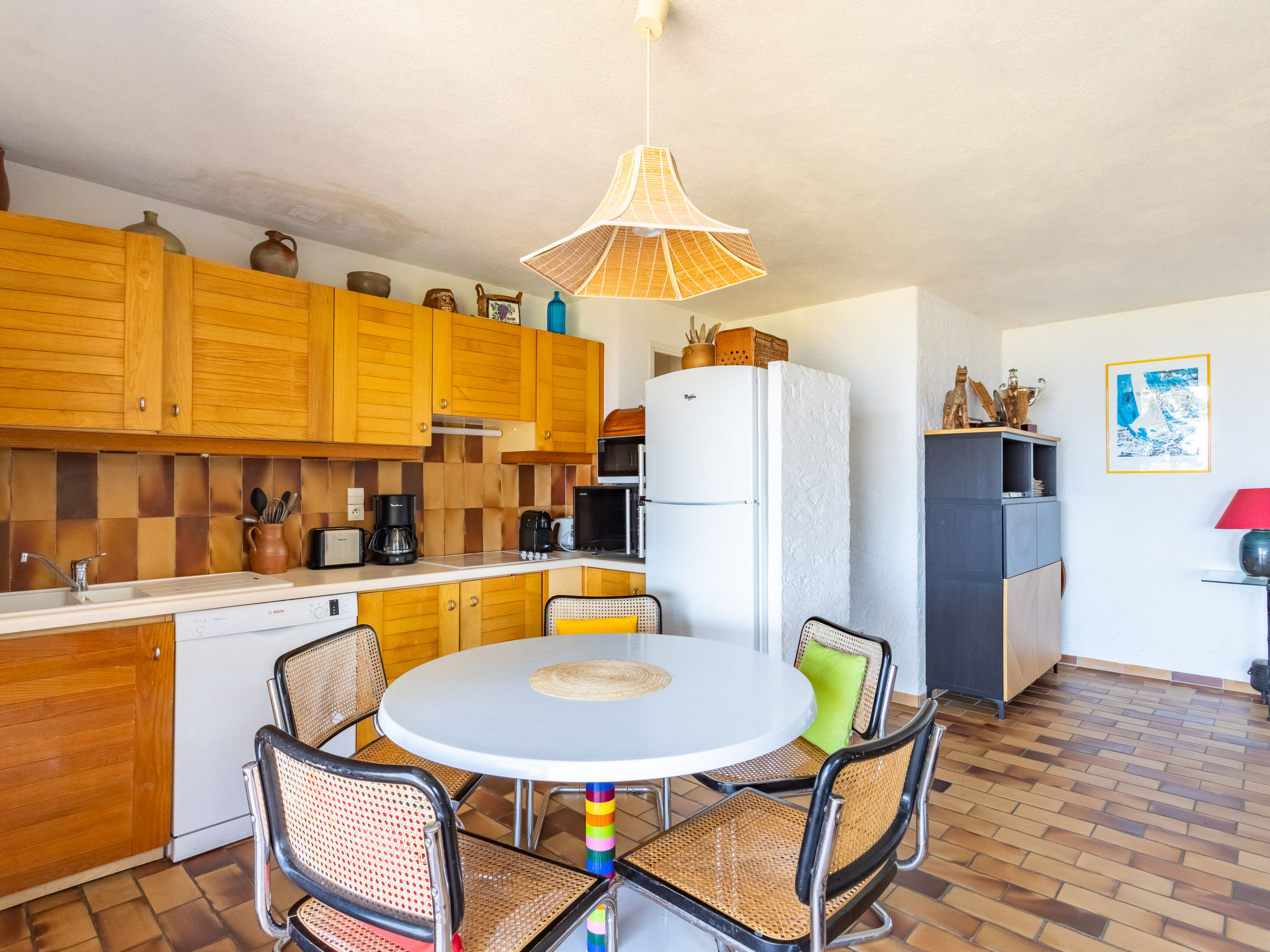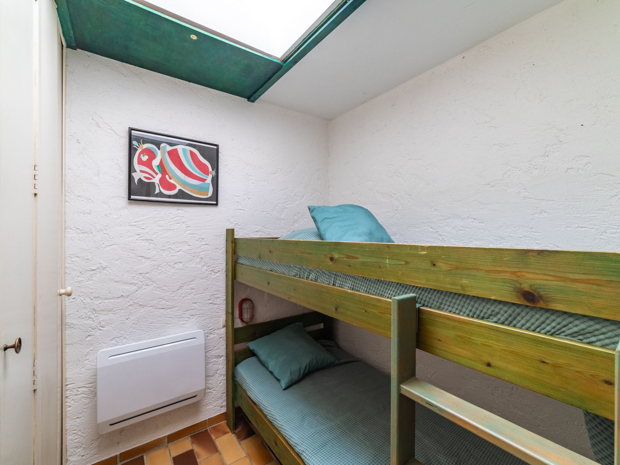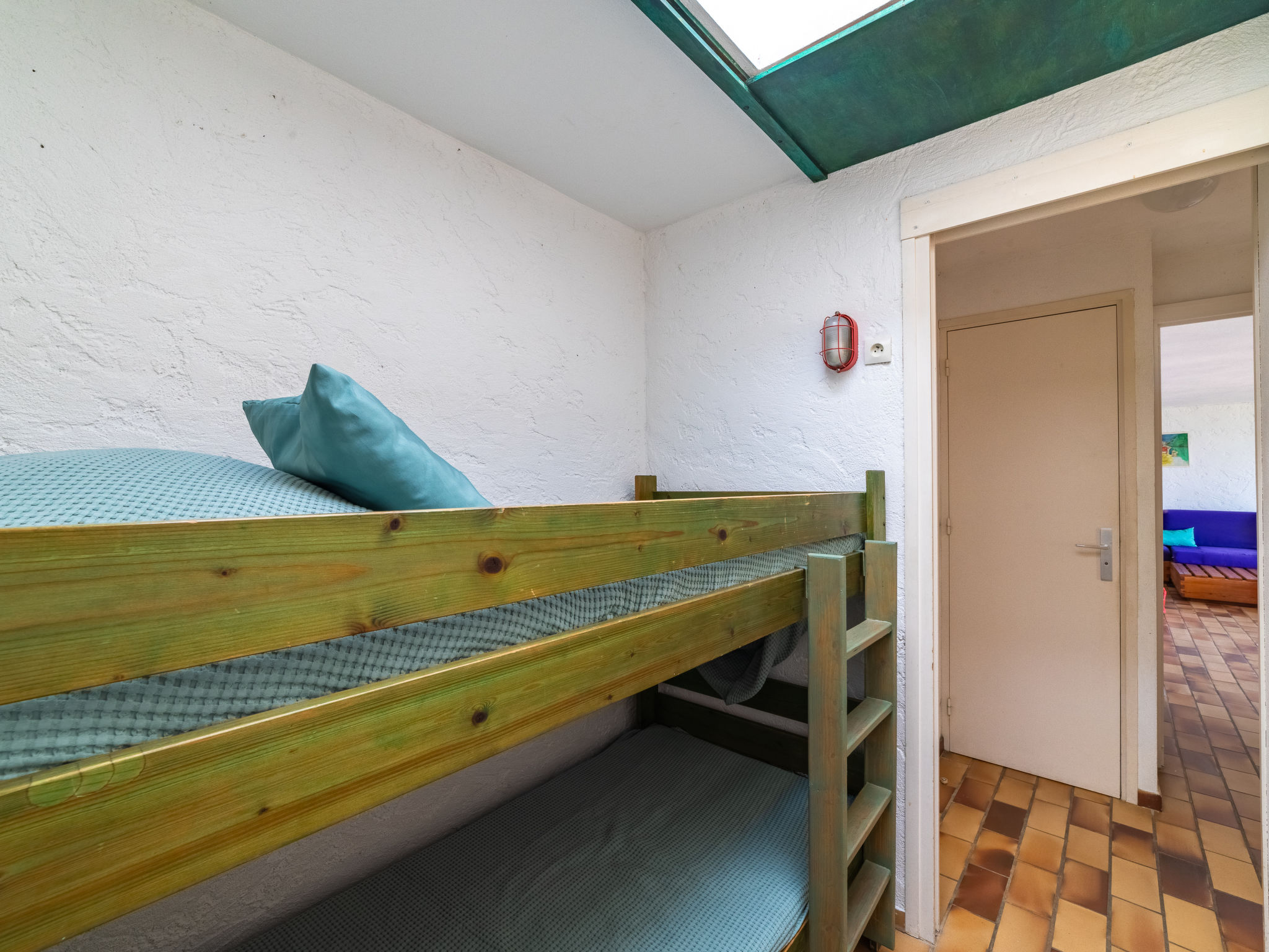 3-Zimmer-Reihenhaus 70 m2 auf 2 Stockwerken. Objekt geeignet für 4 Erwachsene + 2 Kinder. Einfach und zweckmässig eingerichtet: Wohn-/Esszimmer mit TV. Ausgang zur Terrasse. 1 Zimmer mit 1 franz. Bett (140 cm, Länge 190 cm). Ausgang zur Terrasse. Kleine Kabine 3 m2 mit Dachfenster mit 1 x 2 Etagenbetten (80 cm, Länge 190 cm). Offene Küche (Backofen, Geschirrspüler, 4 Induktionskochplatten, Toaster, Wasserkocher, Mikrowelle, Tiefkühler, elektrische Kaffeemaschine). Dusche, sep. WC. E-Heizung. Unteres Geschoss: (Aussentreppe) 1 Zimmer mit begehbarer Kleiderschrank mit 1 franz. Bett (140 cm, Länge 190 cm), Dusche/WC. Grosse Terrasse 20 m2, Südlage und Ostlage. Terrassenmöbel. Sicht auf das Meer. Zur Verfügung: Internet (Wireless LAN, extra). Bitte beachten: TV nur FR. Rauchmelder. Bei Einfahrt auf das Anwesen müssen dem Wächter EUR 10.00 für den Zutrittsausweis bezahlt werden. Inserat einer Privatperson nach Artikel 155, IV, CGI. 83019 000012 HY
