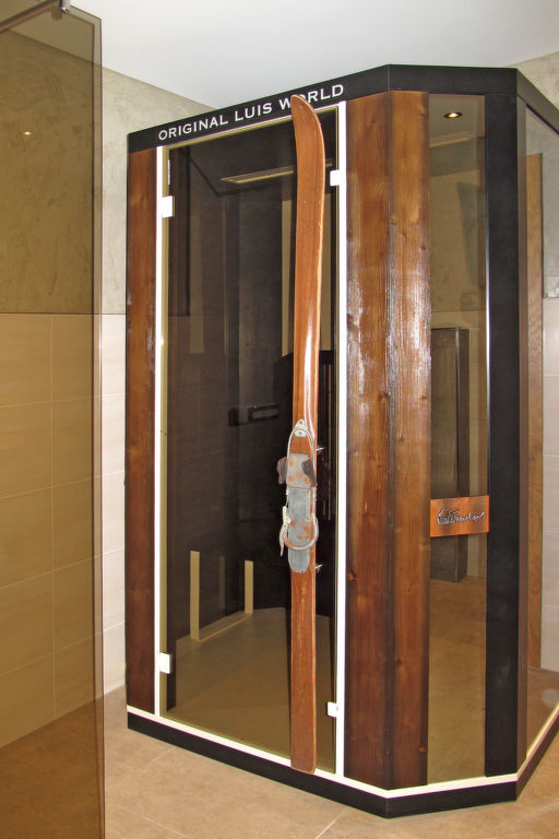 5-Zimmer-Wohnung, 1. Etage, ca. 180 m². Separater Zugang. Wohnraum mit Sitzgruppe, Essplatz und Küchenzeile (4 Ceranfelder, Backofen, Mikrowelle, Geschirrspüler, Kühl-/Gefrierkombination, Kaffeemaschine, Kaffeekapselmaschine, Wasserkocher, Toaster), Balkonausgang. Doppelzimmer. 3 Schlafzimmer jeweils mit Doppelbett und Einzelbett. Dusche/Doppelwaschbecken/WC. Dusche/WC mit Infrarotkabine für 2 Personen und Terrassenausgang. Sep.WC.Hinweis: Bei Buchung zum Preis für 8 Personen bleibt ein Schlafzimmer verschlossen. Bei Buchung zum Preis für 6 Personen bleiben zwei Schlafzimmer verschlossen. Bei Belegung mit weniger Personen als der maximalen Personenzahl stehen nicht alle Wohneinheiten zur Verfügung.