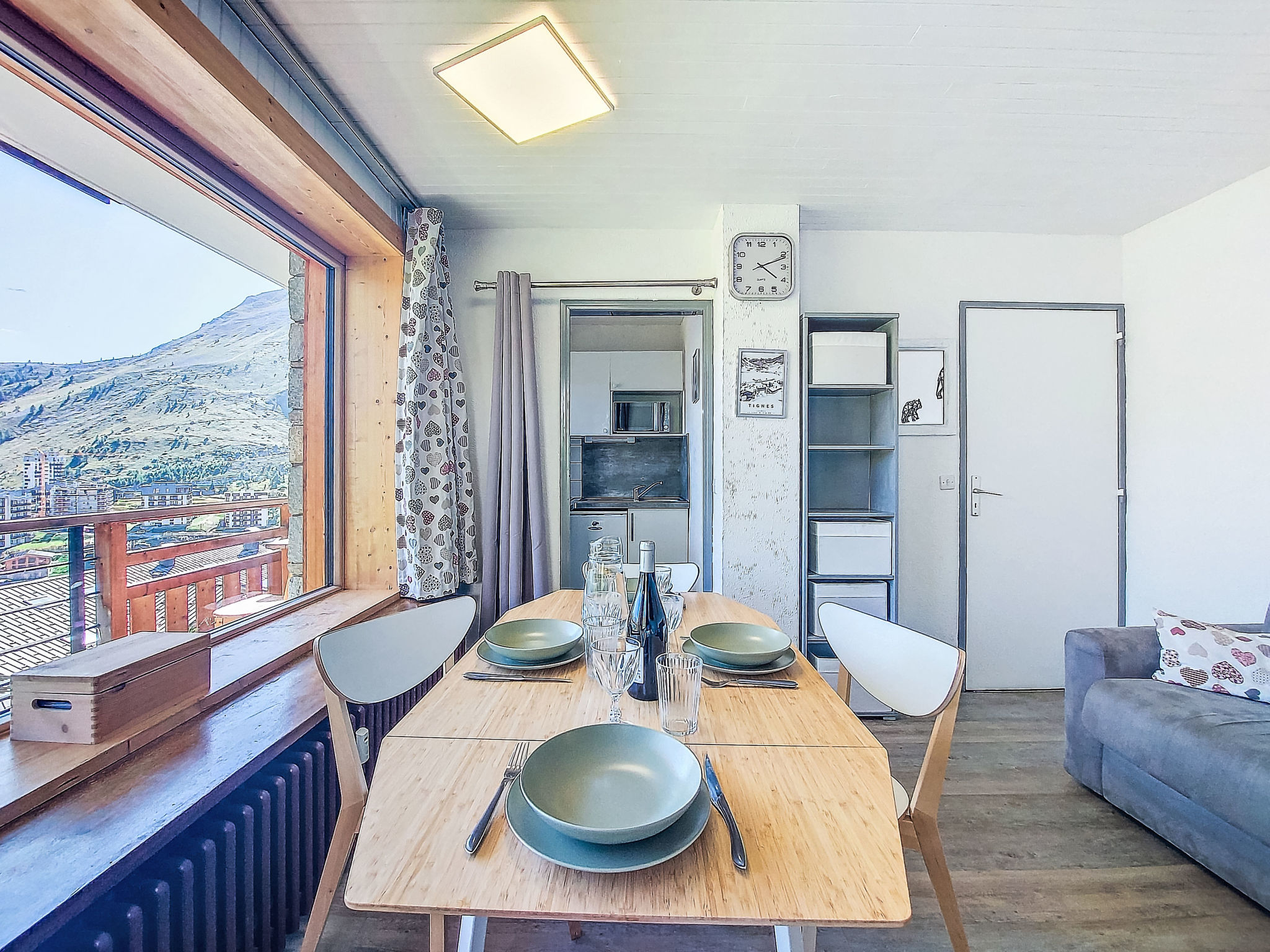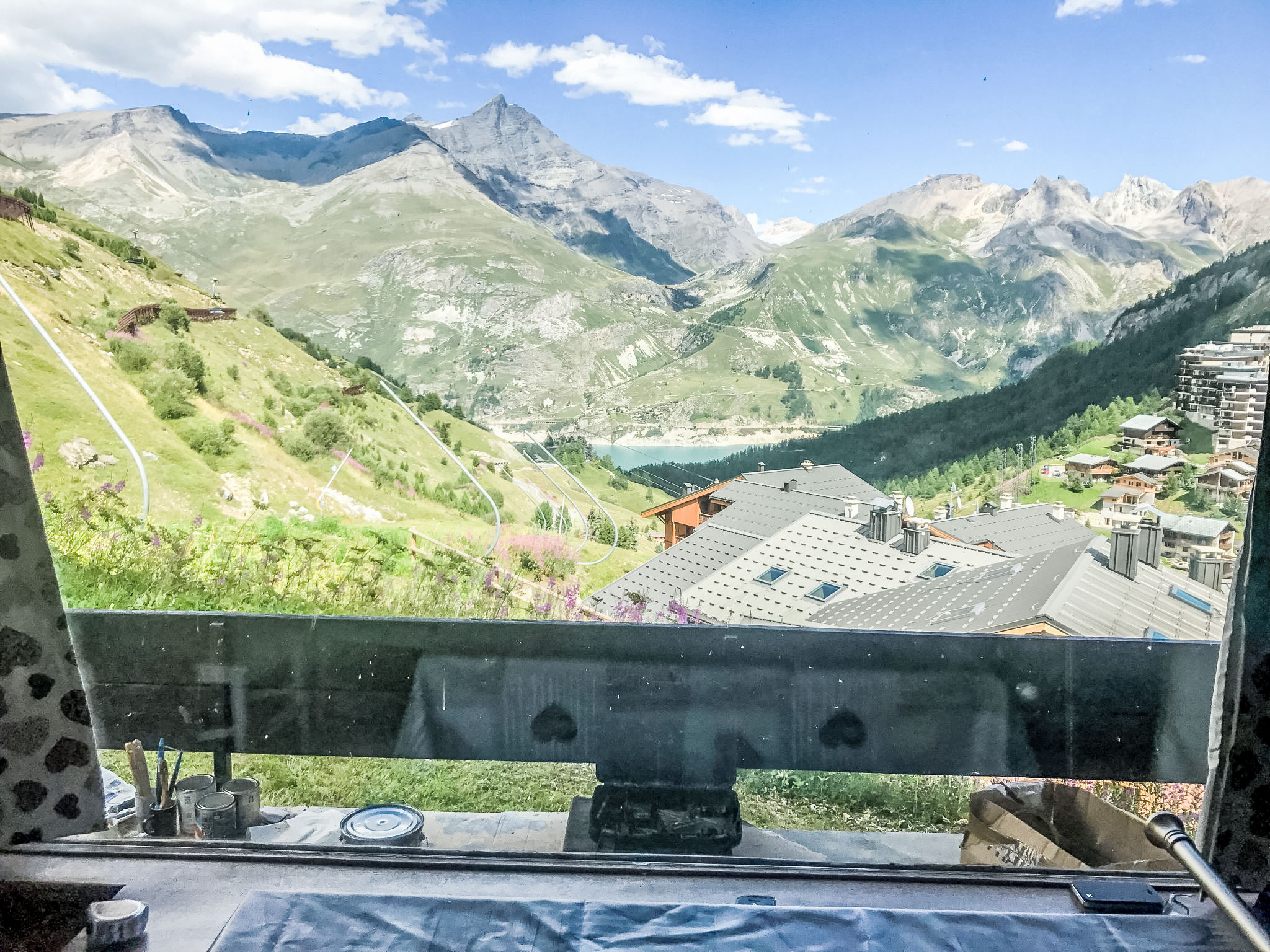 Le lac: Appartementhaus "Horizon 2000". Im Weiler Les Almes, ruhige, sonnige Lage, direkt am Skigebiet. Im Hause: Skiraum, Zentralheizung. Einkaufsgeschäft, Supermarkt, Restaurant 200 m, Bäckerei 600 m, Bushaltestelle 500 m, Freibad 600 m, See 600. Skiverleih 200 m, Skischule, Eisfeld 600 m. Nahe gelegene Sehenswürdigkeiten: Tignes Espace centre sportif 600 m, Lagon Piscine et Spa 600 m. Bekannte Skigebiete sind gut erreichbar: Espace Killy.