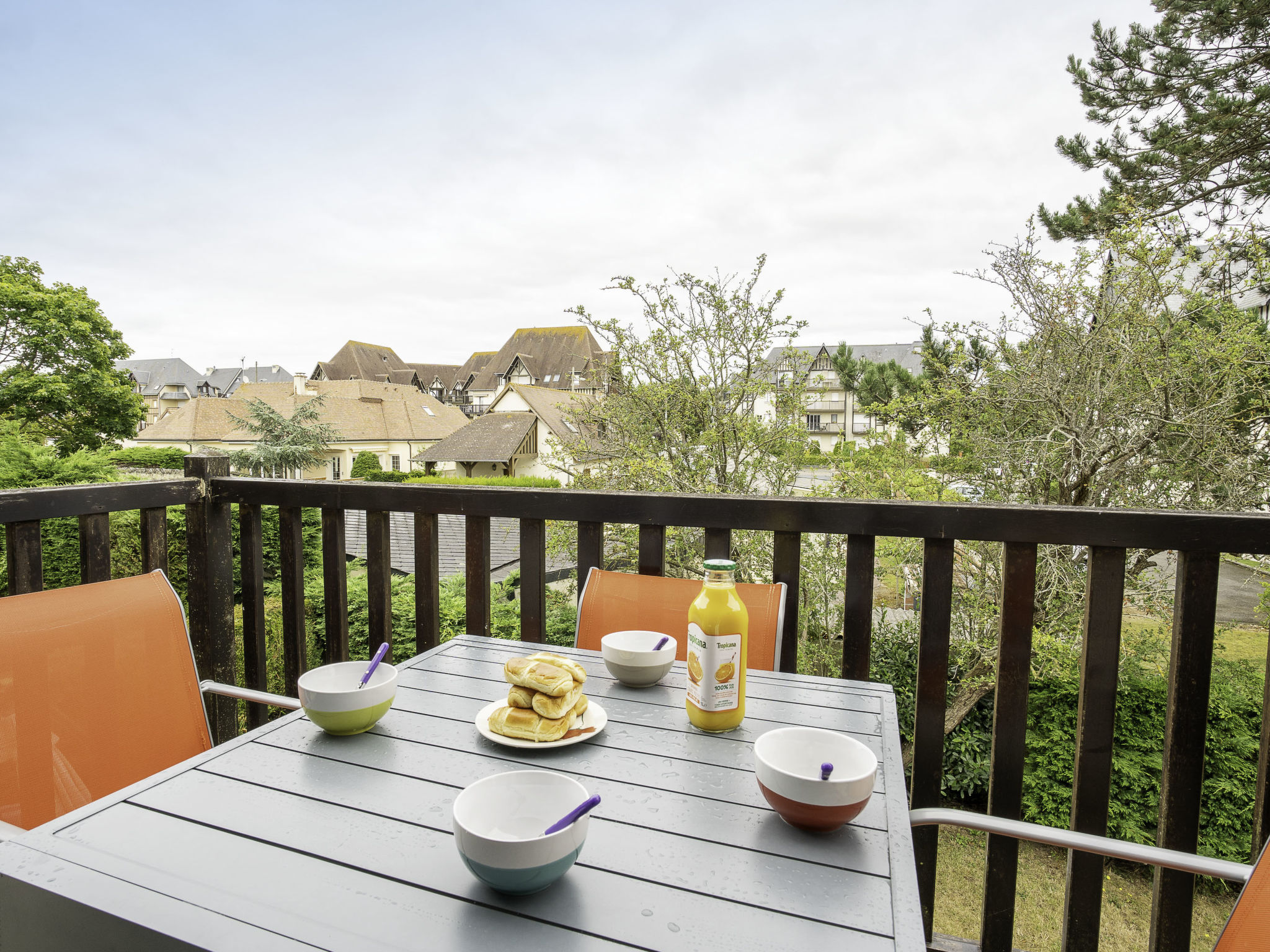 Residenz "Fleur Marine". Im Ort, 1 km vom Zentrum von Cabourg, 300 m vom Meer, 300 m vom Strand, direkter Zugang zum Strand. Parkplatz (beschränkte Anzahl). Einkaufsgeschäft 1 km, Supermarkt 900 m, Restaurant 1 km, Thermalbad"Thalassothérapie" 500 m. Golfplatz (9 Loch) 1.2 km, Sportzentrum 500 m. Bitte beachten: Das Foto ist nur ein Hausbeispiel. Bestehend aus 2-geschossigen Doppelhäusern und 3-geschossigen Gebäuden im normannischen Stil.