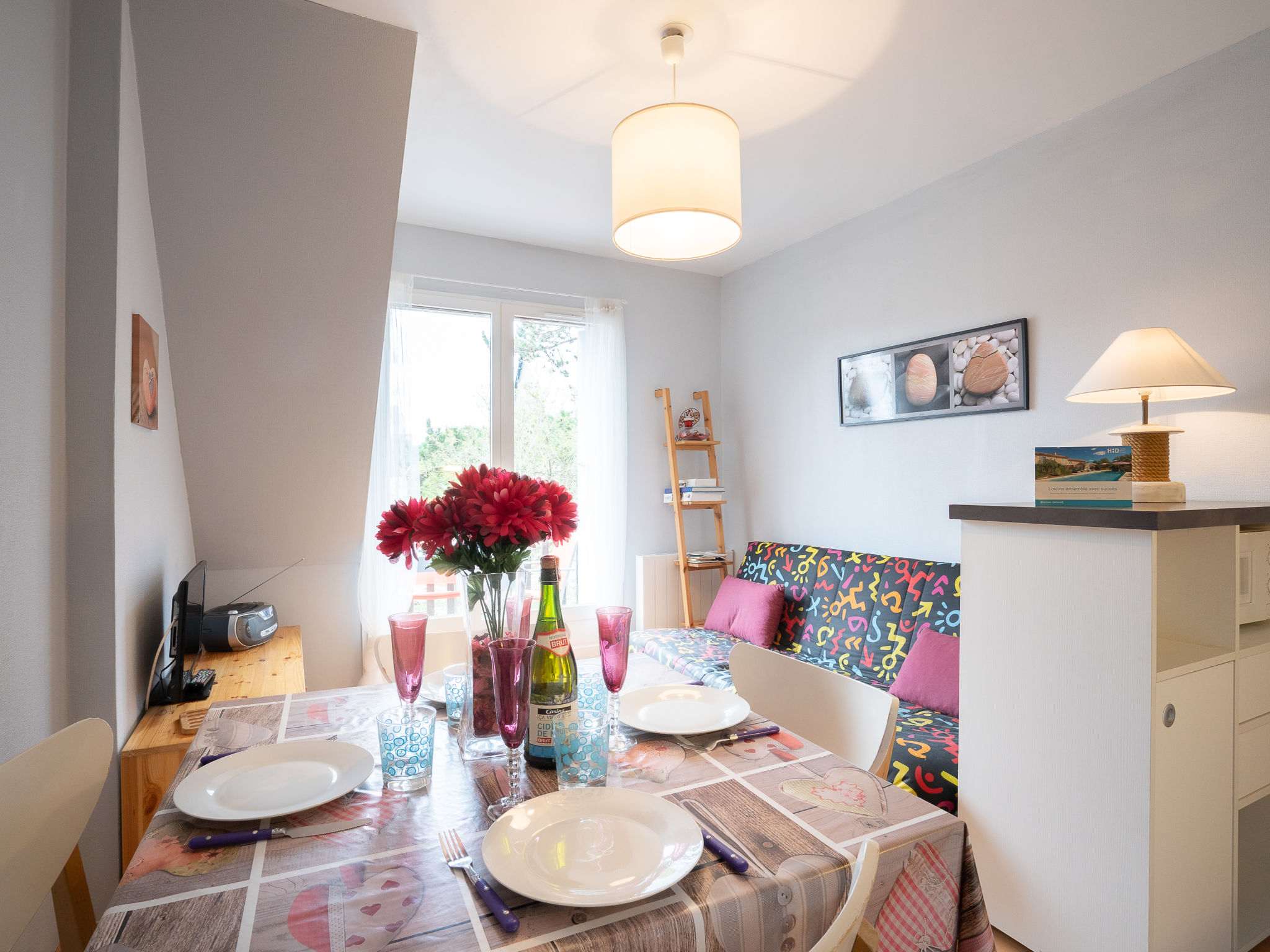 3-Zimmer-Wohnung 34 m2 im 1. Stock, Südwestlage. Teilweise abgeschrägt: Wohn-/Esszimmer mit TV (Flachbildschirm), CD. Ausgang zum Balkon. 1 Zimmer mit 1 Ausziehbett (2 x 90 cm, Länge 190 cm). 1 Zimmer mit 1 franz. Bett (140 cm, Länge 190 cm). Ausgang zum Balkon. Kochnische (Mini-Backofen, Geschirrspüler, 2 Glaskeramikherd Platten, Toaster, Mikrowelle, elektrische Kaffeemaschine). Bad, sep. WC. E-Heizung, Boiler. Parkettböden. 2 Balkone 5 m2. Balkonmöbel. Zur Verfügung: Bügeleisen. Internet (Wireless LAN, extra). Bitte beachten: Rauchmelder. Inserat einer Privatperson nach Artikel 155, IV, CGI.