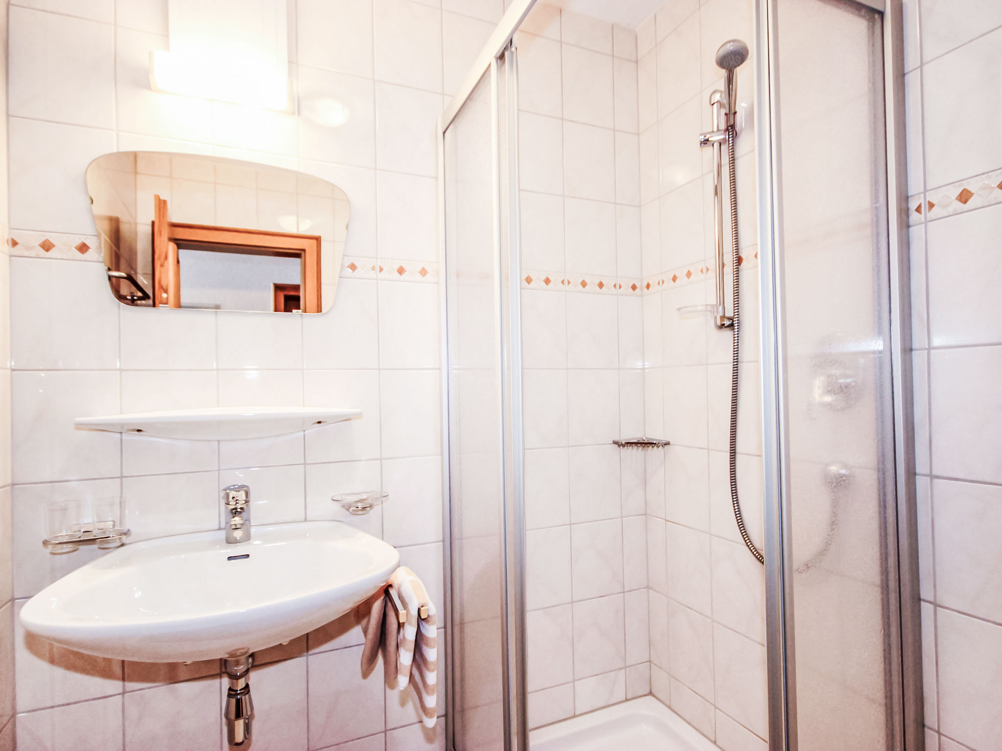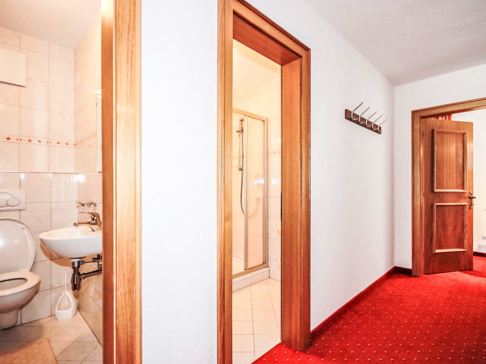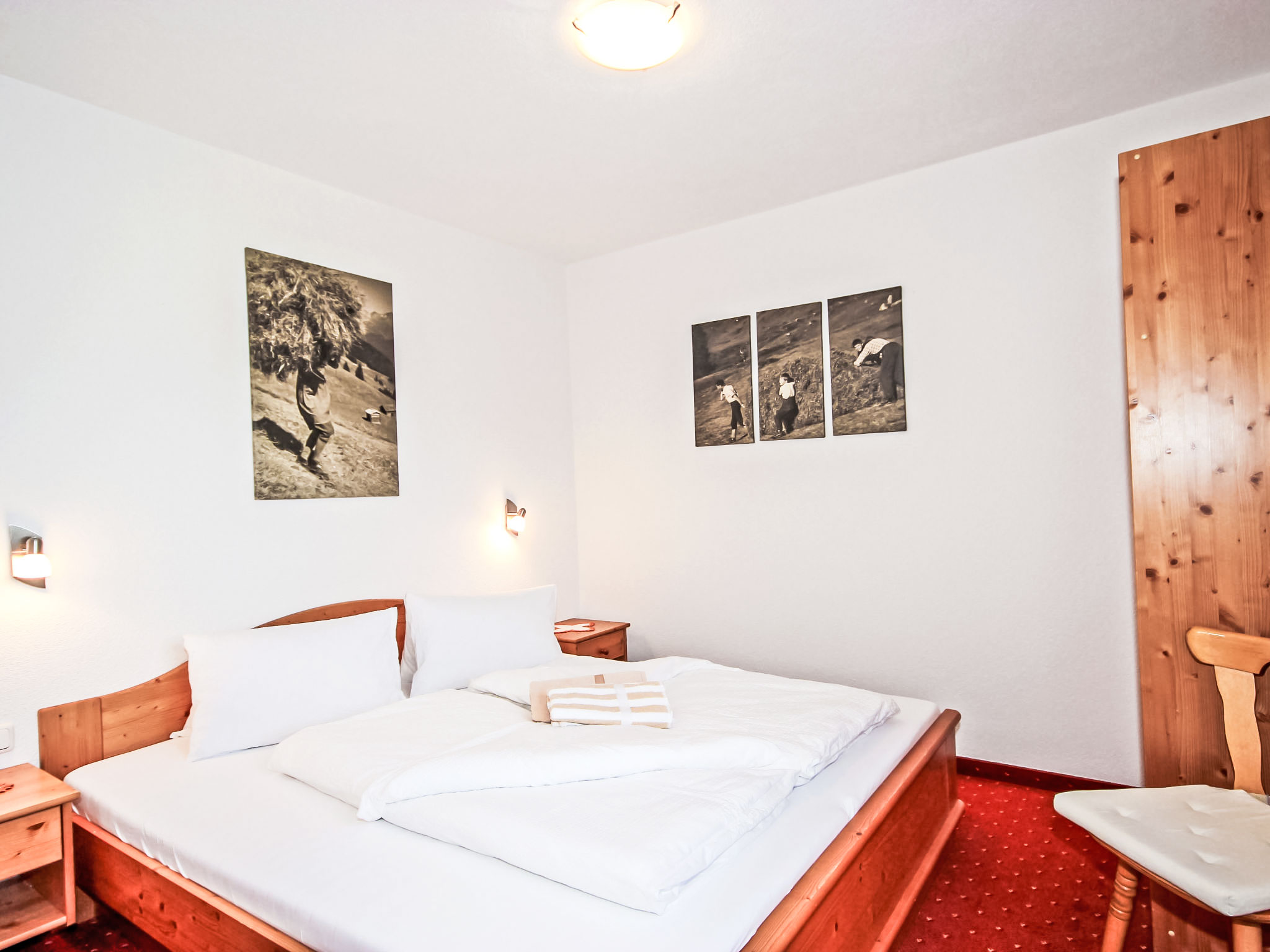 4-Zimmer-Wohnung 110 m2 im 1. Stock. Geräumig, komfortabel und gemütlich eingerichtet: 1 grosses Doppelzimmer mit Dusche/WC. 2 Doppelzimmer, jedes Zimmer mit Waschbecken. 1 kleines Zimmer mit 1 Bett und Dusche/WC. Wohn-/Esszimmer mit 1 Diwanbett, Essecke und Sat-TV (Flachbildschirm). Offene Küche (Backofen, Geschirrspüler, 4 Glaskeramikherd Platten, Mikrowelle, elektrische Kaffeemaschine). Ausgang zum Balkon. Dusche, sep. WC. Grosser Balkon, Südlage. Balkonmöbel. Herrliche Sicht auf die Berge und das Tal. Zur Verfügung: Internet (Wireless LAN, gratis). Bitte beachten: Nichtraucher-Unterkunft.