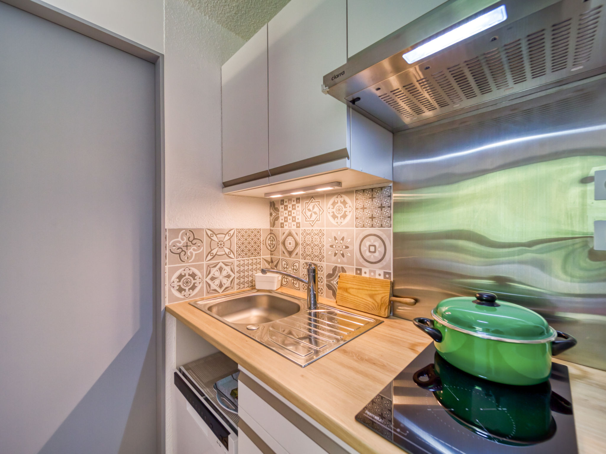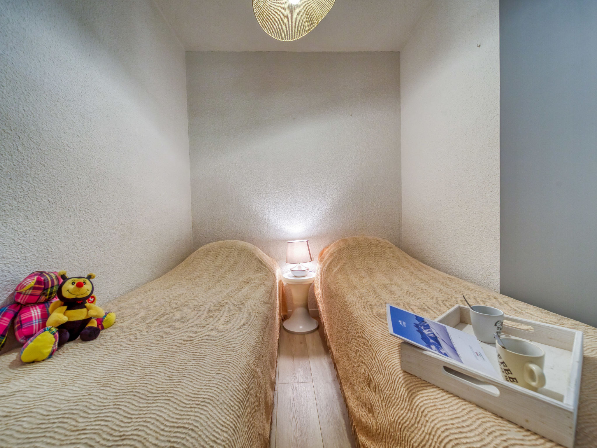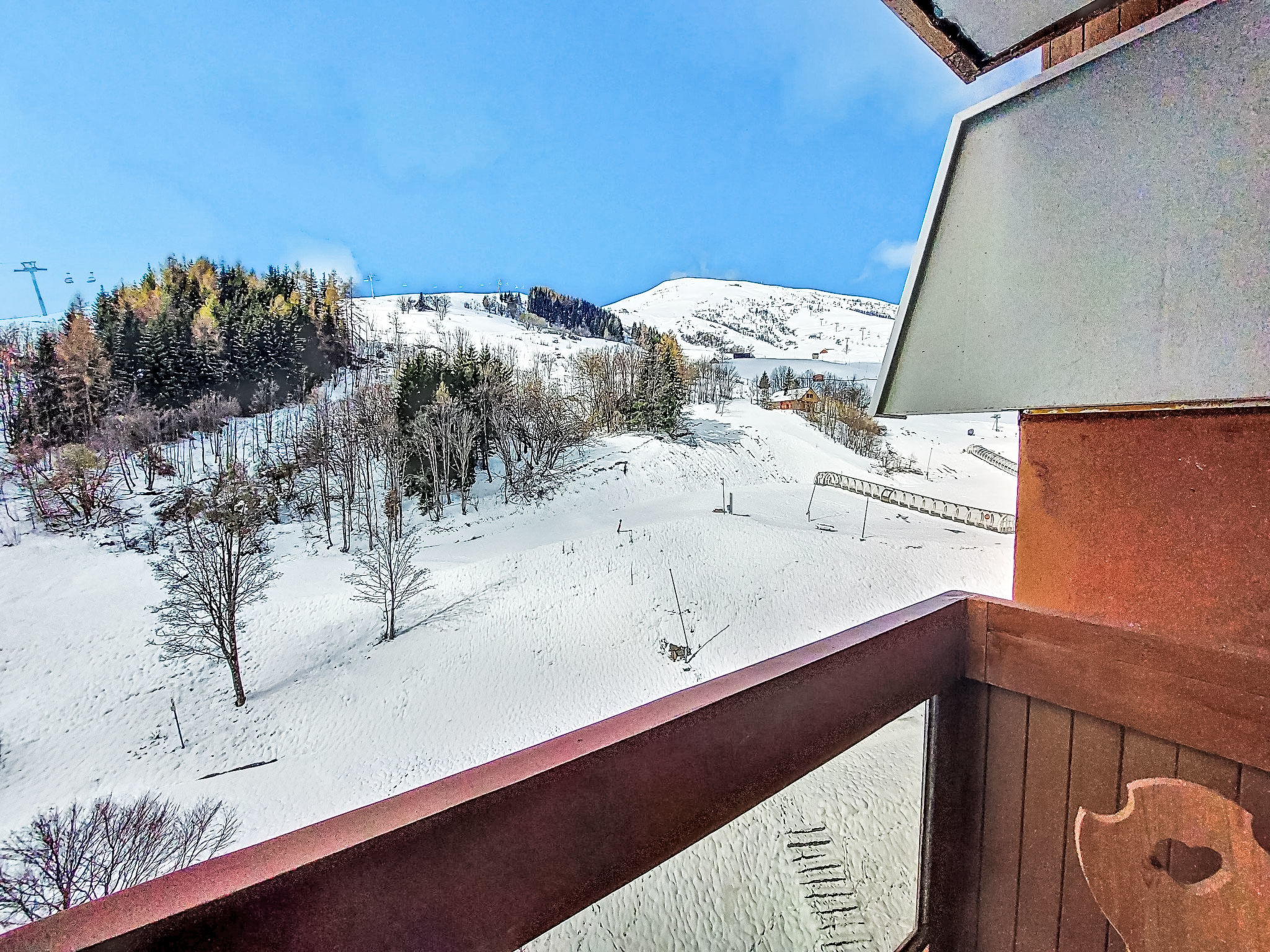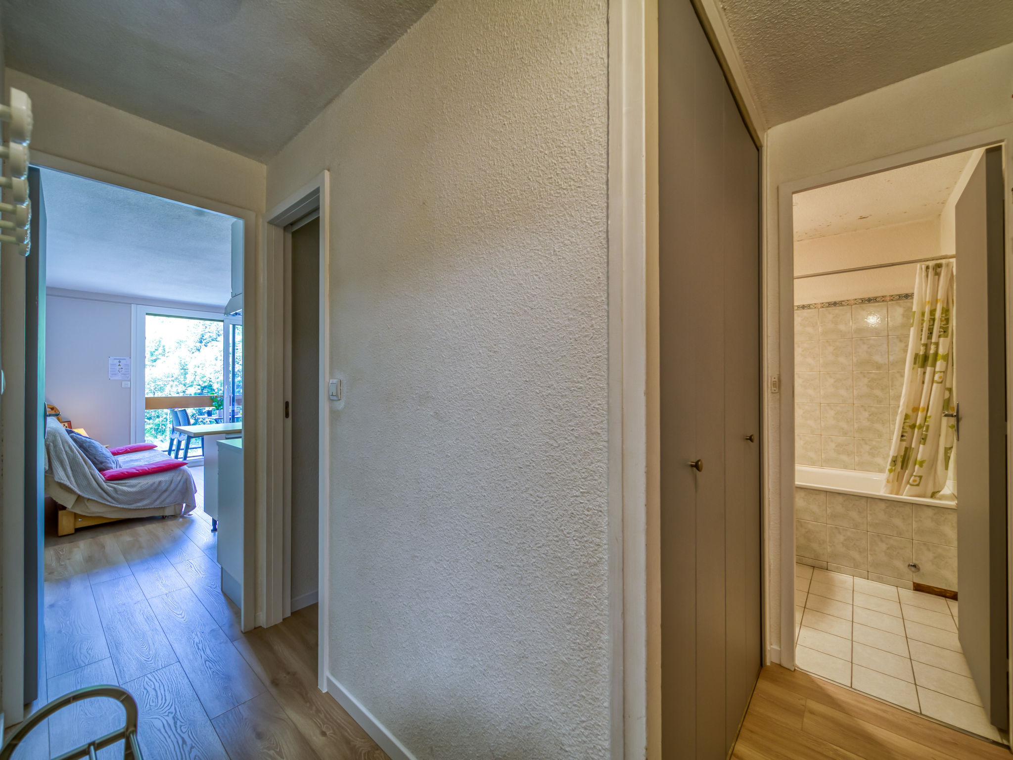 1-Zimmer-Studio 32 m2 im 9. Stock, Südlage. Einfach und schön eingerichtet: Wohn-/Esszimmer mit 1 Doppeldiwanbett (130 cm, Länge 190 cm), TV (Flachbildschirm). Ausgang zum Balkon. Schlafnische mit Vorhang mit 1 x 2 Etagenbetten (90 cm, Länge 190 cm). Kleine Kochnische (2 Kochplatten, Backofen, Toaster, Wasserkocher, elektrische Kaffeemaschine, Kombinationsmikrowelle). Bad, sep. WC. E-Heizung. Parkettböden. Balkon 5 m2. Sicht auf die Skipiste. Zur Verfügung: Bügeleisen, Haartrockner. Internet (Wireless LAN, extra). Bitte beachten: Nichtraucher-Unterkunft. 1 kleines Haustier/Hund erlaubt. Rauchmelder. Inserat einer Privatperson nach Artikel 155, IV, CGI.