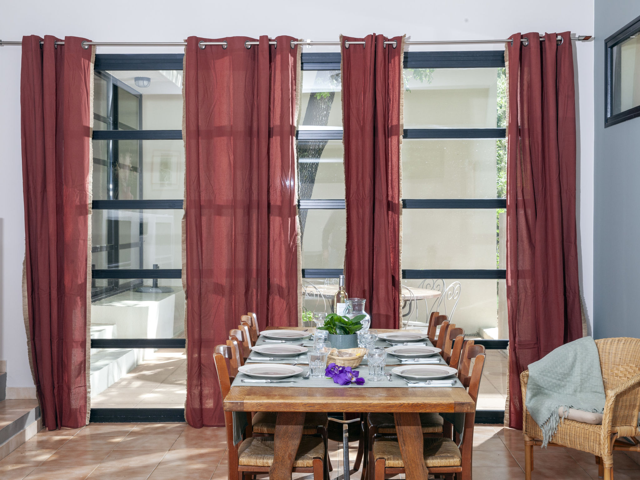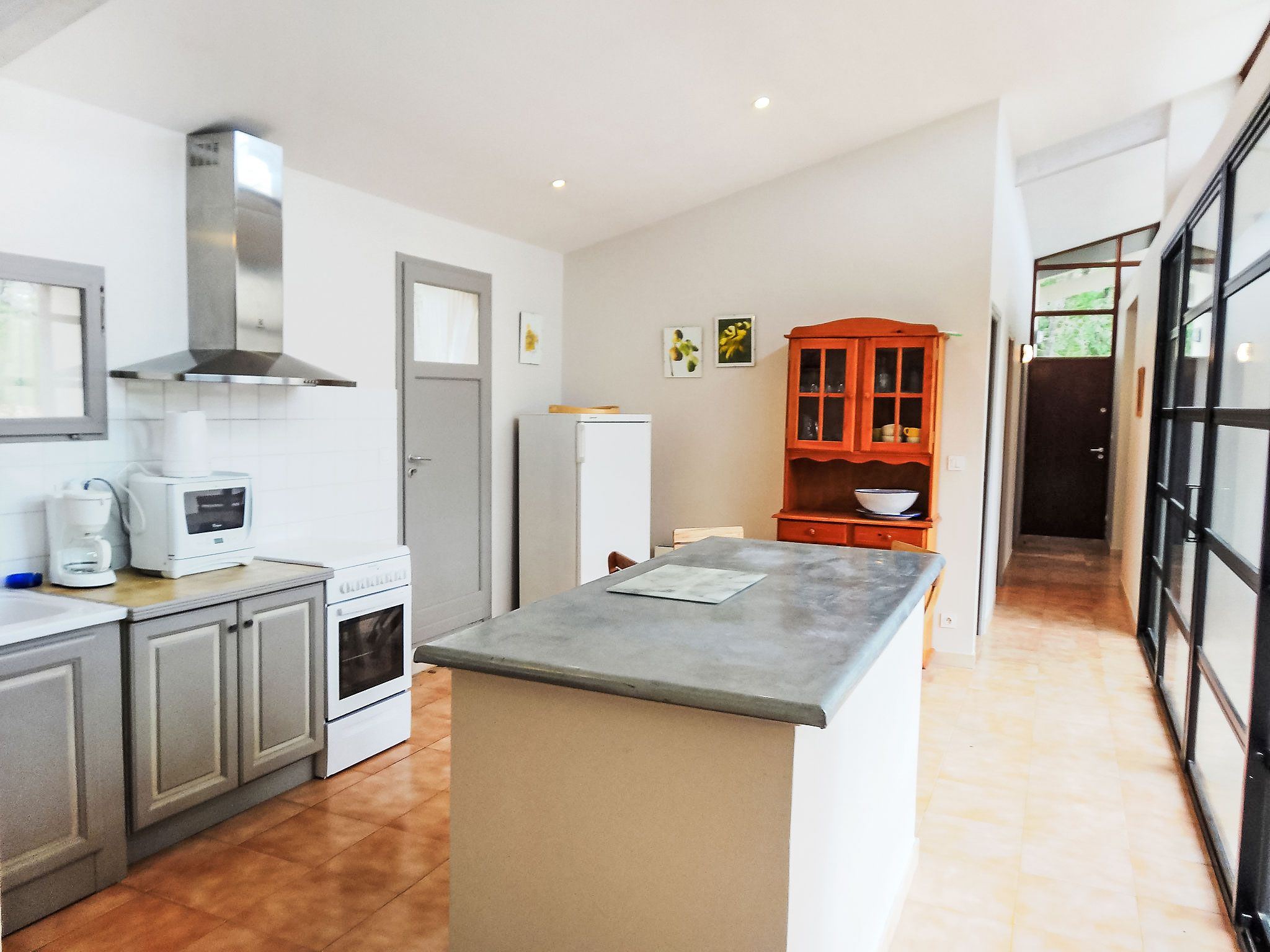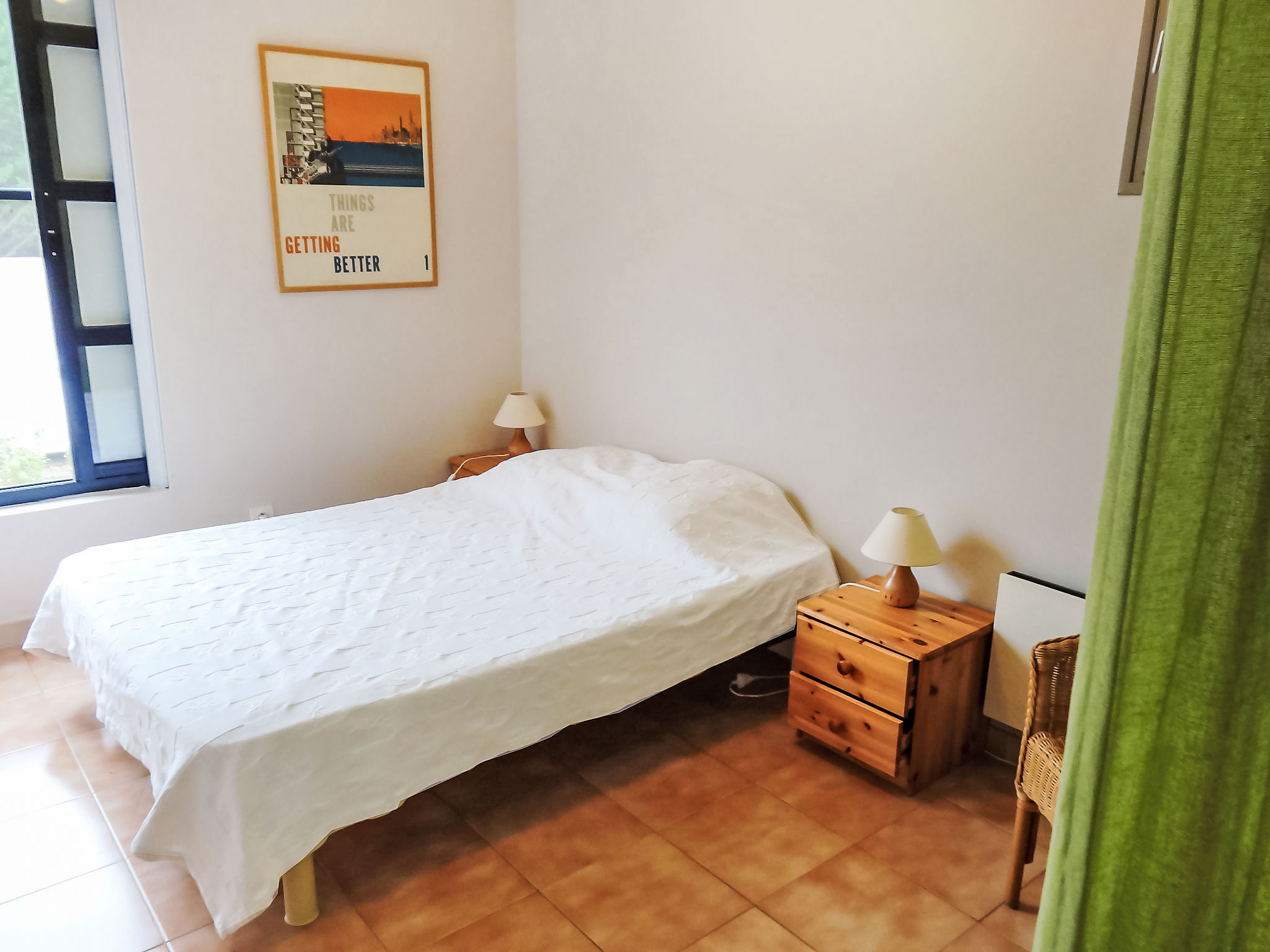 4-Zimmer-Haus 110 m2. Wohn-/Esszimmer mit offenem Kamin, TV und DVD. Ausgang zur Terrasse. 1 Zimmer mit 1 franz. Bett und Dusche. 1 Zimmer mit 1 Ausziehbett (2 Pers.). 1 Zimmer mit 1 franz. Bett. Offene Küche (4 Kochplatten, Backofen, Geschirrspüler, Mikrowelle, Tiefkühler, elektrische Kaffeemaschine) mit Bar. Bad, sep. WC. Terrasse 20 m2. Terrassenmöbel, Gartengrill, Liegestühle. Zur Verfügung: Waschmaschine, Bügeleisen, Fliegengitter. Internet (Wireless LAN, gratis). Bitte beachten: 1 Haustier/Hund erlaubt. Rauchmelder. Salon/Esszimmer sind über 3 Stufen erreichbar. Inserat einer Privatperson nach Artikel 155, IV, CGI.
