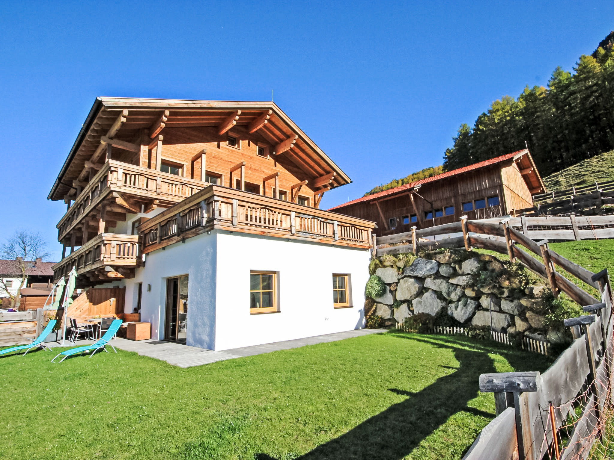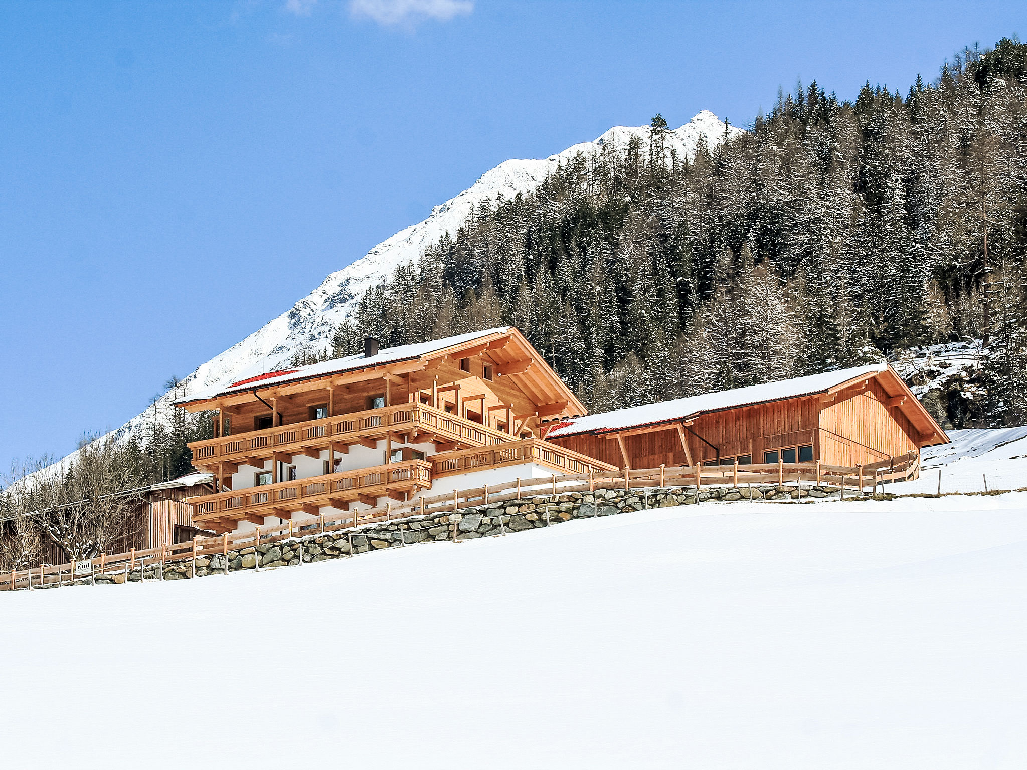 Rustikales, komfortables Landhaus "s´ HimmelReich", 1'457 m.ü.M.. Im Weiler Burgstein, ruhige, sonnige Lage am Hang, 50 m vom Waldrand, im Grünen. Zur Alleinbenutzung: Terrassengarten (eingezäunt), Liegewiese. Im Hause: Wireless LAN, Skiraum, Skischuhtrockner. Brötchenservice. Zufahrt (Bergstrasse). Im Winter bitte Schneeketten mitbringen. Parkplatz beim Haus. Lebensmittelgeschäft 2.5 km, Restaurant 200 m, Bushaltestelle 1.4 km, Freibad 5 km, Thermalbad "Aqua Dome" 4.6 km. Tennis 5 km, Reitstall 5 km, Wanderwege ab Haus 10 m, Gondelbahn 15 km, Skibushaltestelle 80 m, Skischule 4 km, Langlaufloipe 4 km. Nahe gelegene Sehenswürdigkeiten: Outdoor Park 'Area 47' in 29 km, Ötzidorf 7 km, Ötztaler Heimatmuseum 3 km, Hängebrücke, Klettersteig. Bitte beachten: Gratis Skibus. Der gratis Skibus fährt zum Skigebiet Shuttlestation Längenfeld. Bitte beachten: Tiere in der Umgebung. In diesem Haus sind weitere Ferienwohnungen mietbar.