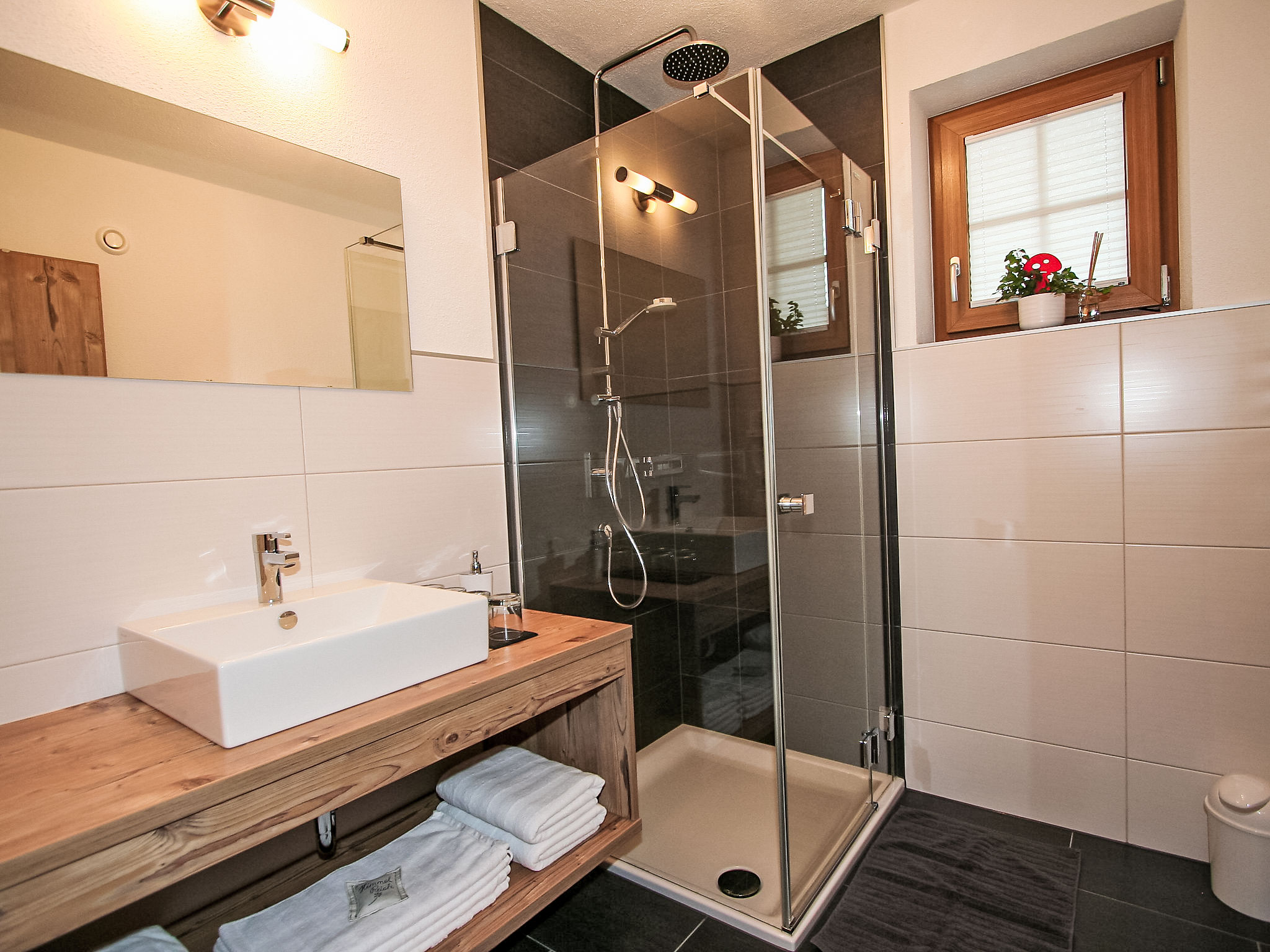 3-Zimmer-Wohnung 60 m2, im Erdgeschoss. Geschmackvoll und mit viel Holz eingerichtet: 2 Doppelzimmer. Wohn-/Esszimmer mit 1 Ausziehbett (2 Pers.), Sat-TV (Flachbildschirm). Ausgang zur Terrasse. Offene Küche (Geschirrspüler, 4 Glaskeramikherd Platten, elektrische Kaffeemaschine, Kombinationsmikrowelle). Dusche, sep. WC. Fussbodenheizung. Terrasse, Garten 75 m2. Terrassenmöbel. Herrliche Panoramasicht auf die Berge und die Landschaft. Zur Verfügung: Haartrockner. Internet (Wireless LAN, gratis). Bitte beachten: Nichtraucher-Unterkunft. 2 Haustiere/Hunde erlaubt.