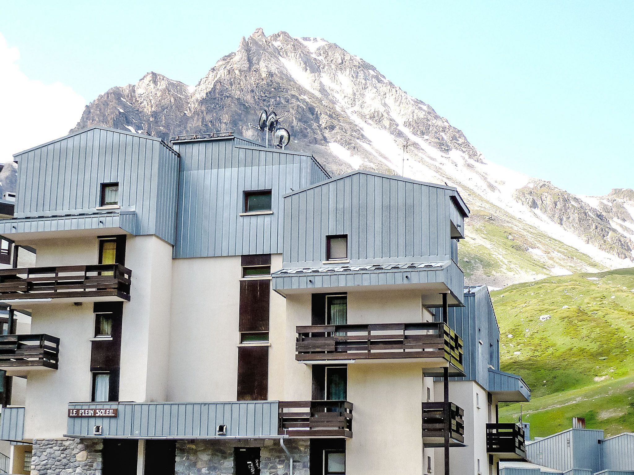 Val Claret: Appartementhaus "Plein Soleil", auf 5 Stockwerken. In der Anlage: Fahrstuhl, Skiraum, Zentralheizung. Supermarkt, Restaurant 50 m, Hallenbad 2.2 km. Sportzentrum 2 km, Skisportanlagen 50 m, Kinderskischule 200 m. Bekannte Skigebiete sind gut erreichbar: TIGNES VAL D'ISERE 50 m. Bitte beachten: Gratis Skibus. In diesem Haus sind weitere Ferienwohnungen mietbar.
