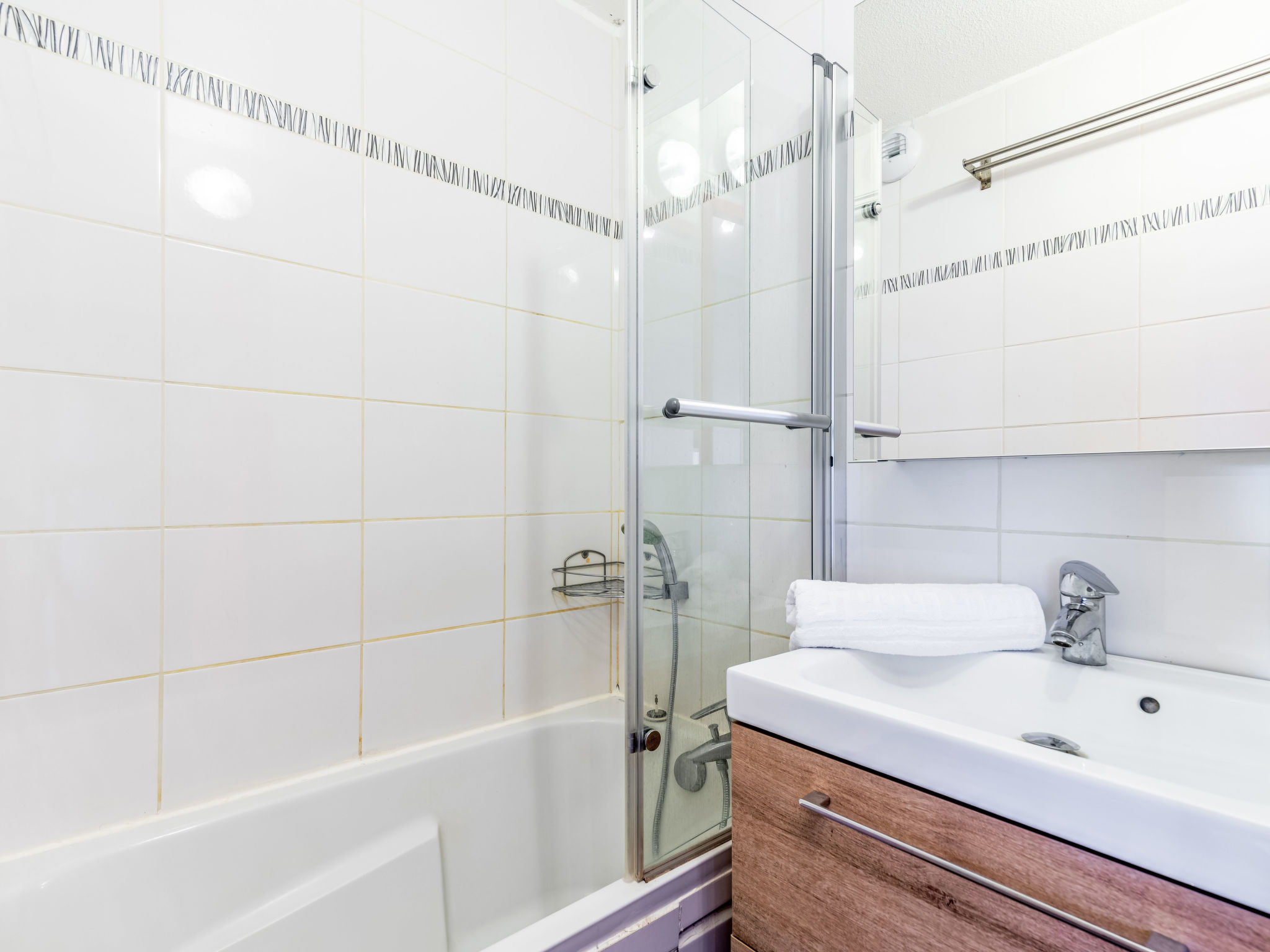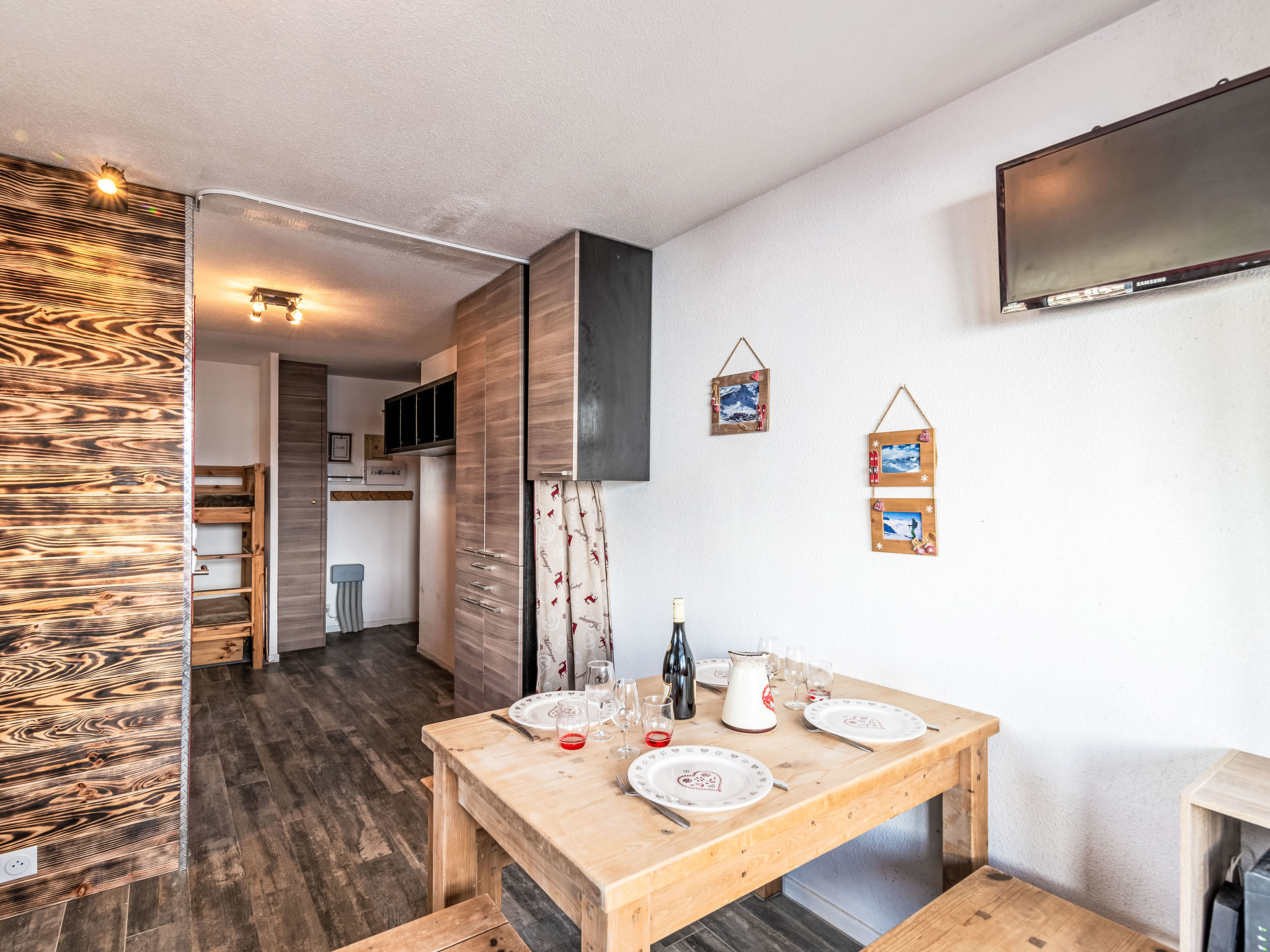 1-Zimmer-Studio 21 m2 im 1. Stock. Vollständig renoviert: Wohn-/Esszimmer mit 1 Ausziehbett (2 Pers. 2 x 80 cm), TV. Eingang mit 1 x 2 Etagenbetten (80 cm). Kochnische (4 Kochplatten, Geschirrspüler, Mikrowelle). Bad, sep. WC. Balkon 5 m2, Westlage. Terrassenmöbel. Panoramasicht auf die Berge und die Skipiste. Zur Verfügung: Internet (Wireless LAN, gratis). Blu-Ray Player. Parkplatz (überdacht), Höhe 190 cm. Bitte beachten: Nichtraucher-Unterkunft. Rauchmelder. Inserat einer Privatperson nach Artikel 155, IV, CGI.
