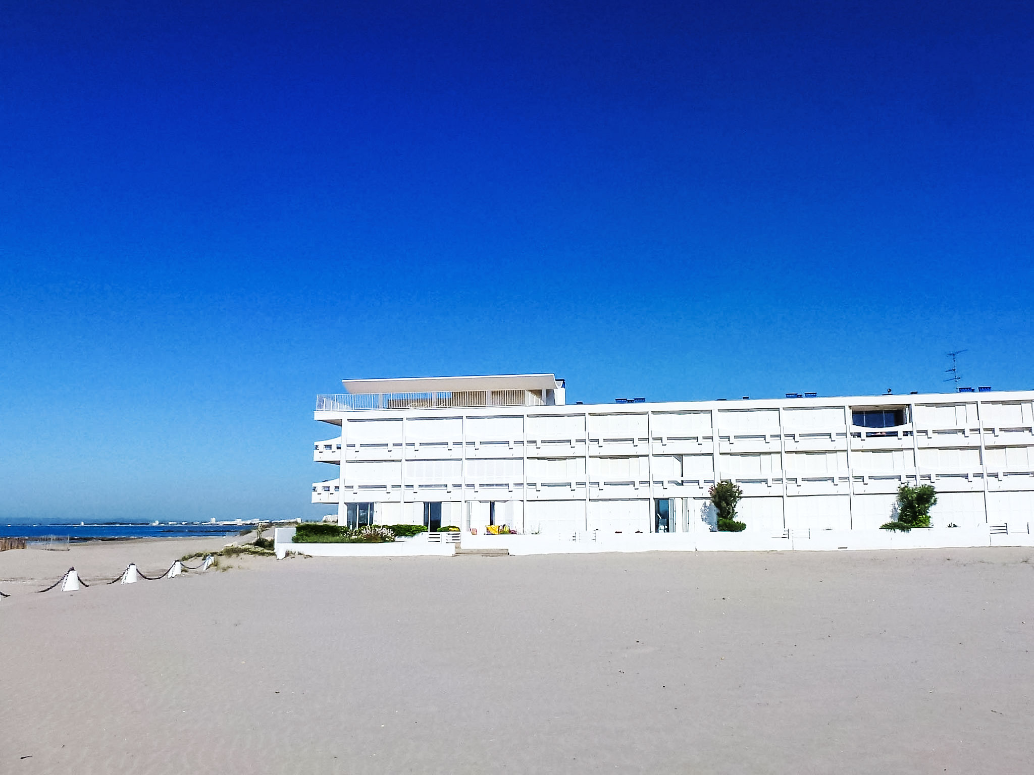 Residenz "La Résidence de la Mer". Im Ortsteil le Boucanet, am Ortsrand, 2 km vom Zentrum von le Grau du Roi, 5 m vom Meer, 10 m vom Strand. Zur Mitbenutzung: Schwimmbad (saisonale Verfügbarkeit: 01.Jul.-31.Aug.). Parkplatz (beschränkte Anzahl). Einkaufsgeschäft, Lebensmittelgeschäft 50 m, Supermarkt 1.5 km, Einkaufszentrum 1 km, Restaurant 50 m, Zentrum zu Fuss in 25 Minuten erreichbar, Bahnstation 3.5 km, Sandstrand "Booucanet" 10 m, Freibad 4.5 km, Thermalbad "Thalazur" 10 km. Reitstall 300 m. Nahe gelegene Sehenswürdigkeiten: Les Arènes du Grau du Roi 4.8 km, Seaquarium 5.6 km, Casino Flamingo 5.8 km, Aigues-Mortes 10 km, La Grande Motte 15 km, Nîmes 54 km. Wandergebiete: La réserve naturelle de Camargue. Bitte beachten: Fahrzeug empfohlen. Die Schlüsselübergabe findet bei der Agentur Interhome in Port Camargue statt, 7 km. Flugplatz 24 km vom Haus.