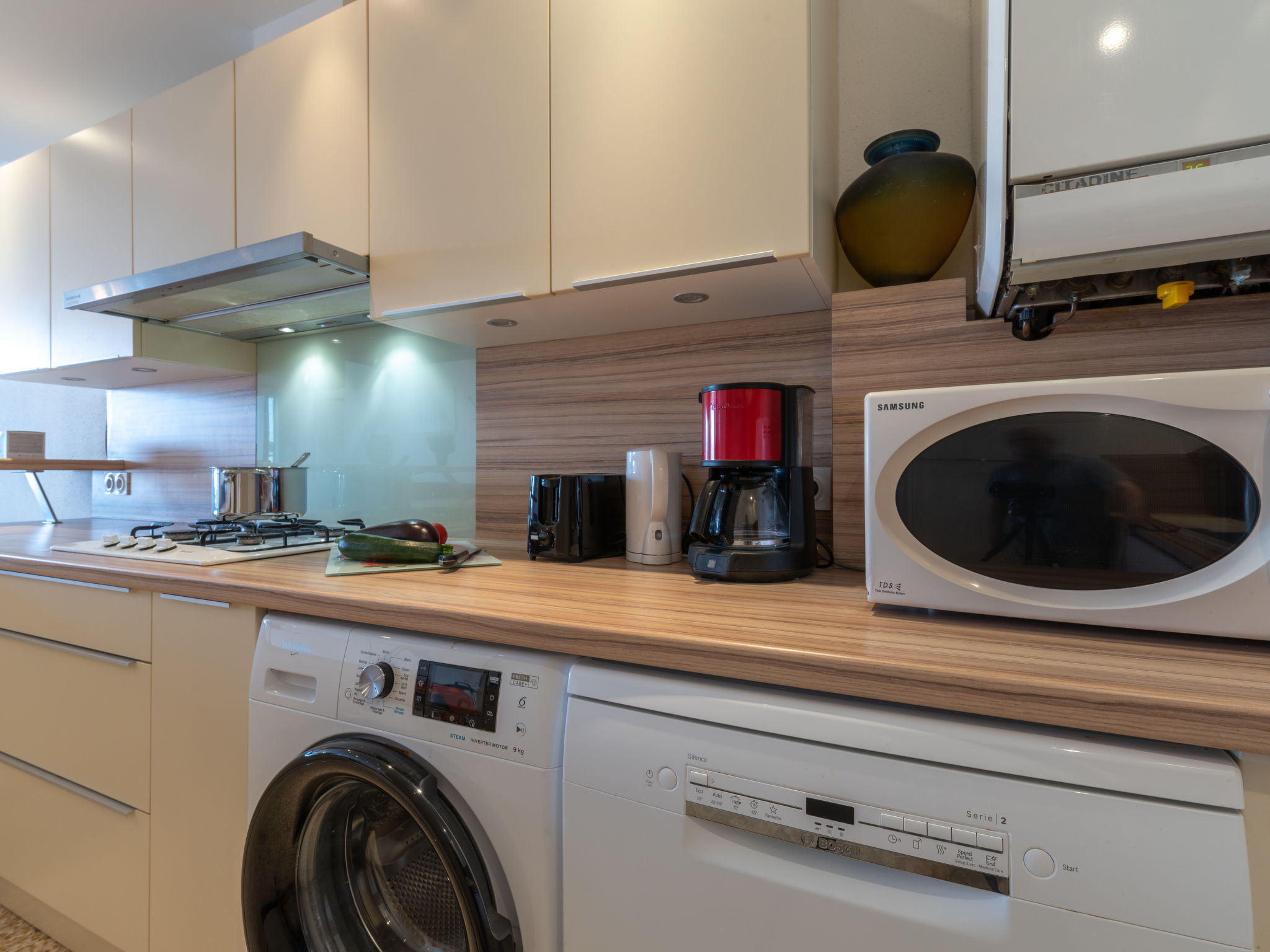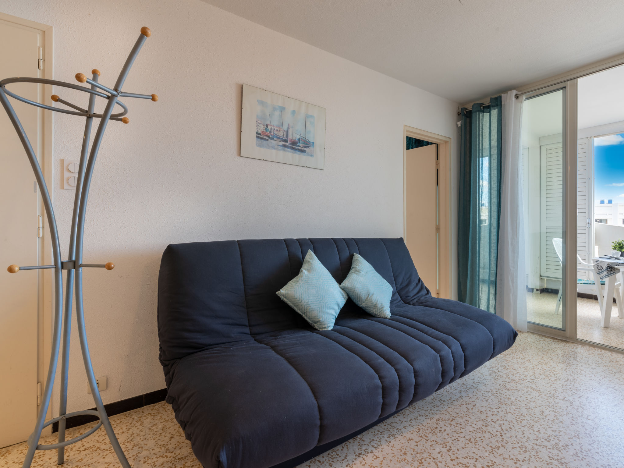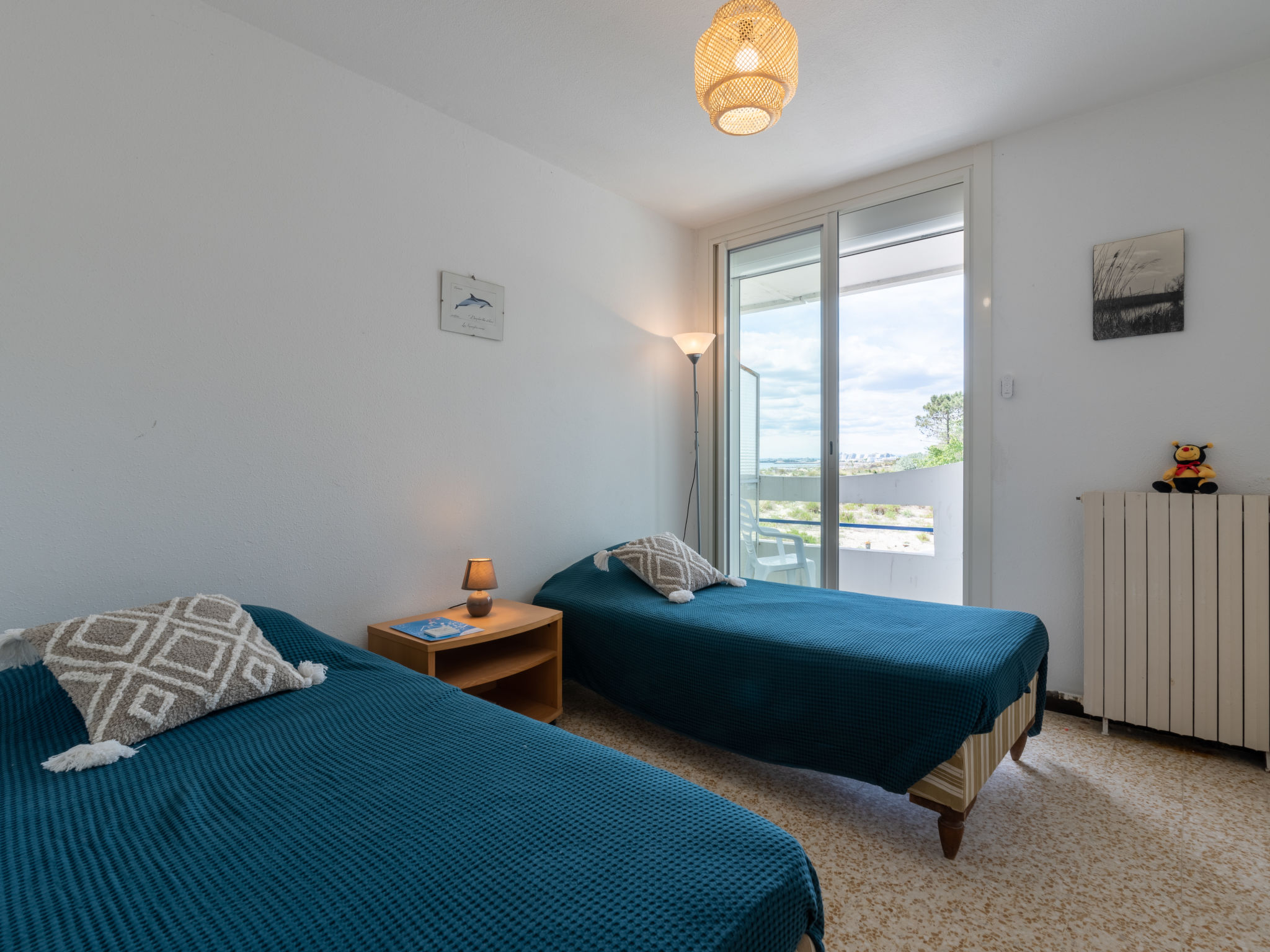 3-Zimmer-Wohnung 60 m2 im 1. Stock. Wohn-/Esszimmer mit 1 Doppeldiwanbett (130 cm, Länge 185 cm), TV. 1 Zimmer mit 1 franz. Bett (160 cm, Länge 200 cm). Ausgang zur Terrasse. 1 Zimmer mit 2 Betten (90 cm, Länge 180 cm). Offene Küche (4 Kochplatten, Geschirrspüler, Mikrowelle). Dusche, sep. WC. Terrasse 35 m2, überdacht, Südostlage. Terrassenmöbel. Seitliche Sicht auf das Meer. Zur Verfügung: Internet (Wireless LAN, extra). Bitte beachten: Rauchmelder. Inserat einer Privatperson nach Artikel 155, IV, CGI.