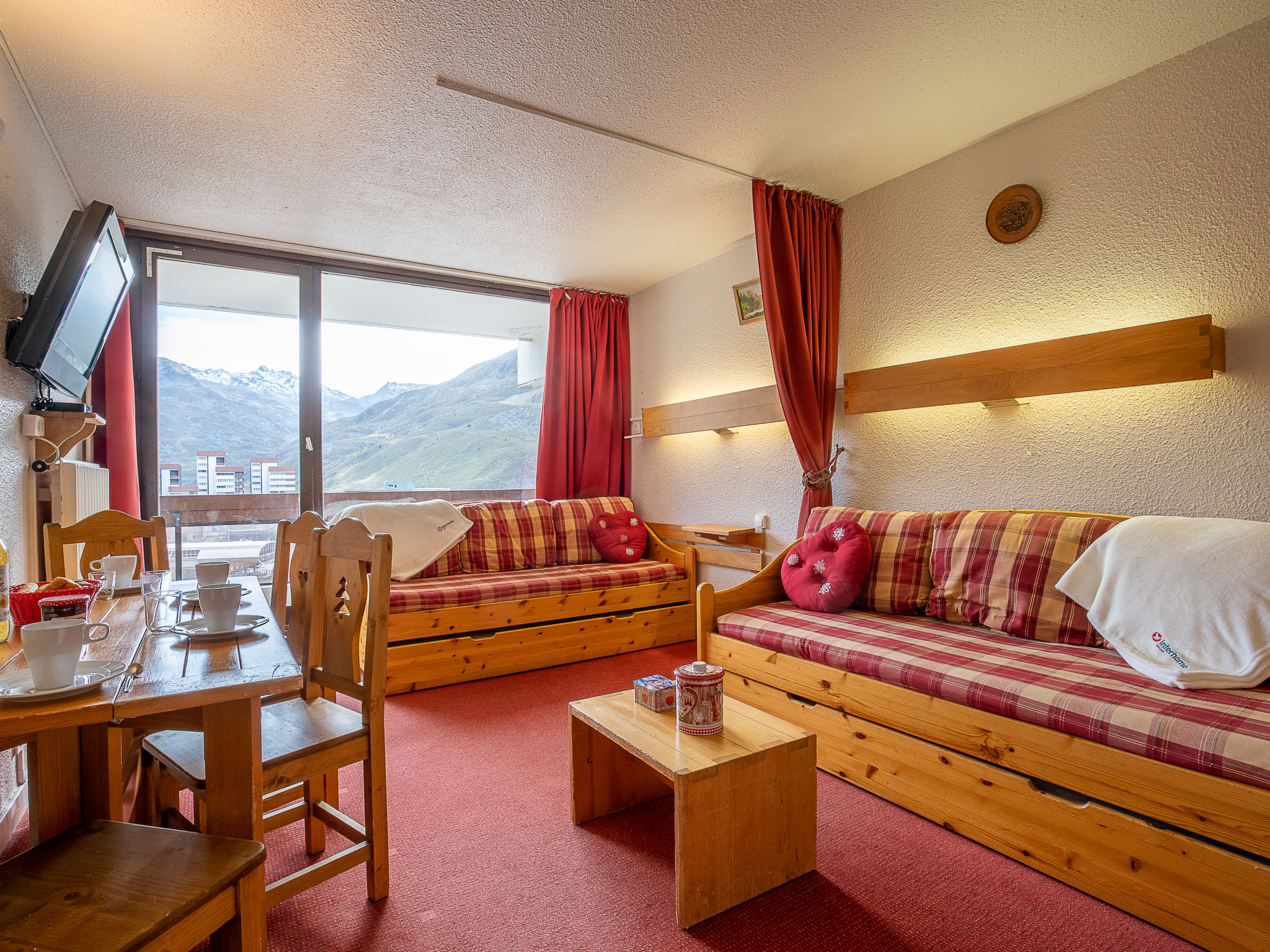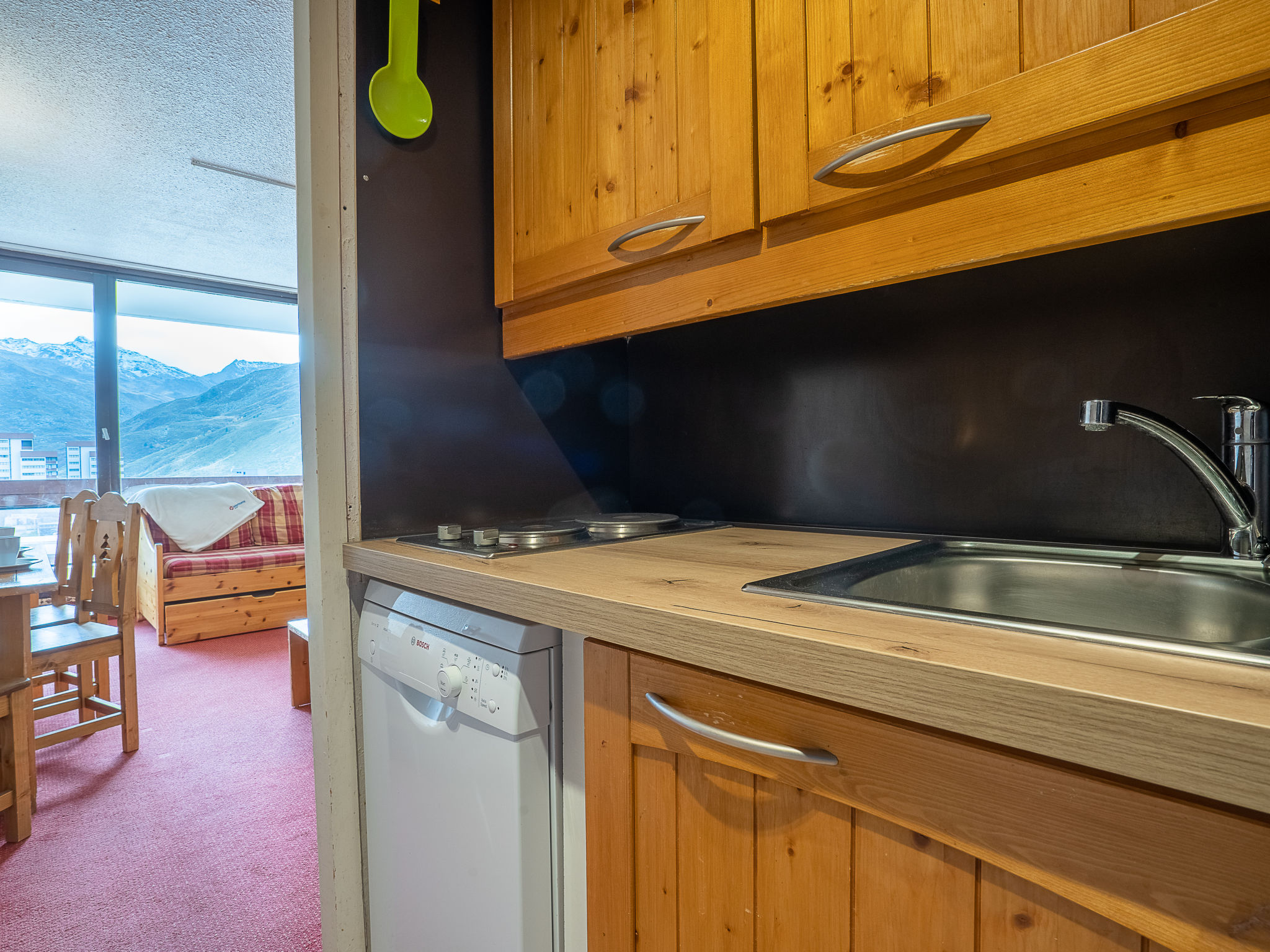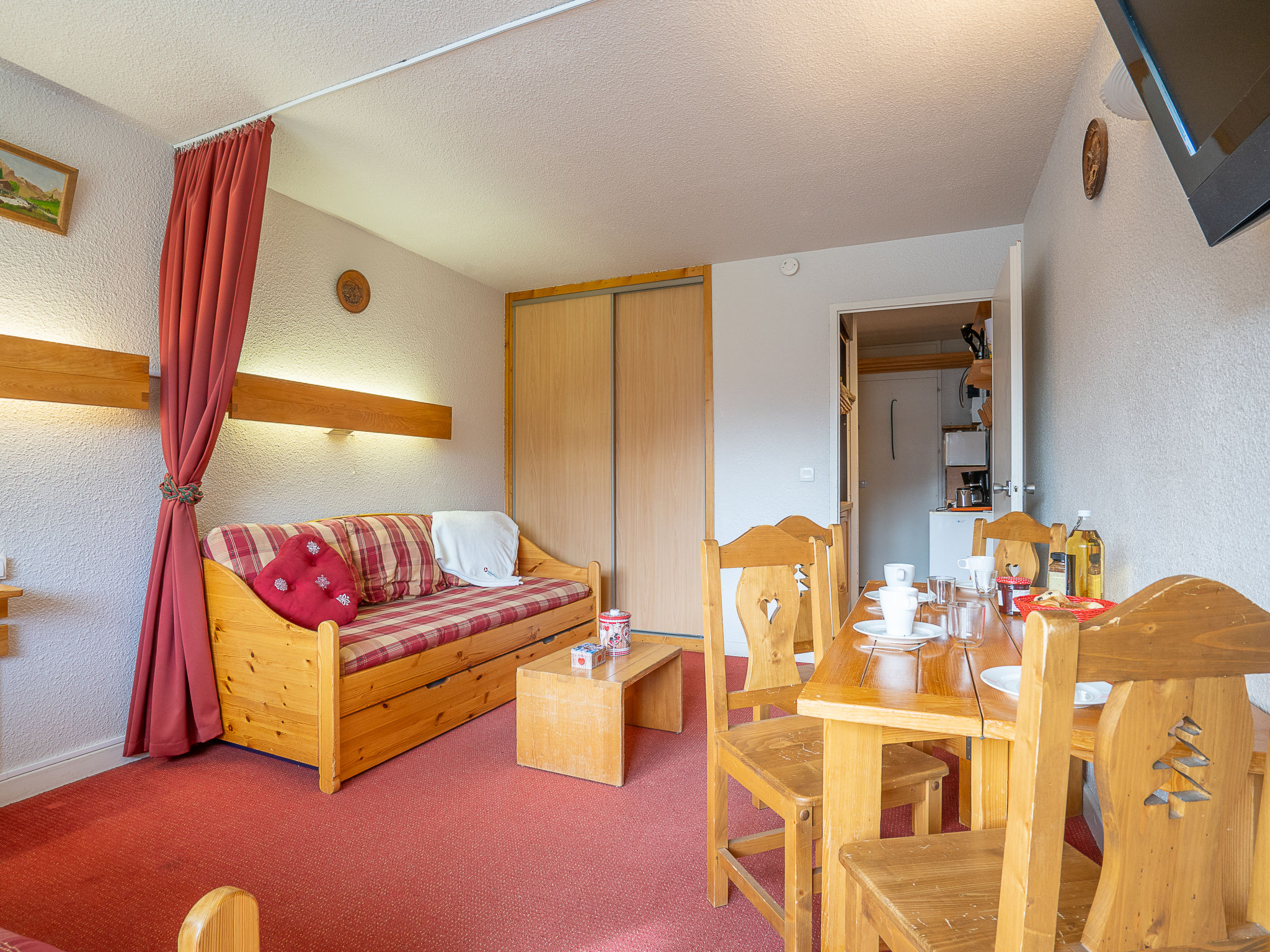 "Chavière 617", 1-Zimmer-Studio 24 m2 im 6. Stock, Südlage. Hell, zweckmässig und schön eingerichtet: Wohn-/Esszimmer mit 2 Ausziehbetten (4 x 80 cm, Länge 190 cm), Flachbildschirm. Ausgang zum Balkon. Kochnische im Eingang (2 Kochplatten, Mini-Backofen, Geschirrspüler, Wasserkocher, Mikrowelle, elektrische Kaffeemaschine). Bad, sep. WC. Balkon, Südlage. Sehr schöne Sicht auf die Berge und die Skipiste. Zur Verfügung: Internet (Wireless LAN, extra). Bitte beachten: Rauchmelder. Inserat einer Privatperson nach Artikel 155, IV, CGI.